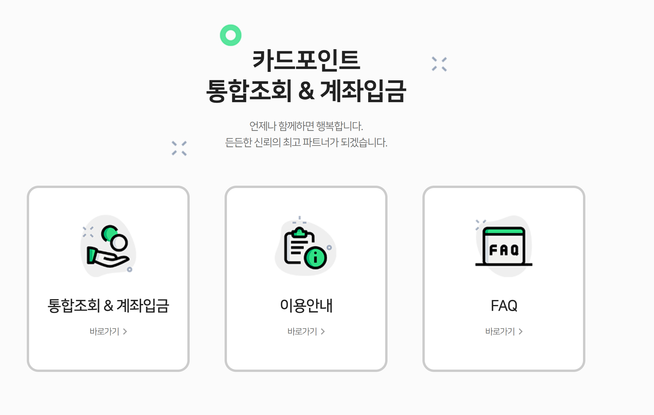 카드포인트통합조회 & 계좌입금 언제나 함께하면 행복합니다. 든든한 신뢰의 최고 파트너가 되겠습니다.