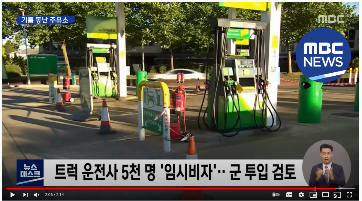 "주유소 3곳 갔는데 허탕"‥영국 주유소 절반이 '텅' (2021.09.27/뉴스데스크/MBC)