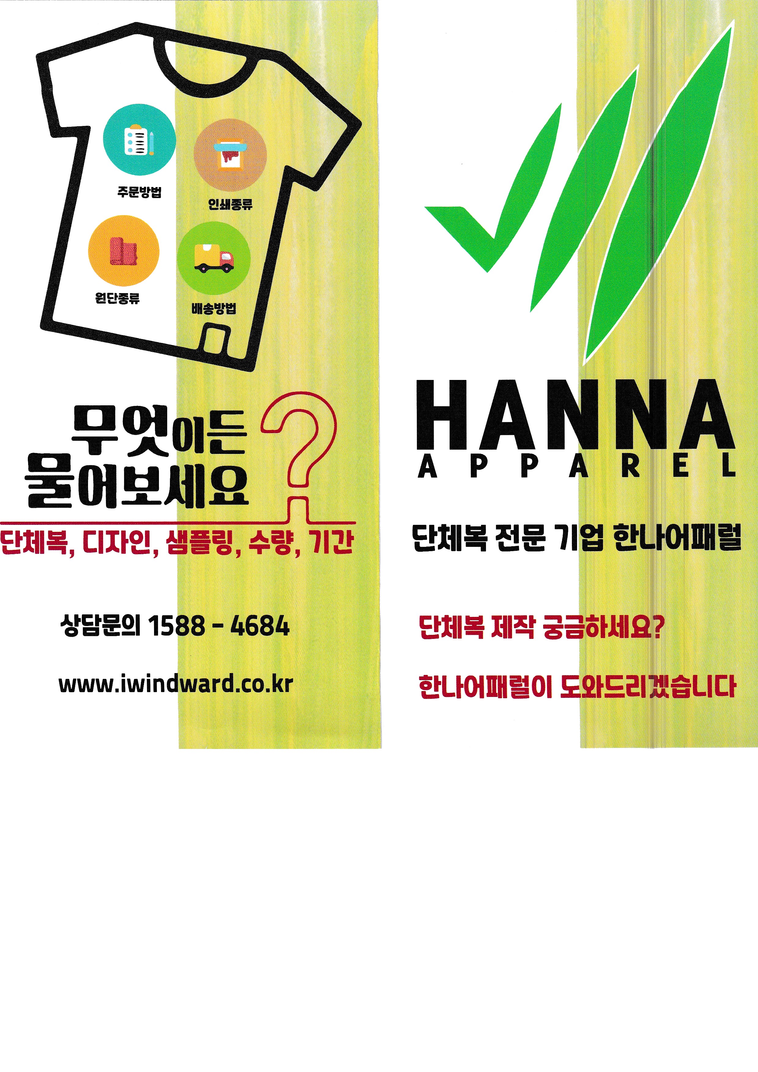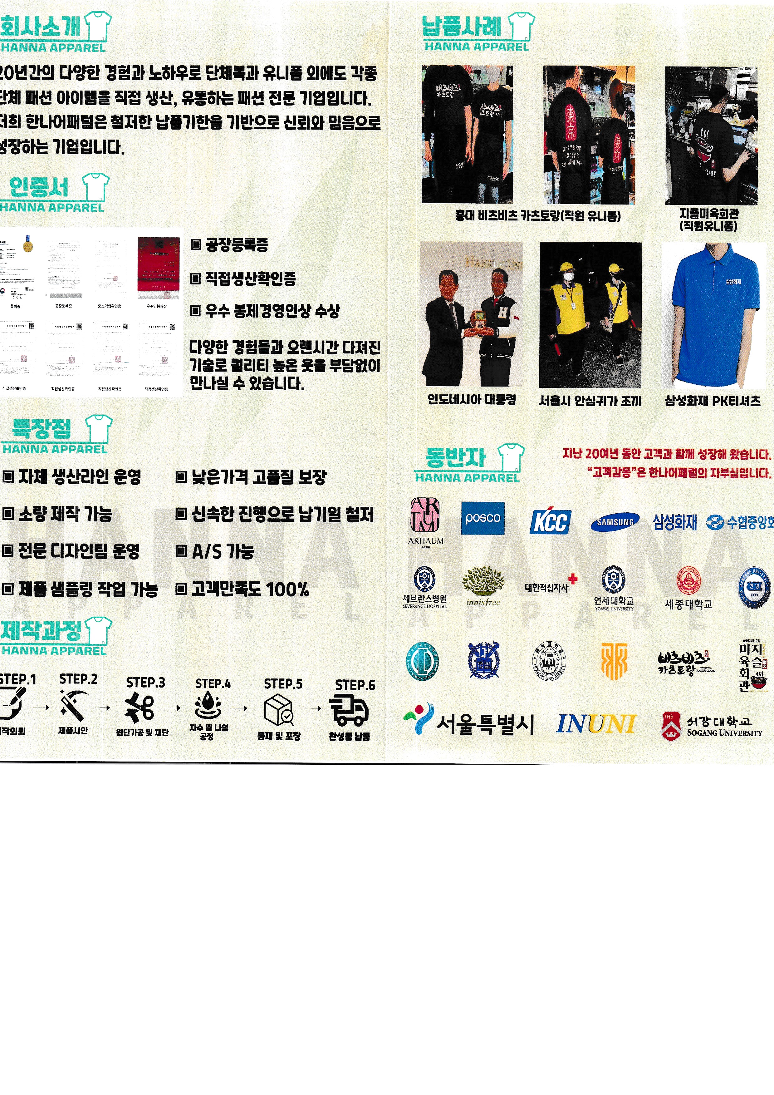 한나 어패럴, 단체티, 단체복 제작업체. 미팅했었음.