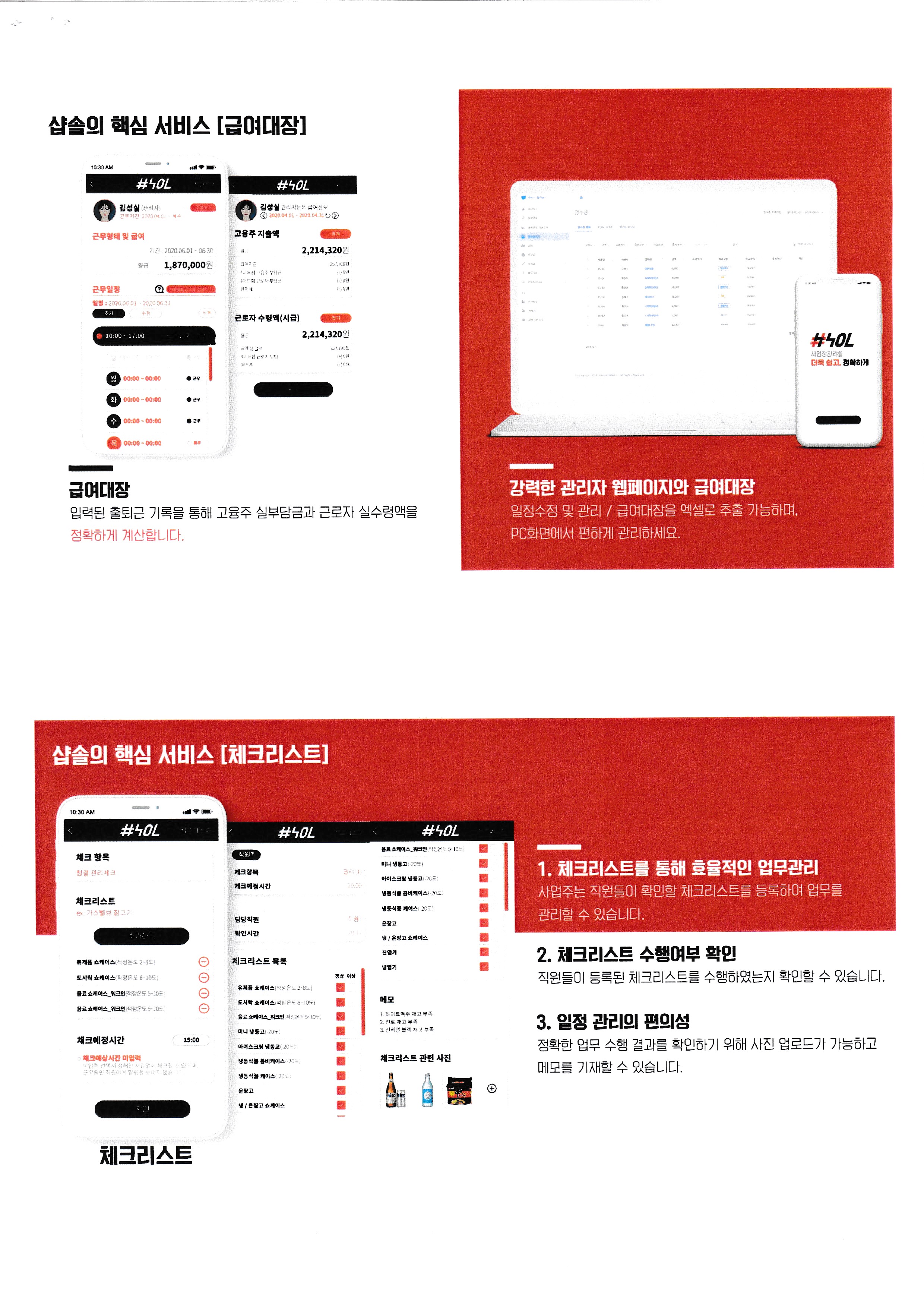 직원관리, 출퇴근관리, 자동급여계산, 업무관리 솔루션.