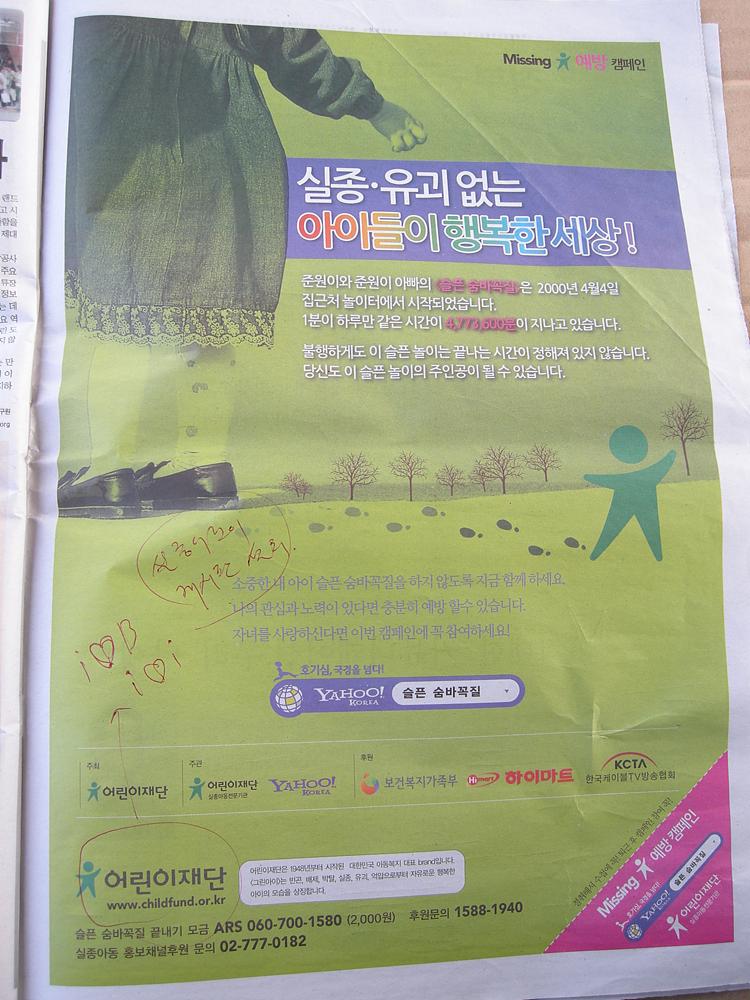 치안이 훌륭한 한국에서도 실종,유괴가 아직도 많다고 한다. 정말 안타까운 현실이다.