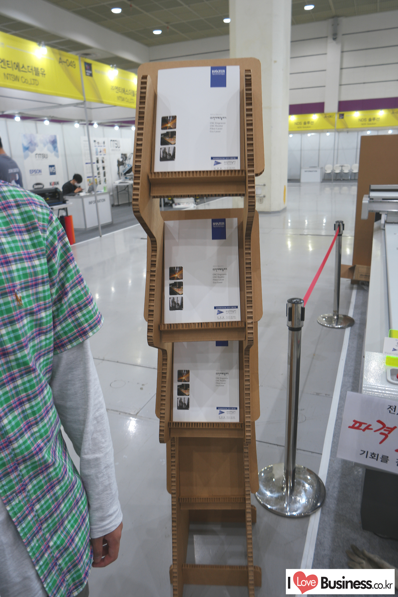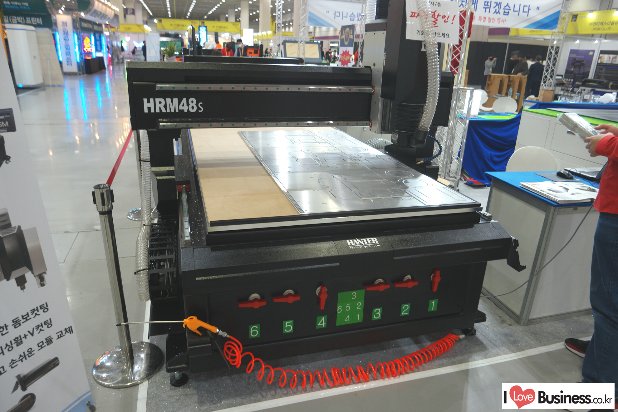 합판을 물결무늬로 라우팅하는 전시물...공예품을 만드는데도 무리가 없는 성능.