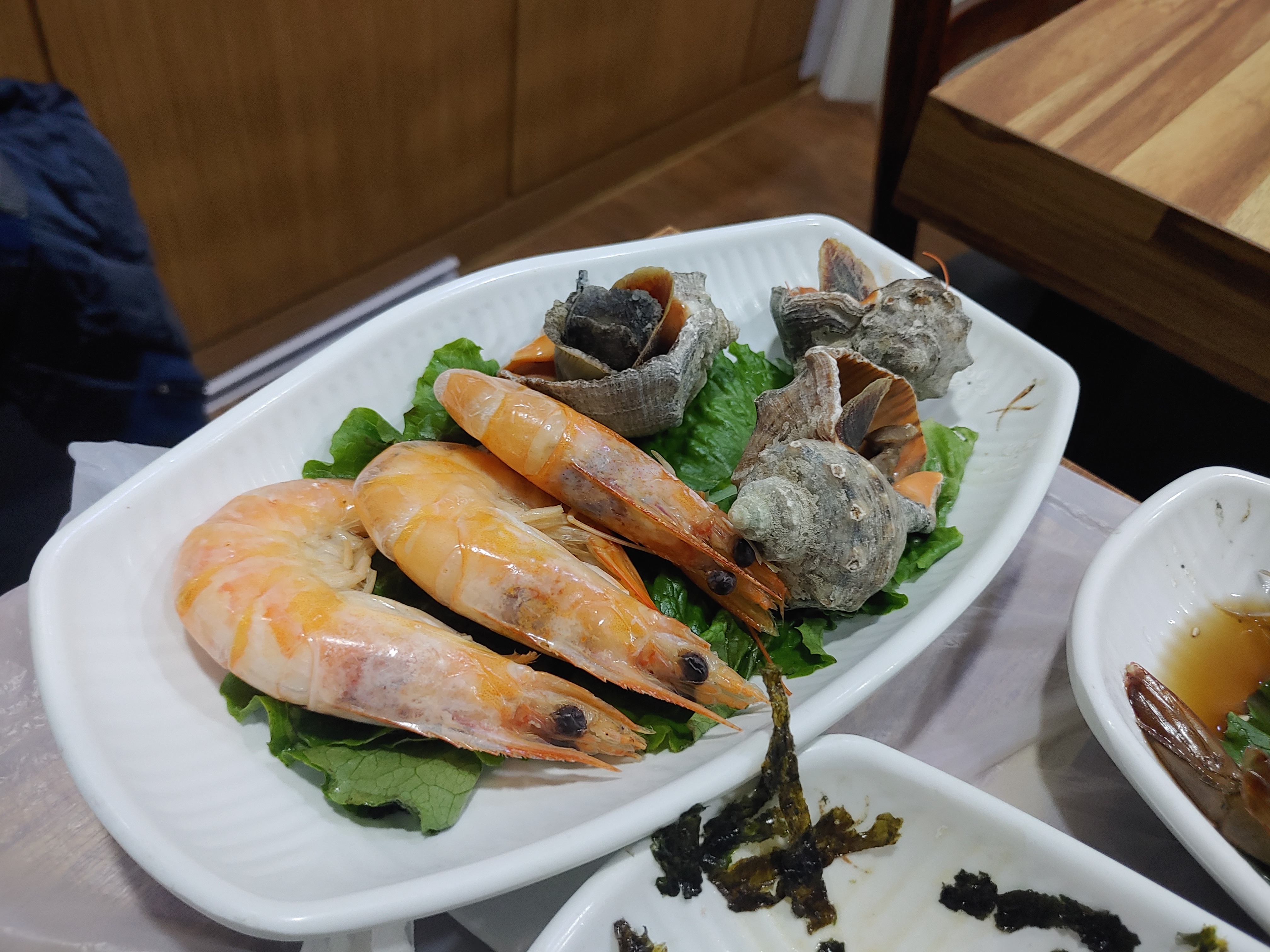 소라는 맛있는데... 새우는 더 맛있는 새우를 먼저 먹어서...맛이 없었음. ㅋㅋ