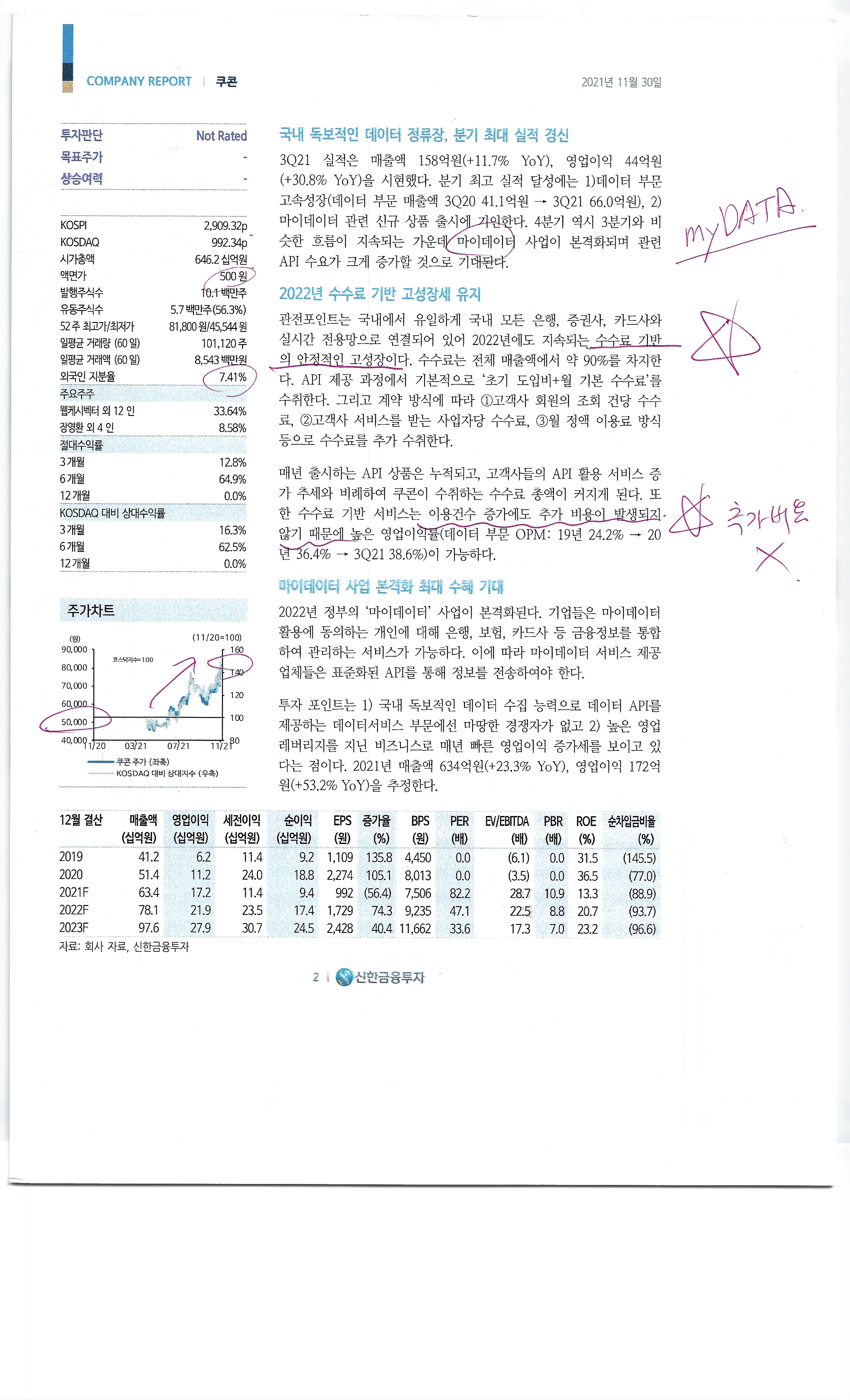 고속성장(데이터 부문 매출액 3Q20 41.1억원 → 3Q21 66.0억원), 2)
