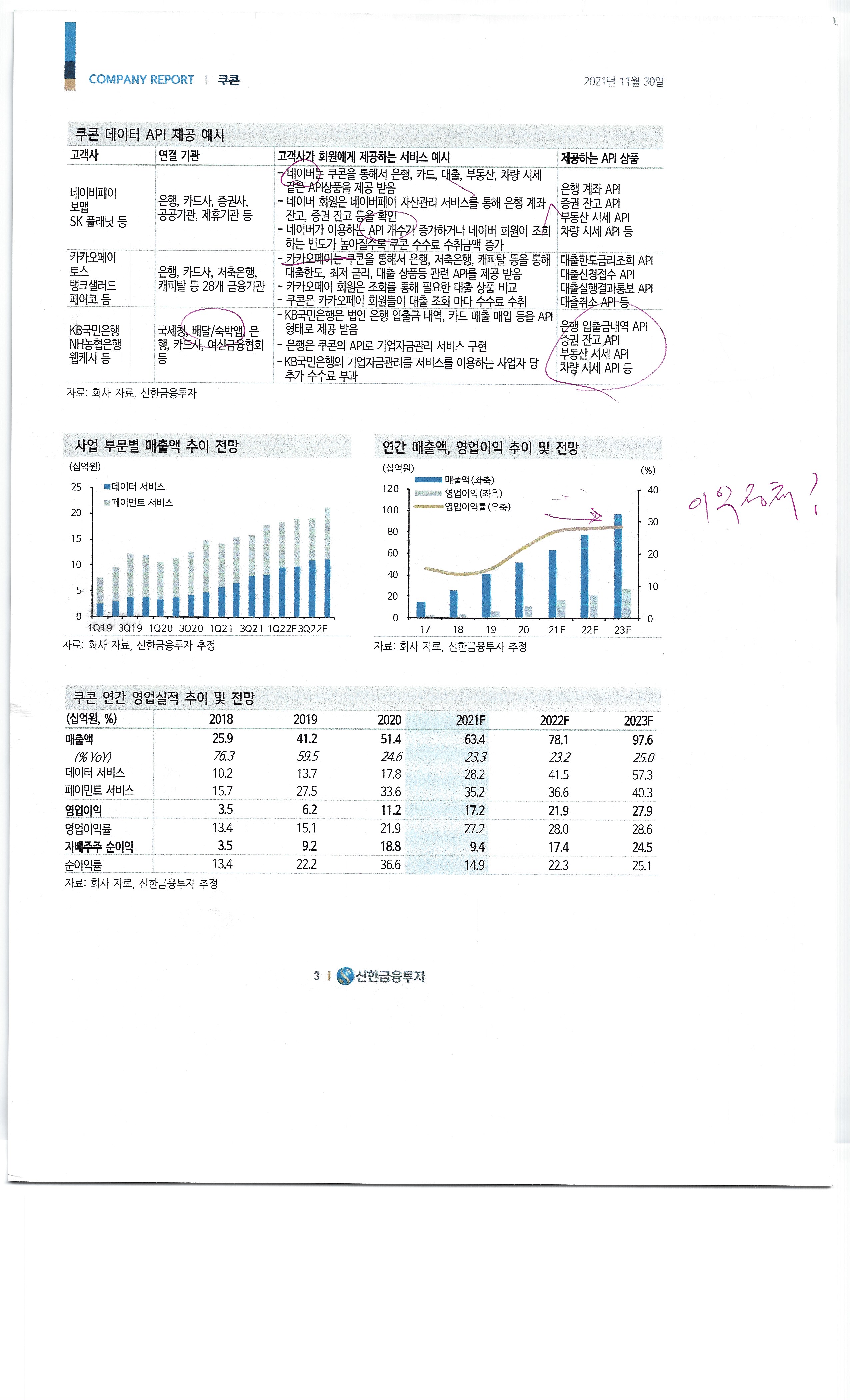 마이데이터 관련 신규 상품 출시에 기인한다. 4분기 역시 3분기와 비
