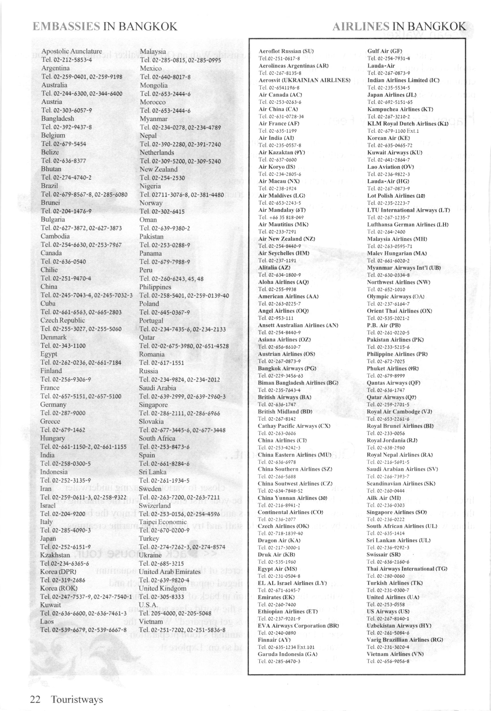 | Content™ Welcome to Bangkok 13 Hotel Guide 16-18 14 15 Massage Service 19 Embassies in Bangkok 22 Airlines in Bangkok 22 Thailand Map (*) 26 20 Where to Stay 30 Bangkok Map 32-33 Give your business be.. "High Visibility" Advertise in TOURISTWAYS Please call us.. 081-931-0587 |