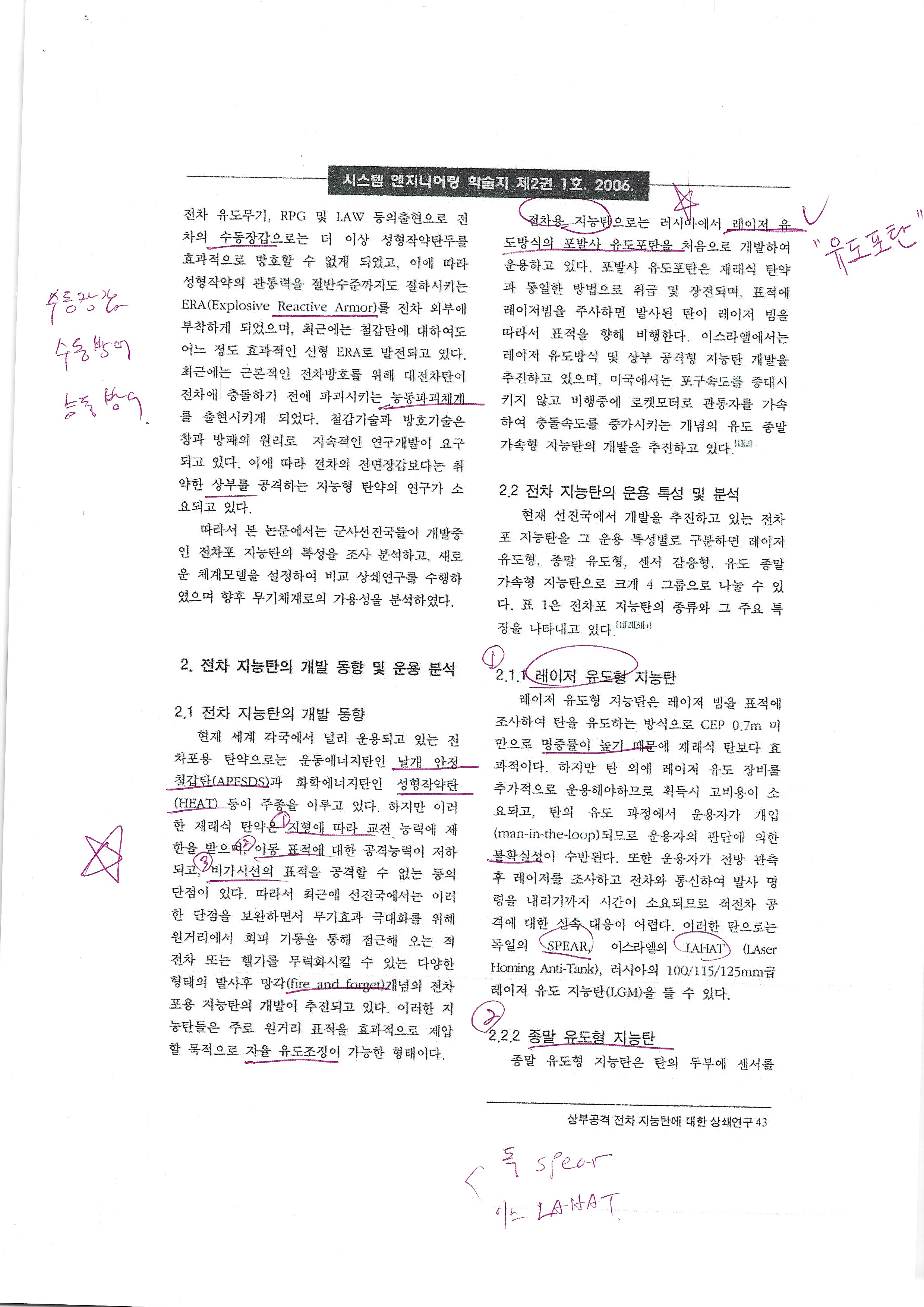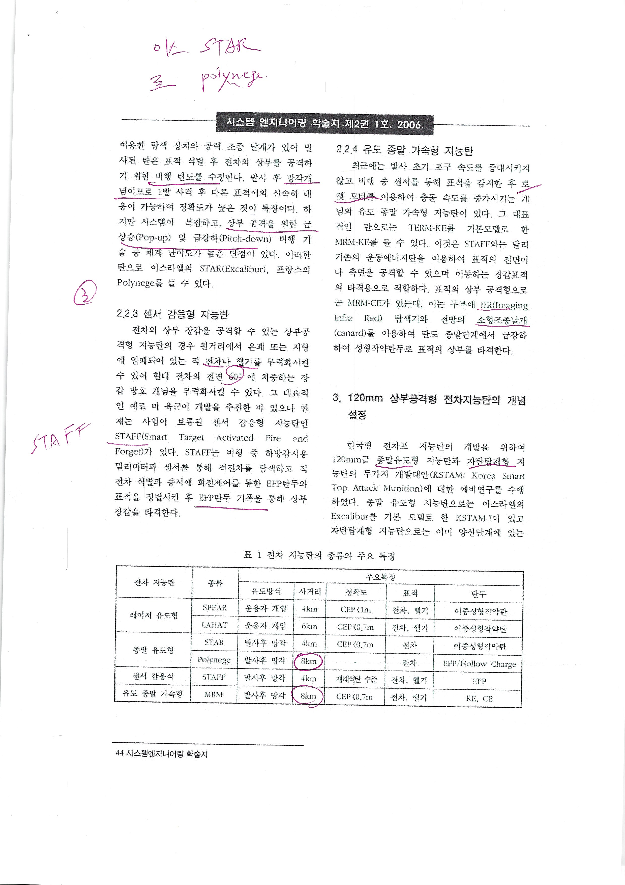 현재 세계 각국에서 널리 운용되고 있는 전 차포용 탄약으로는 운동에너지탄인 날개 안정 철갑탄(APFSDS)과 화학에너지인 성형작약탄 (HEAT) 등이 주종을 이루고 있다. 하지만 이러 한 재래식 탄약은 지형에 따라 교전 능력에 제 한을 받으며, 이동 표적에 대한 공격능력이 저하 되고, 비가시신의 표적을 공격할 수 없는 등의 단점이 있다. 따라서 최근에 선진국에서는 이러 한 단점을 보완하면서 무기효과 극대화를 위해 원거리에서 회피 기동을 통해 접근해 오는 적 전차 또는 헬기를 무력화시킬 수 있는 다양한 형태의 발사후 망각(fire and forget개념의 전차 포용 지능탄의 개발이 추진되고 있다. 이러한 지 농민들은 주로 원거리 표적을 효과적으로 제압 할 목적으로 자유 유도조절이 가능한 형태이다.