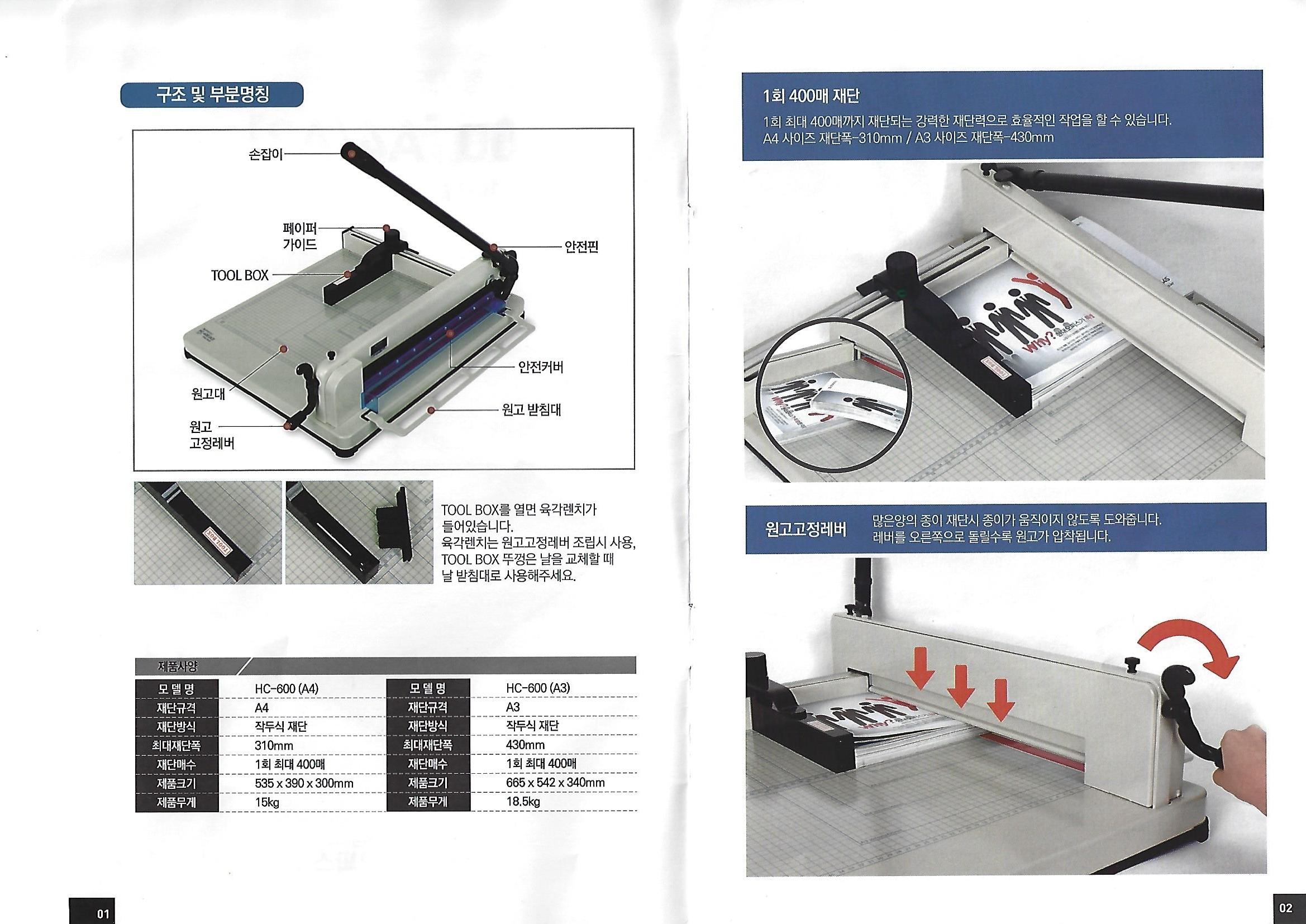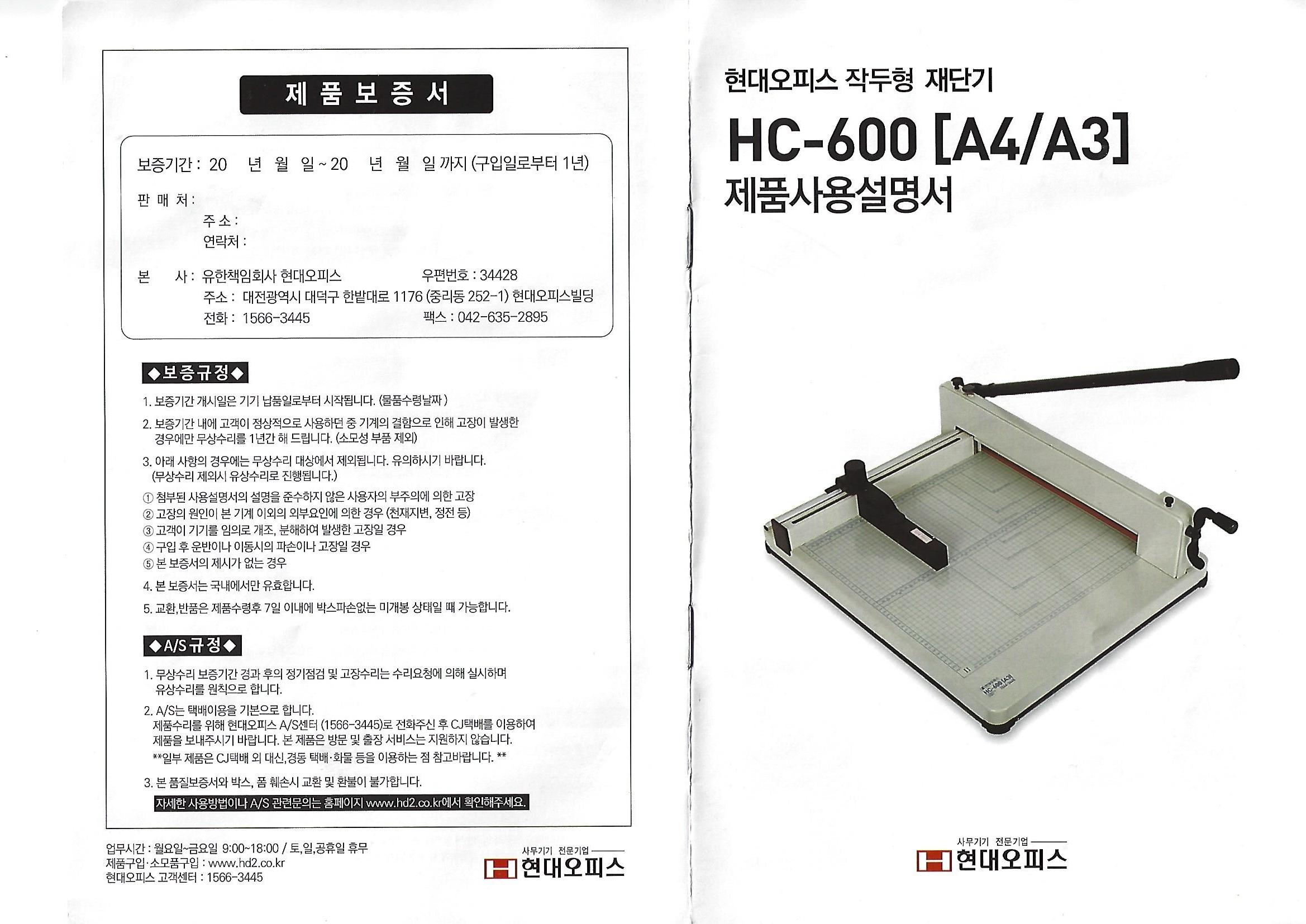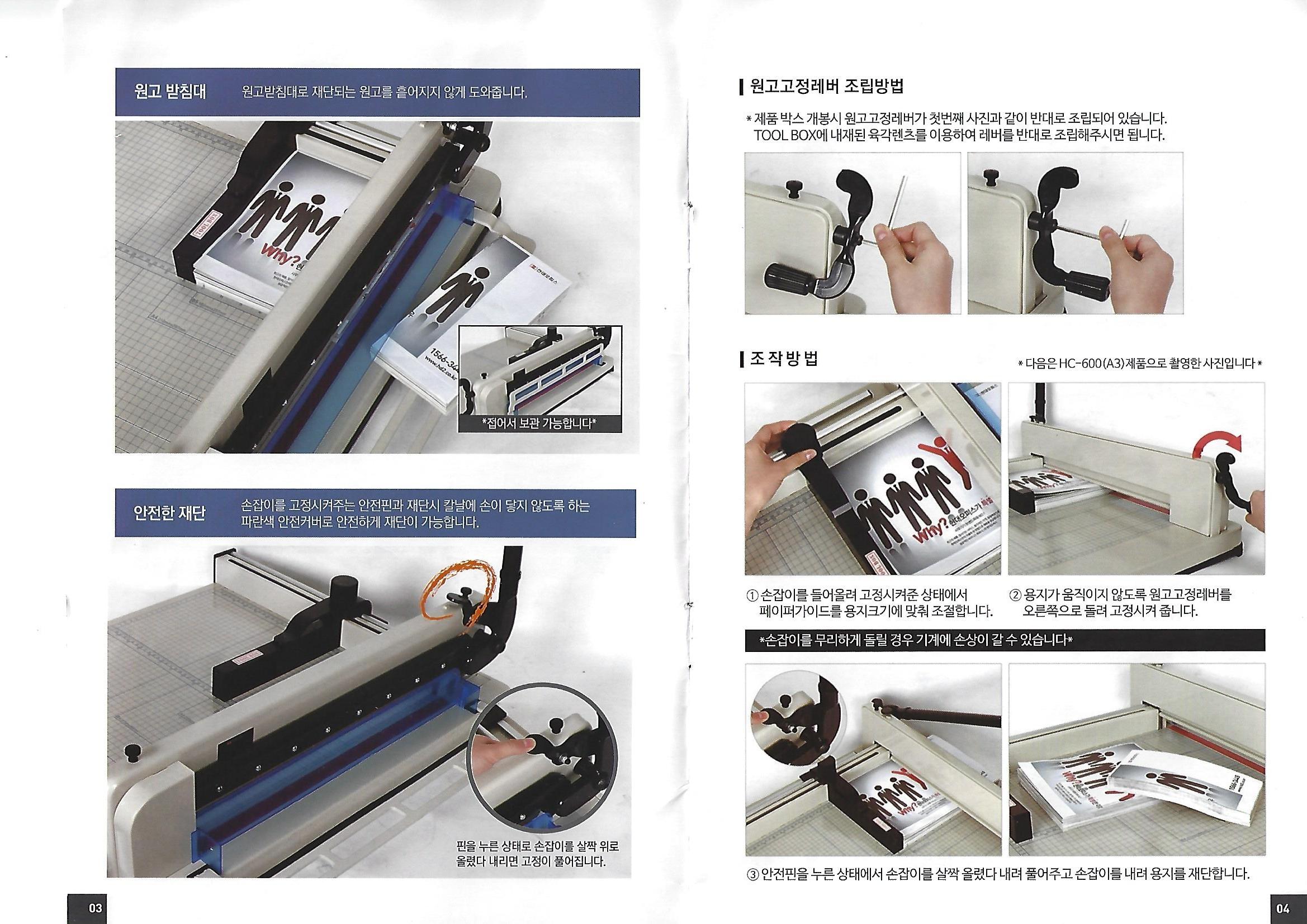 현대오피스 작두형 재단기 사용설명서,