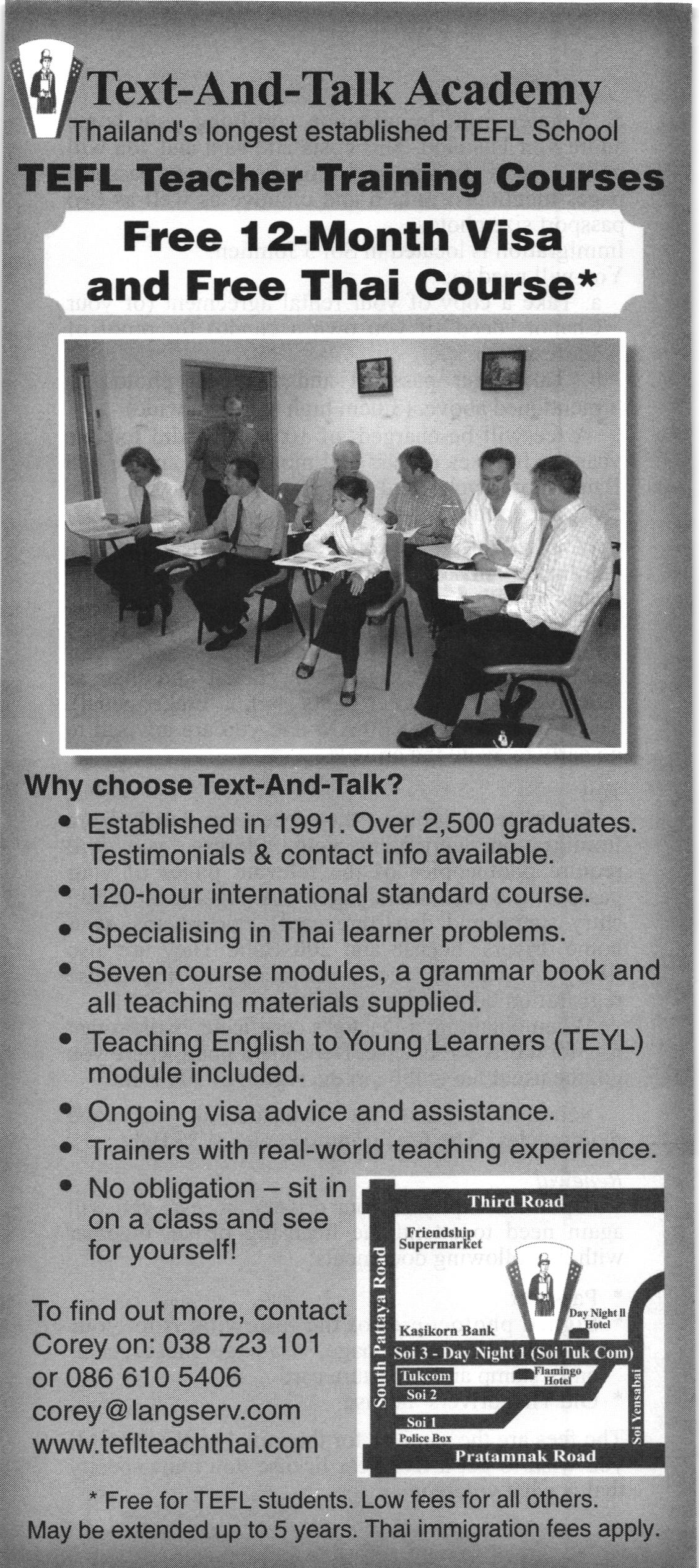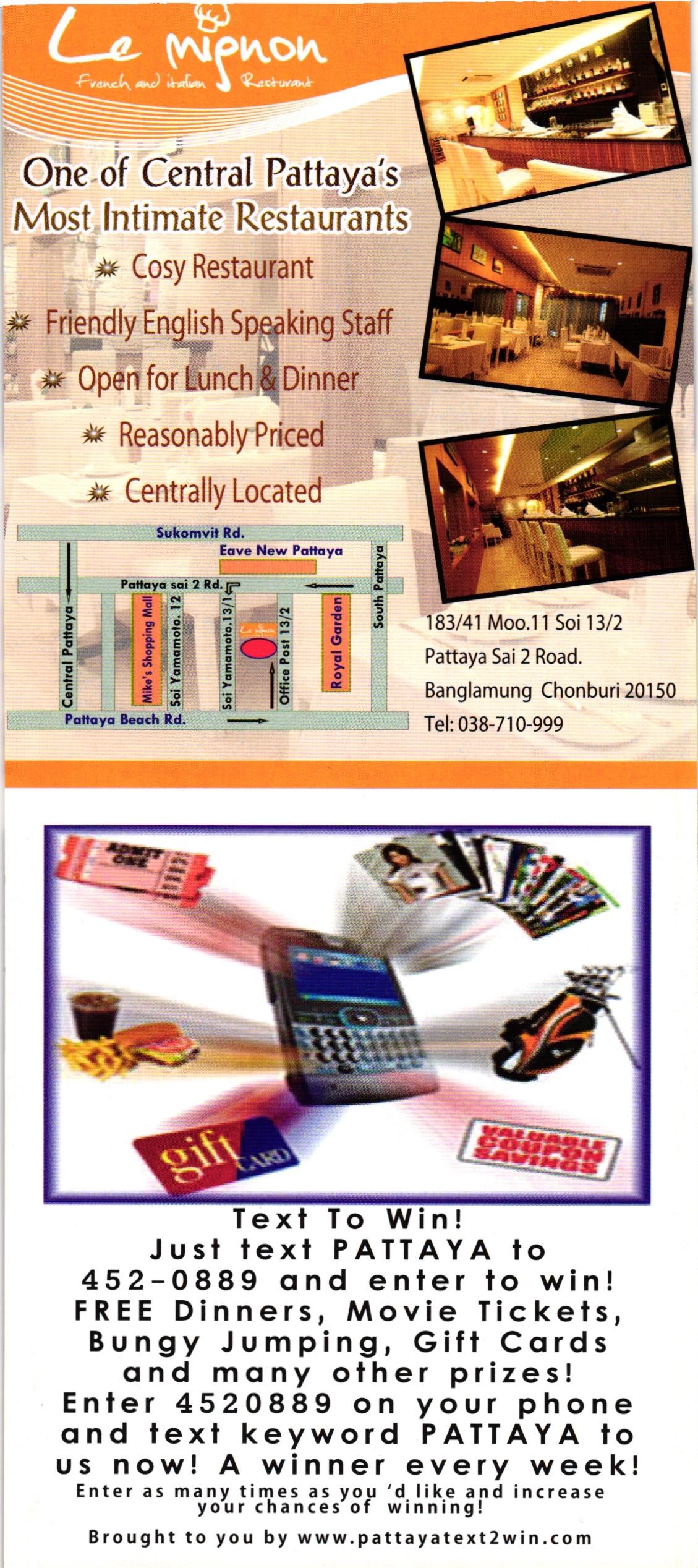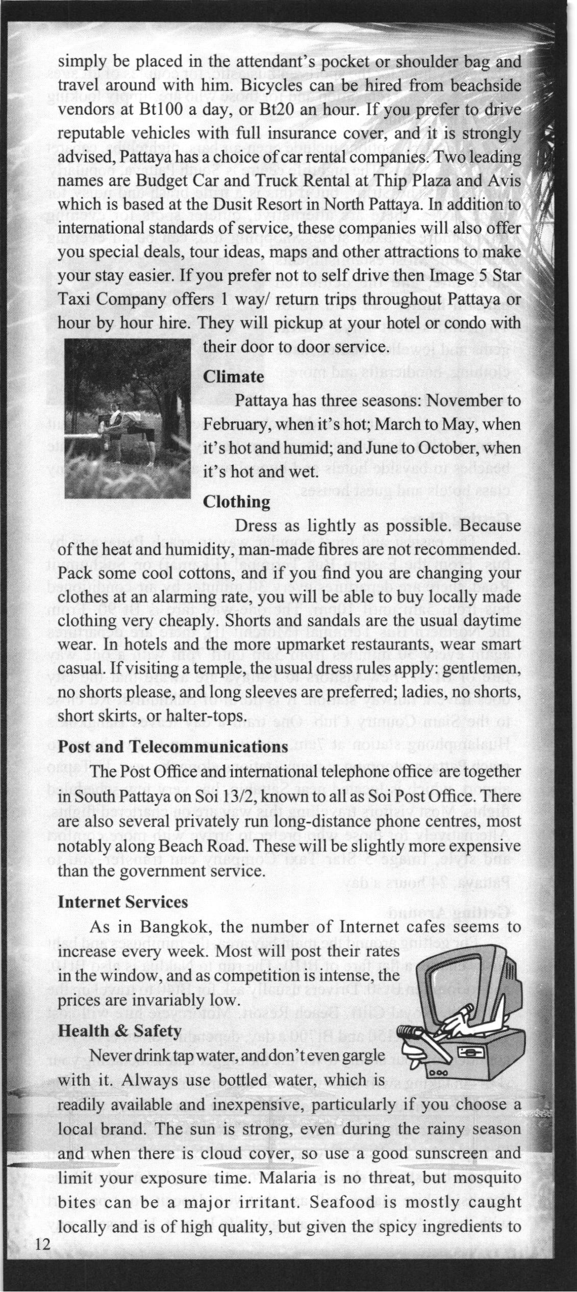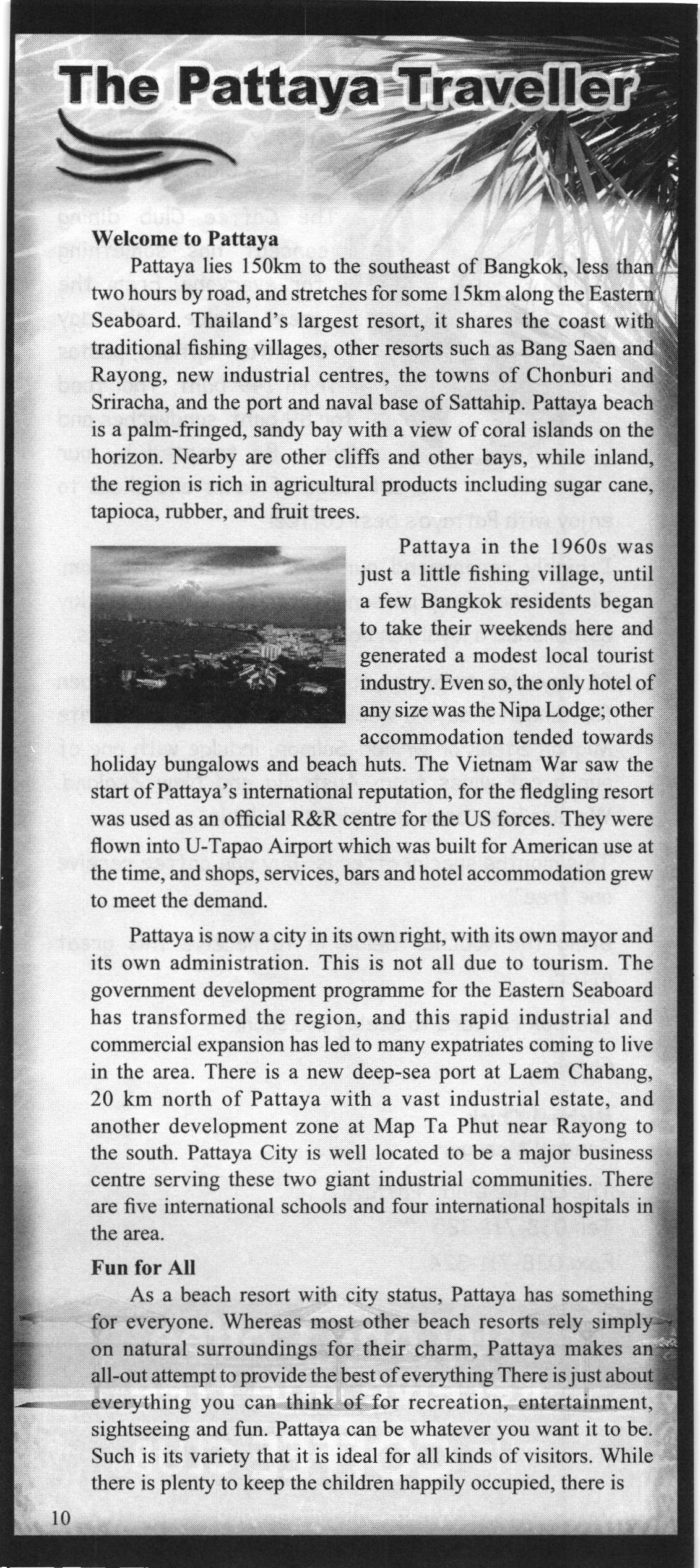 | >THAI EKY ADVENTURES DI SHOPPING ENTERTAINMENT Jump from 4000m/13,000ft Freefall Speed of 200km/h/120mph!!! One of life's most memorable moments, safe, highly experienced professionals and equipment. See the world from a different perspective... experience true freedom. Return transfer incl. from Pattaya Tandem Skydive Traveller USPA Drop Zom call: 085 900 3412 www.thaiskyadventures.com LIVING The Hottest Real Estate Deals in the City info@thaiskyadventures.com 2 Directory Of Businesses & Locations No. Name 2 Easyriders Bar Pub 4 Sitpholek Gym 7 Hippo Restaurant 10 Mike's Mexican Restaurant 13 Da Tiziano 14 Tequila Reef Restaurant 15 Bonkai Resort 18 PROGRESS Language & Computer School 19 Le Mignon 20 Pungpon 21 Cafe Amis 22 Mata Hari 23 Chaiyapoon Inn 25 Dream Teen Massage 29 Mr. 99 30 Nana Bar & Happy Hand Massage 33 Iron Horse Motorcycles 34 Marriott-Royal Garden Plaza B 4 35 Text-And-Talk Academy 36 The Coffee Club 37 Tattoo Studio 39 El Paso 40 Easykart.net 41 First Class 42 Siam Massage&Facial Massage 43 Hard Rock Cafe 44 Lobster Pot 45 Aesthica Medical Spa 46 Happy Home Thai Cooking School C 3 47 Pattaya Royal Beaty Clinic C3 48 The Blues Factory 49 The Mini Golf Pub B4 B4 Grid No. Name 50 Dr. Olivier Clinic 51 Edelweiss Fondue House & Restaurant 52 Captain's Corner 53 Rim Talay 54 Aesthica 55 Bungy Jump 64 PLC Language School 65 Languagecorps 67 Rosie O'Gradys 68 Lighthouse 70 Dive South East Asia 71 Le Pétrus 73 Pipo's Restaurant JOMTIEN 66 Hongsa Kitchen 80 Linda's Restaurant 81 Mermaids Dive Center 82 L'Olivier 83 Hot Stone Grill 84 The Bristol Music Bar 85 Highlander Bar&Guesthouse E Land Office Department E Pattaya Provincial Court E Revenue Office E Amari Hotel Grid E Bangkok Pattaya Hospital D2 E Bus Station to Bangkok E City Hall E Foodland E Highway Police Station E Immigration E Lotus E Pattaya International Hospital D2 B4 ation |