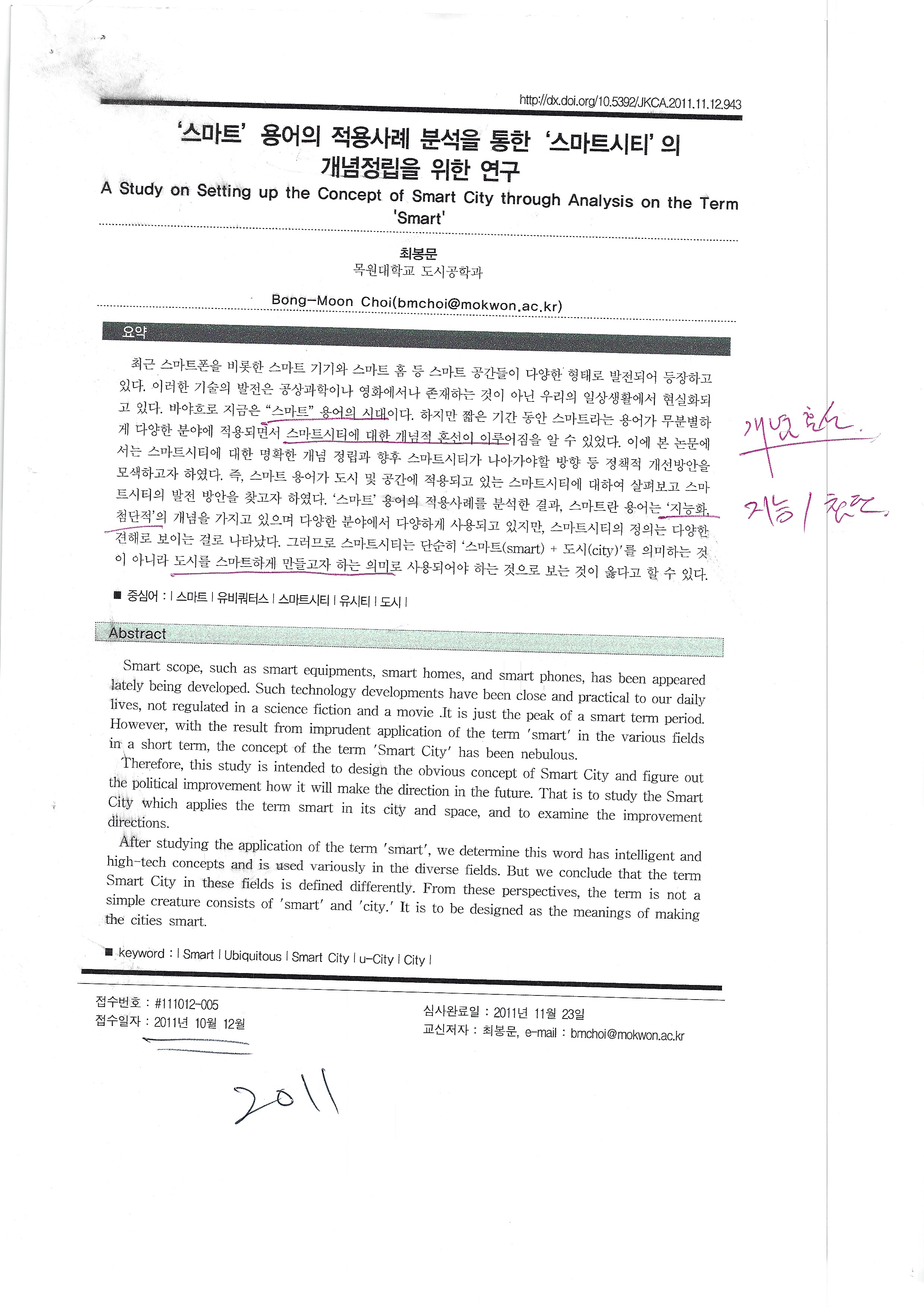 개념정립을 위한 연구 A Study on Setting up the Concept of Smart City through Analysis on the Term 'Smart'