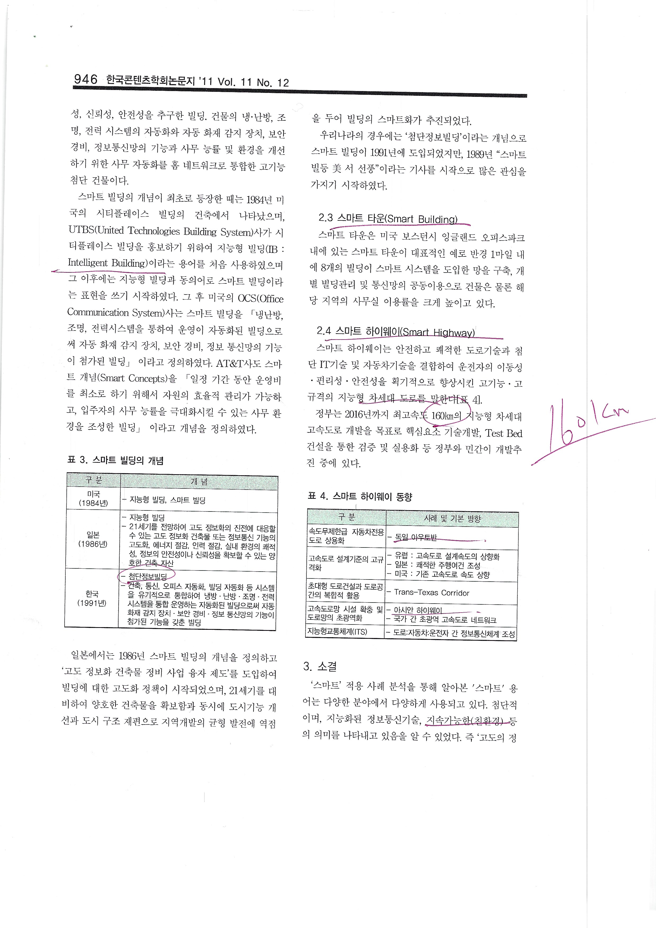 요약 최근 스마트폰을 비롯한 스마트기기와 스마트홈 스마트 공간들이 다양한 형태로 발견되어 등장하고 있다. 이러한 기술의 발전은 공상과학이나 영화에서나 존재하는 것이 아닌 우리의 일상생활에서 현실화되 고 있다. 바야흐로 지금은 스마트 용어의 시대이다. 하지만 짧은 기간 동안 스마트라는 용어가 무분별하 게 다양한 분야에 적용되면서 스마트시티에 대한 개념적 혼선이 이루어짐을 알 수 있었다. 이에 본 논문에 서는 스마트시티에 대한 명확한 개념 정립과 향후 스마트시티가 나아가야할 방향 등 정책 개선방안을 보직하고자 하였다. 즉, 스마트 용어가 도시 및 공간에 적용되고 있는 스마트시티에 대하여 살펴보고 스마 트시티의 발전 방안을 찾고자 하였다. '스마트의 적용사례를 분석한 결과, 스마트 용어는 지능화 최적의 개념을 가지고 있으며 다양한 분야에서 다양하게 사용되고 있지만 스마트시티의 정의는 다양한 진해로 보이는 길로 나타났다. 그러므로 스마트시티는 단순히 '스마트(smart) - 도시(city)'를 의미하는 것. 이 아니라 도시를 스마트하게 만들고자 하는 의미로 사용되어야 하는 것으로 보는 것이 옳다고 할 수 있다.