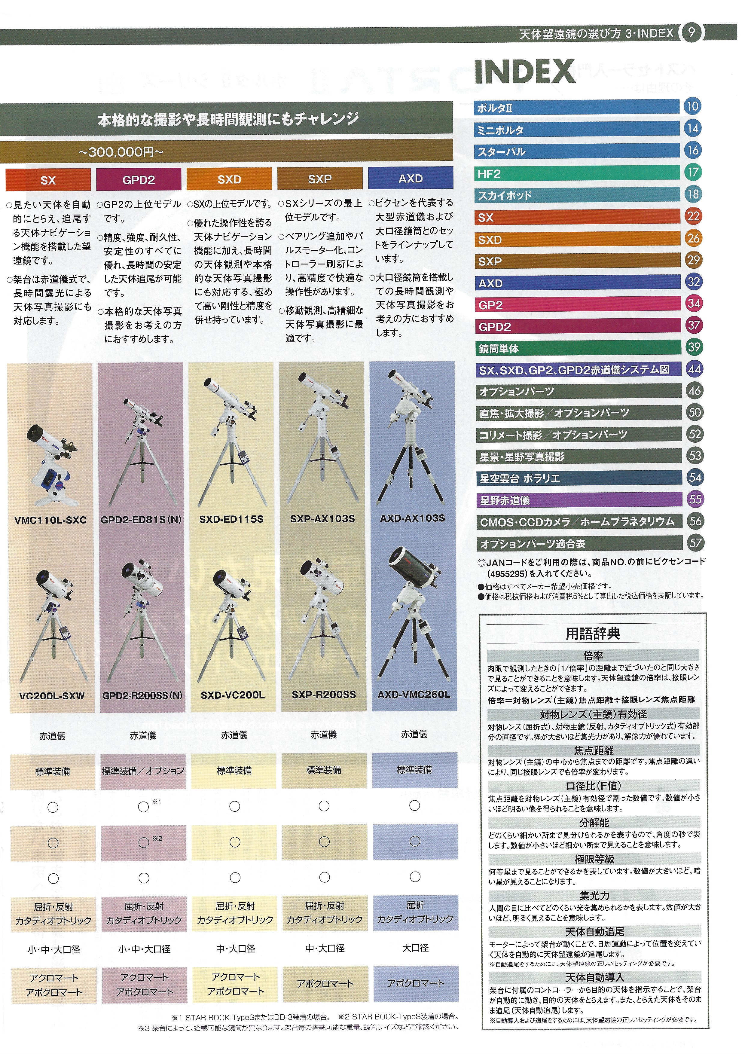 Vixen Catch the Emotion 된다 미경 내가 모르는 아름다움이었다. 거기에 비치는 풍경은 Vixen AXD 적도의가 굿 디자인상을 수상. 「사용하는 사람에게 있어서, 무엇보다 중요한 것은 정밀도라고 생각할 수 있지만, 그 면에서의 평가가 높은 제품은, 쓸데없는 일은 하지 않고 만들어 졌기 때문에, 그 높이를 엿볼 수 있다」 와의 평가를 받아, 굿 디자인상을 수상. 디자인. 더 많은 사람들이 광학 제품에 친숙하게 사용하기 위해서는 디자인이 매우 중요합니다. 기존의 형태에 얽매이지 않는 자유로운 발상과 디자인을 바탕으로 태어난 빅센 제품은 지금까지 굿 디자인상을 7번 수상하고 있습니다. · 션 선정 상품으로도되어 있습니다. 또한 JIDA 디자인 박물관 셀렉 굿 디자인상 (일본 산업 진흥회 인정) [1994년도] 필드 스코프 지오마 65 [1999년도] 루페 AR90, AR75, AR65 [2001년도] “쌍안경 포레스터 8×42BWCF, 10×42BWCF [2003년도] 천체 망원경 SX (스핑크스) 적도의 [2003년도] 필드 스코프 지오마프로 67A [2011년도] 천체 망원경 AXD 적도의 쌍안경 아르테스 인스토리얼 디자이너 JIDA 디자인 뮤지엄 셀렉션 Vol 정품 뉴 포레스터 HR 10×50WP P 8 mm mm mm m 기종명 (경통+가대로 표기하고 있습니다) mm D O P13 P12 (2) (6) (3) 5 O O O O NEW (1) 10 3 (5) 2 (2) 6 O (2) 6 2 2 O A O A 2 6 (4) 볼타ⅡI A80MI #R130S! # VMC110L 볼타ⅡI A80M I ED80S! 미니 볼타 A70L1 P15 미니 볼타 VMC95L 스타펄-50L P16 스타펄-60L HF2-BT81S-A P17 RHF2-BT-ED70S-A HF2-BT125-A 31 VMC110L 스카이 포드 A80Mf P20 31R130Sf 스카이 포드 ED80Sf A80M-SXW A105M-SXW ED81S-SXW P24 P25 VMC110L-SXC ED103S-SXW VMC200L-SXW VC200L-SXW R200SS-SXW SXD-AX103S SXD-ED115S P27 SXD-ED103S P28 SXD-NA140SSf SXD-VC200L SXD-R200SS SXP-AX103S SXP-ED103S P30 SXP-ED115S P31 SXP-VC200L SXP-R200SS AXD-AX103S AXD-AX103S-P AXD-VMC260L P33 AXD-VMC260L-P GP2-A80MF AL P34 S GP2-R130Sf AL GP2-A80M AL P36 GP2-A105M AL GP2-R200SS AL GPD2-ED81S (N) GPD2-ED103S (N) P38 GPD2-R200SS (N) GPD2-VC200L (N) 2 2 6 O 2 6 2 6 (2 O A (4) NEW 2 NEW 2 (6) 2 NEW NEW NEW (2) 2 (6) (2) 2 2 A 2 (6) A NEW NEW NEW 2 NEW 2 NEW (4) (2) (2) 4 2 NLV 시리즈만 ② VC용 연장 튜브를 병용 플립 미러의 42T-317AD SX를 분리하고 42T-50 BAD를 -31.7ADE @64mmDCU37.55mmDCU39,45mmDCU 7.364-31.7ADER 07-FIL 7.45mmDCU7RFa-743mm.36.4-31.7AD ▲ 적합합니다만, 본체의 캡에 조리개 구멍이 없기 때문에 단시간의 태양 관찰만 가능합니다. 등이 뜨거워지면, △ 적합하지만 배율이 매우 높아집니다. (6) ※멀티 플레이트는 AXD용을 추천 |