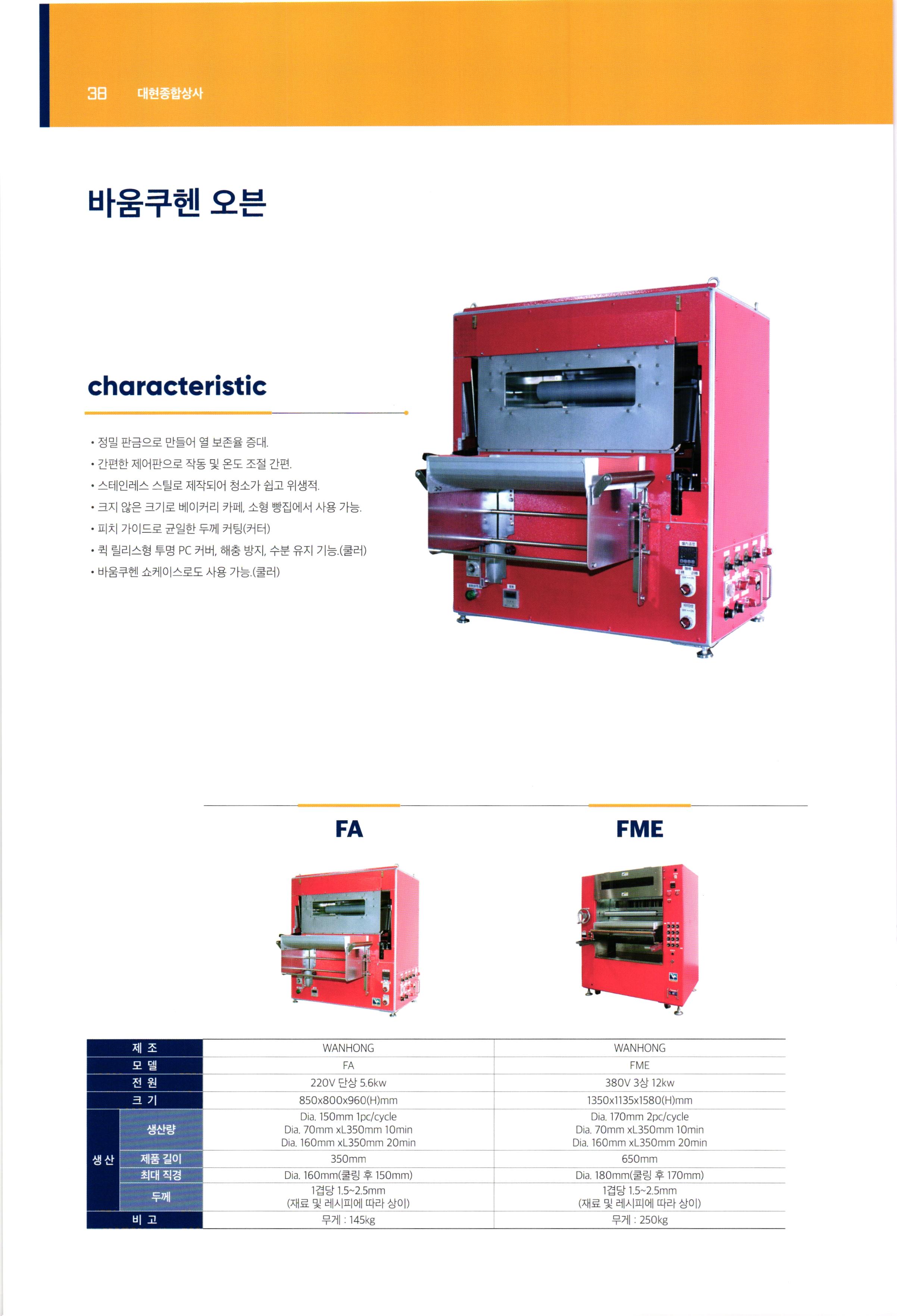 | BAKERY 베이커리 버티컬믹서 06 수동 공압식 데포지터 27 버티컬믹서(대형) 07 퍼프 데포지터 28 트윈 믹서 86889 08 전자동 타르트 성형기 29 스파이럴믹서 09 반자동 타르트 성형기 30 반죽이송기 10 자동 크레페&와플 성형기 31 디바이더 라운더 11 컨벡션오븐 32 유압식 디바이더 라운더 12 데크오븐 • 로타리랙 오븐 34 디바이더 14 도우컨디셔너 36 원룸형 라운더 15 발효기 37 바게트 물더 16 바움쿠헨 오븐 38 17 케이크 커터 40 테이블 파이로라 18 초음파 커터 41 파이로라 19 수평커터 42 케이크&쿠키 데포지터 20 번 커터 43 쿠키&만쥬/월병 생산라인 22 초콜릿 템퍼링기&엔로빙 머신 44 쿠키 생산라인 23 밀가루 채반기 46 모찌 생산라인 24 푸드프로세서 47 냉동 쿠키 성형 라인 25 삼면포장기 48 자동 공압식 데포지터 26 DUMPLING 만두 진공 반죽기&배합기 49 자동 완탕 성형기 58 야채 커터 50 어묵볼&미트볼 성형기 59 고기면서기 51 자동 2열 슈마이 성형기 60 전자동 만두성형기 52 스프링 롤 라인 61 소룡포 성형기 55 베트남 쌀피를 생산라인 62 어묵고로케 성형기 56 포자만두&빵 성형기 63 만두피 성형라인 57 |