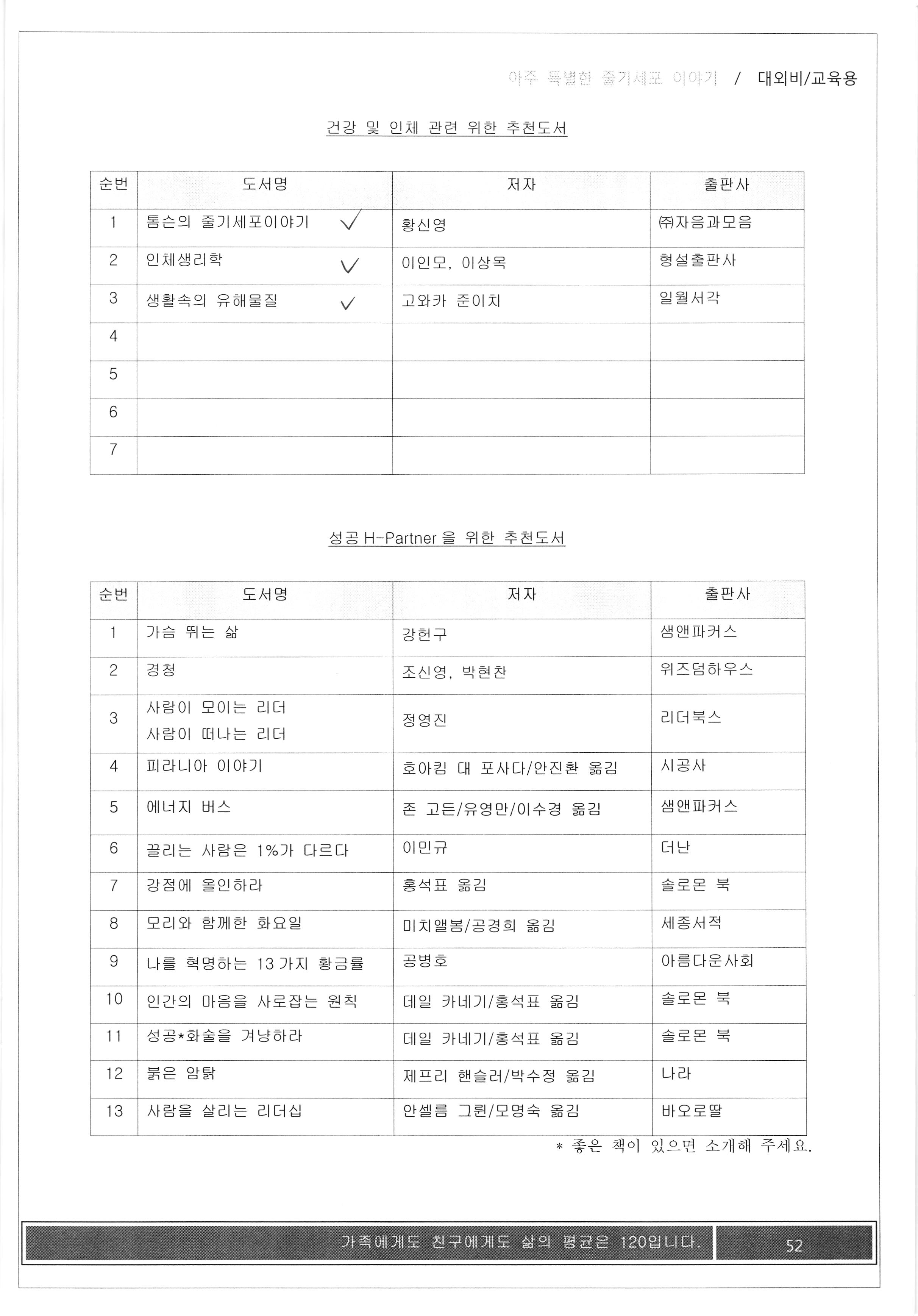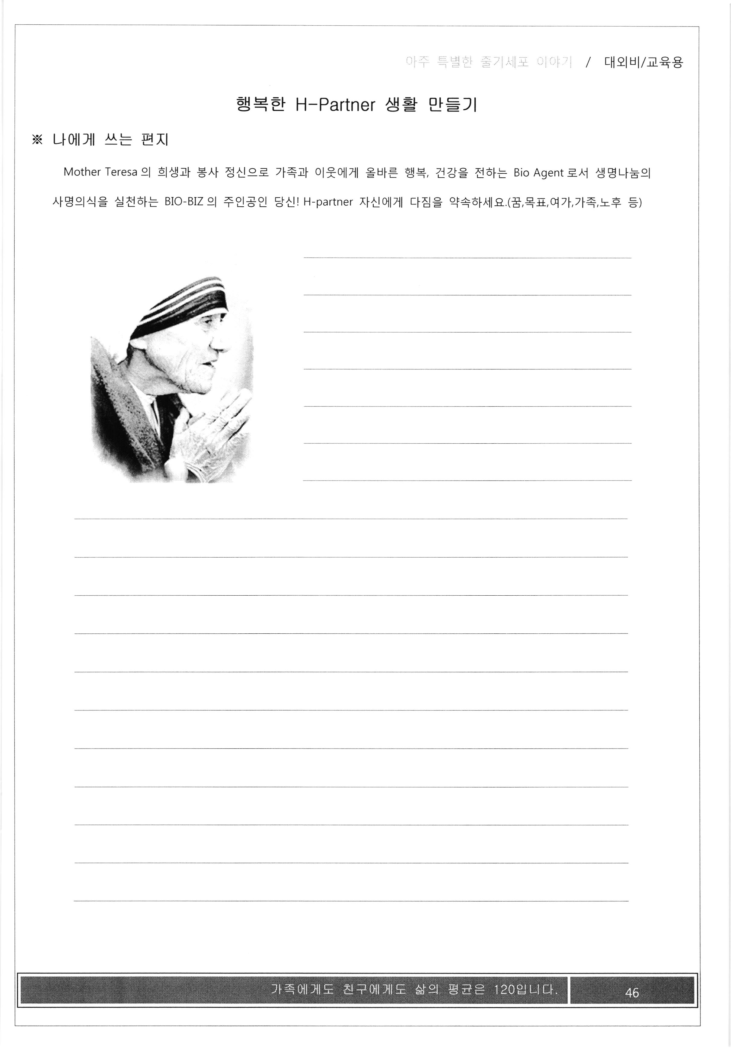 가족에게도 친구에게도 삶의 평균은 120 입니다.