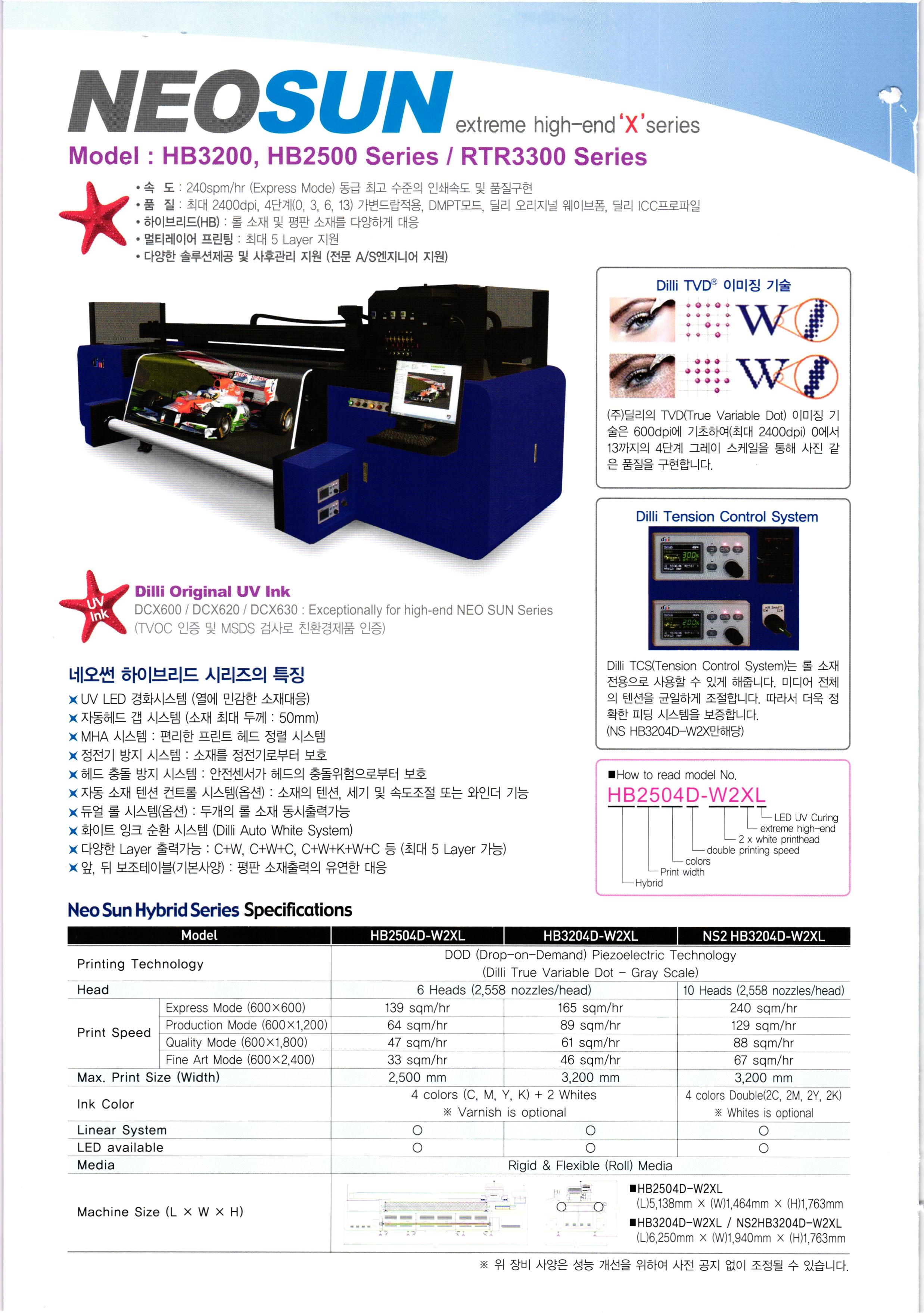 - 네오 어스 - 경제형 하이브리드 타입(평판+롤투롤)소형 평판 전용 - 네오 시리우스 - 하이브리드 타입(평판+롤투롤) 평판 전용