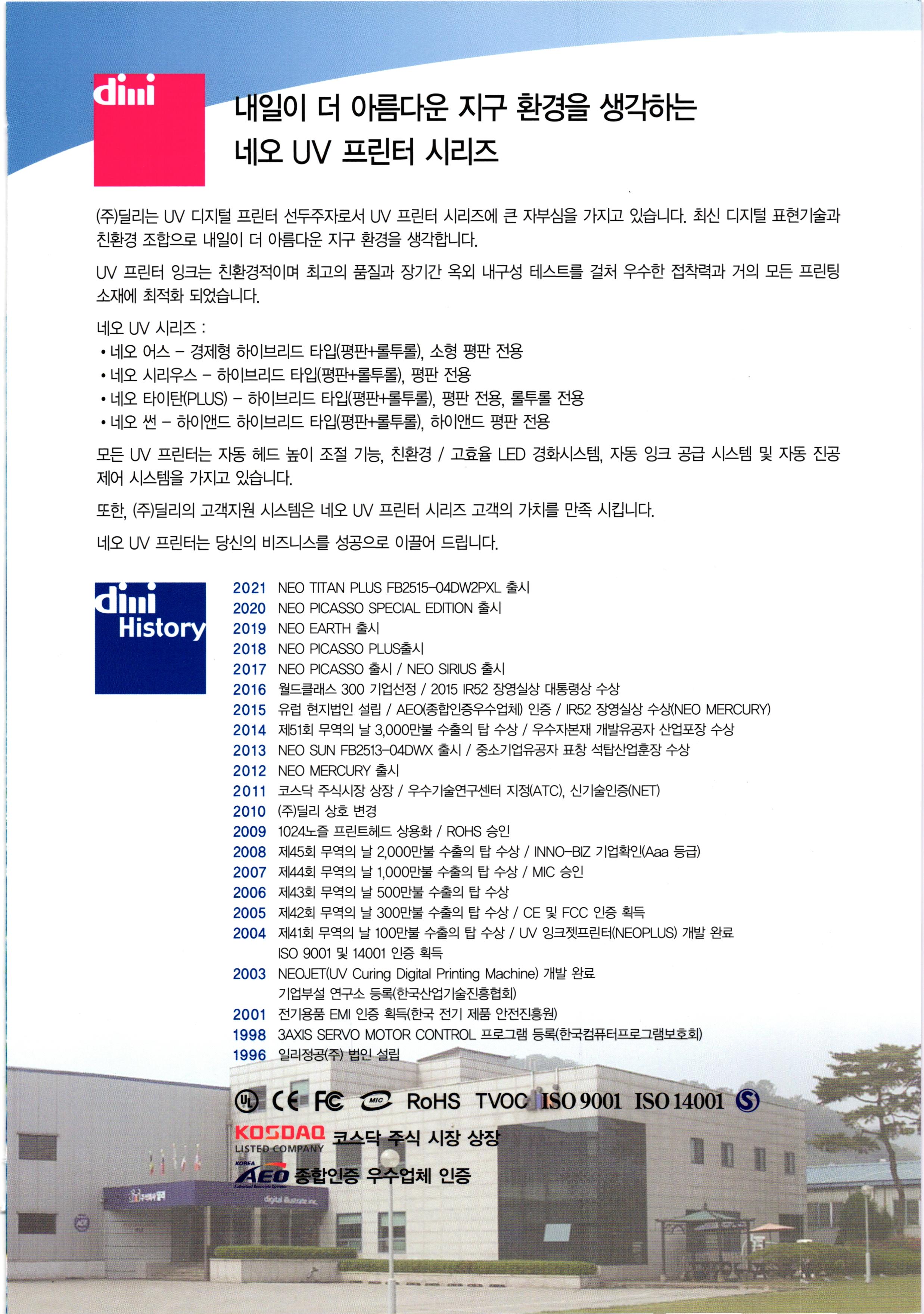 또한 (주)딜리의 고객지원 시스템은 네오 UV 프린터 시리즈 고객의 가치를 만족 시킵니다.