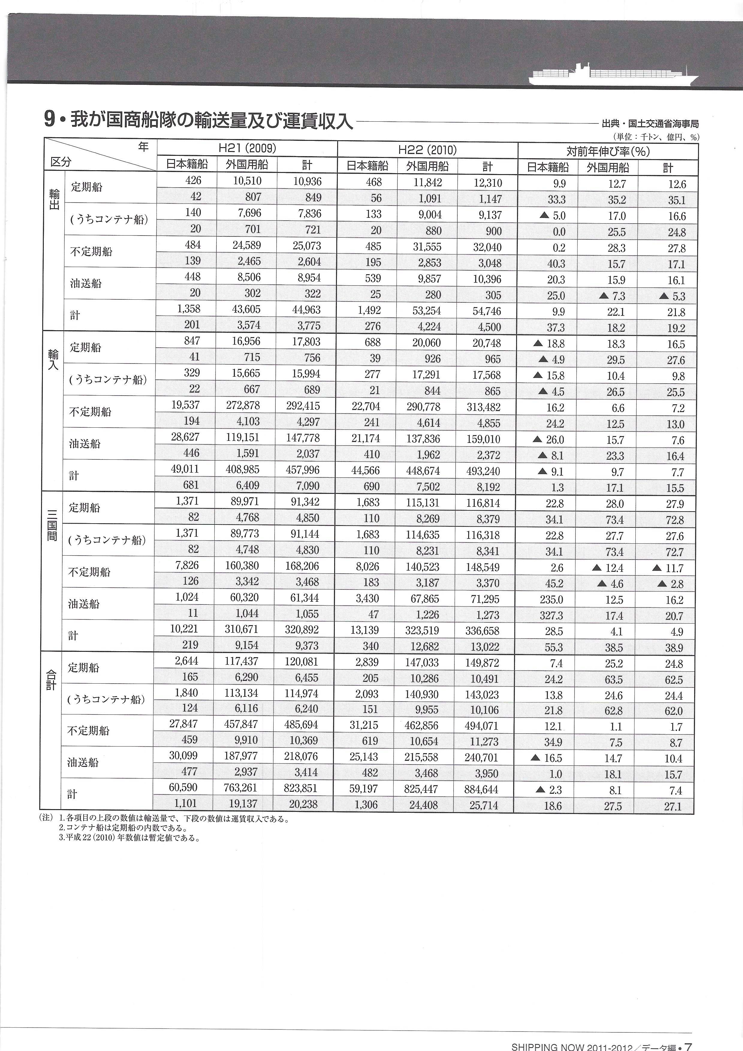9. 我が国商船隊の輸送量及び運賃収入/出典国土交通省・・・・・・7