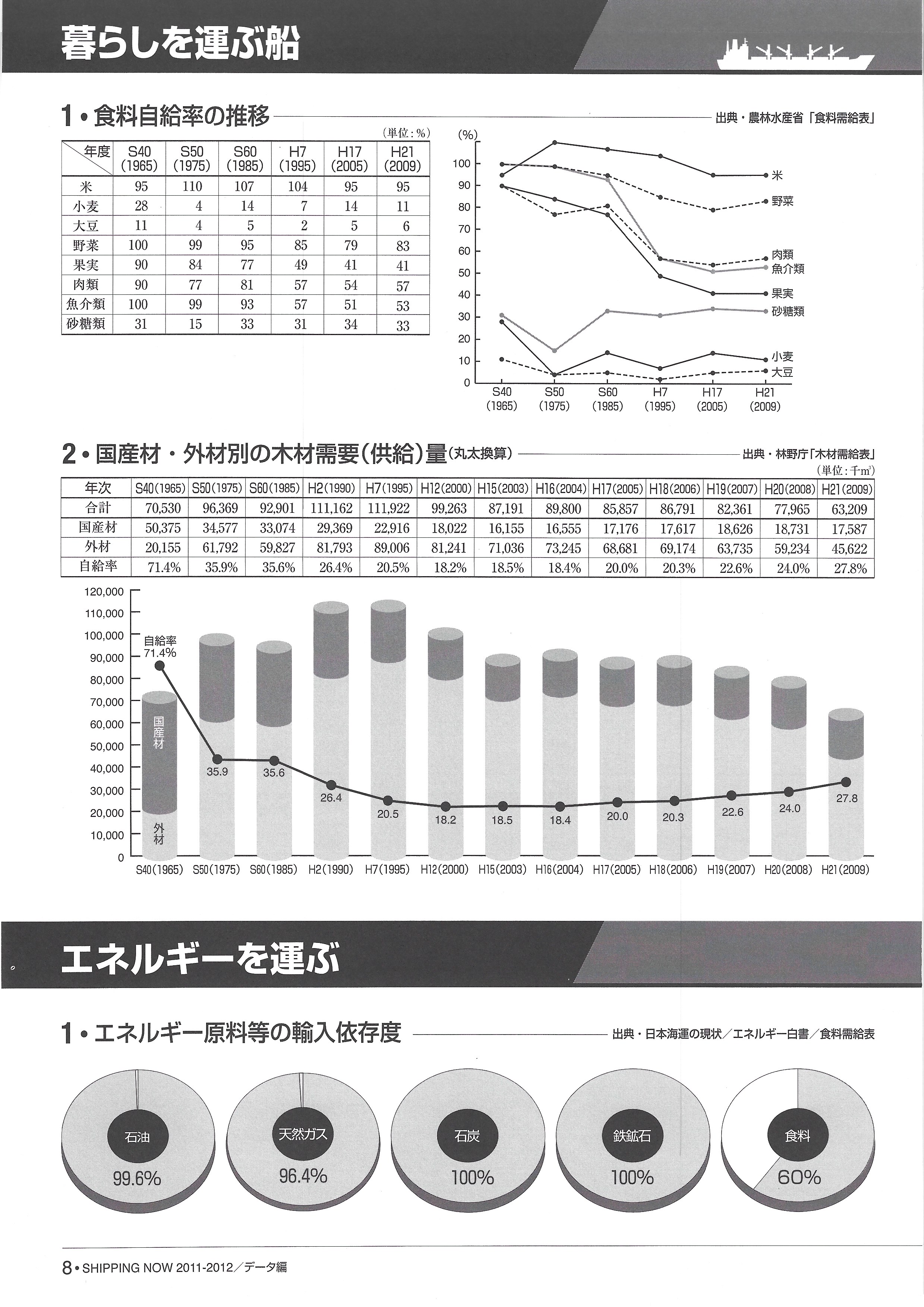 1. エネルギー原料等の輸入依存度/出典●日本海運の調状/エネルギー白/食料開給表・・・・・・8