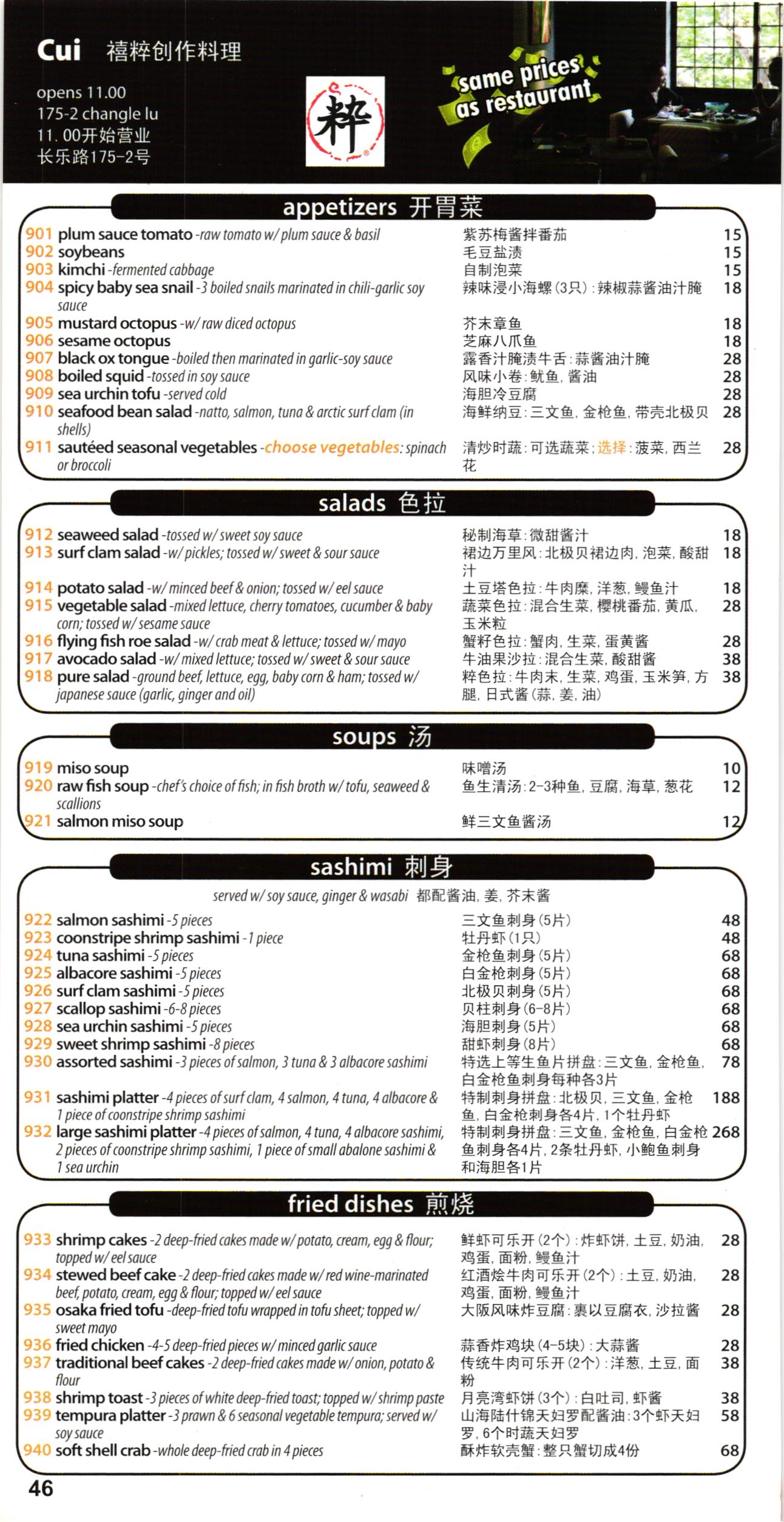 DOWNTOWN PUXI Menu Book 市区浦西菜单