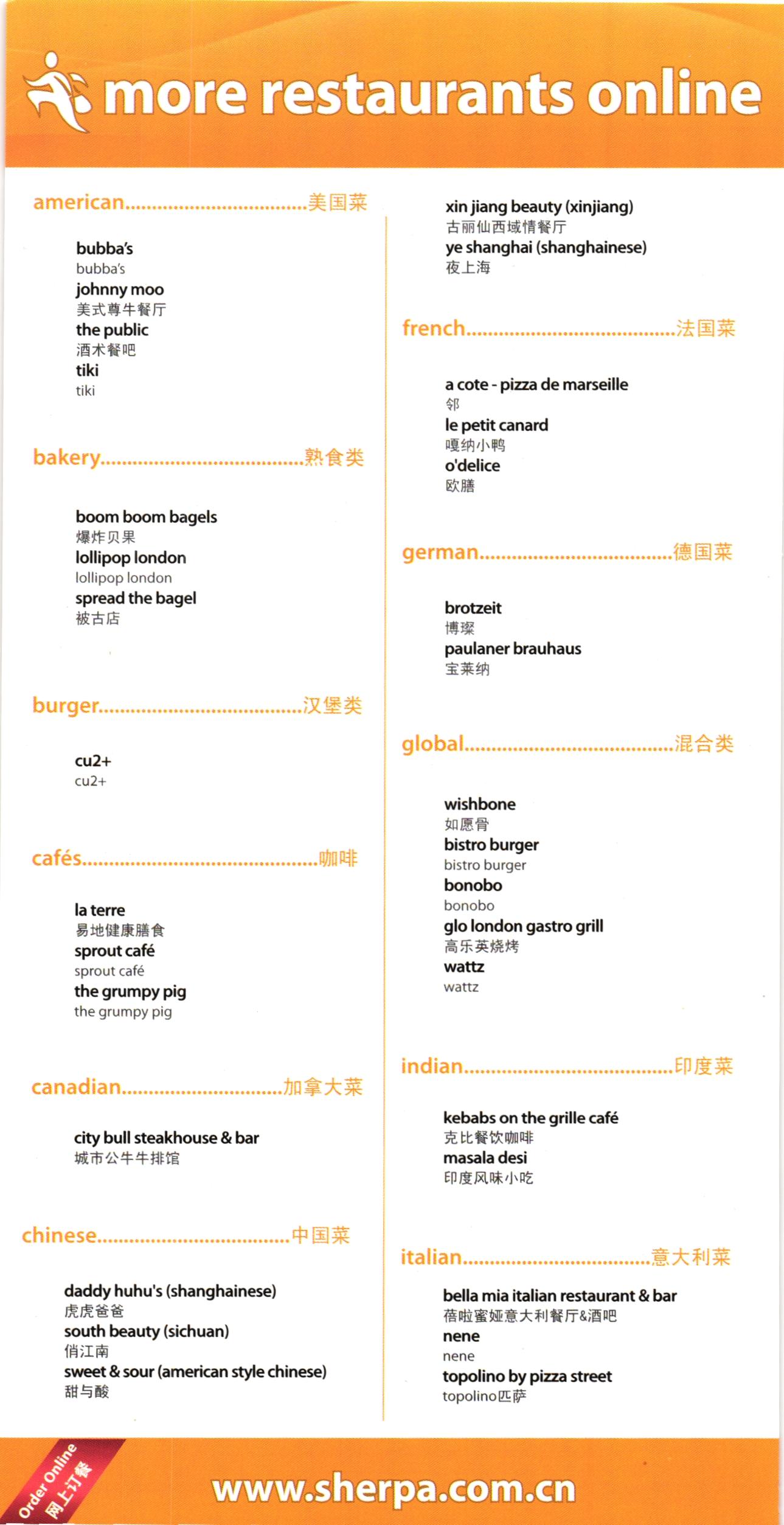 请通过网站www.sherpa.com.cn查询离你最近的餐厅