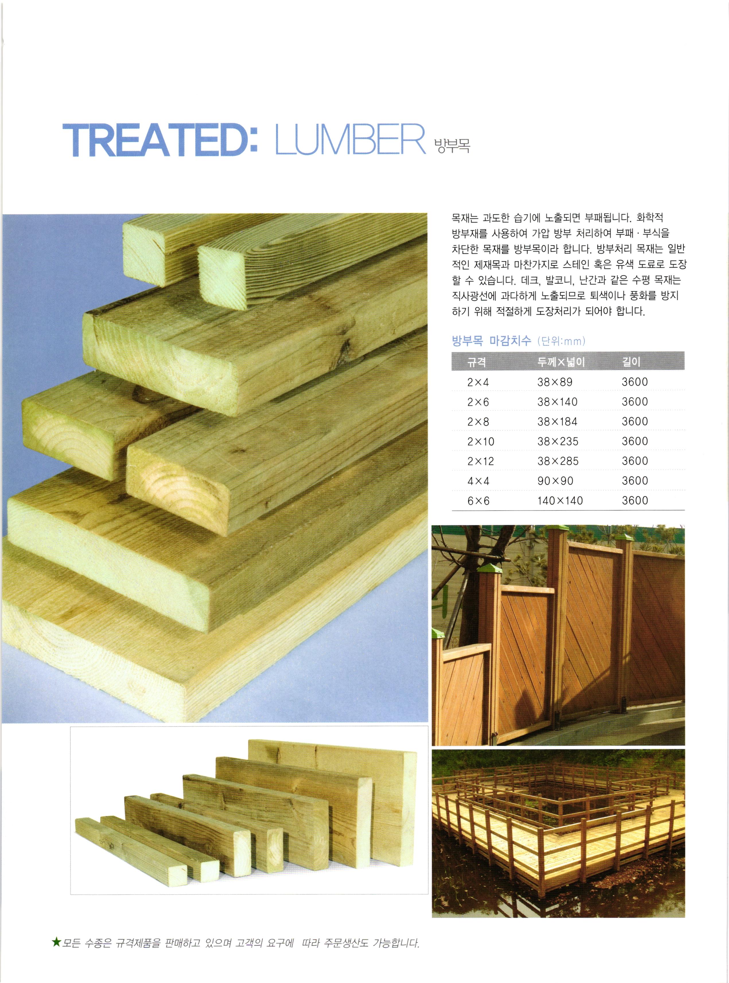 Babingga Afrormosia Iroko 이로코 sia Cumea 꾸메아 Dellenia 딜레니아 Merbau 멀바우 Ulin 울린 Taun 타운 Selunsur 슬란사 Malas Bangkirai 방키라이 Bruchla 부켈라 China Hemlock 중국산 홍송 Hinoki 히노키 Red Pine 레드파인 Spruce 스프러스 |