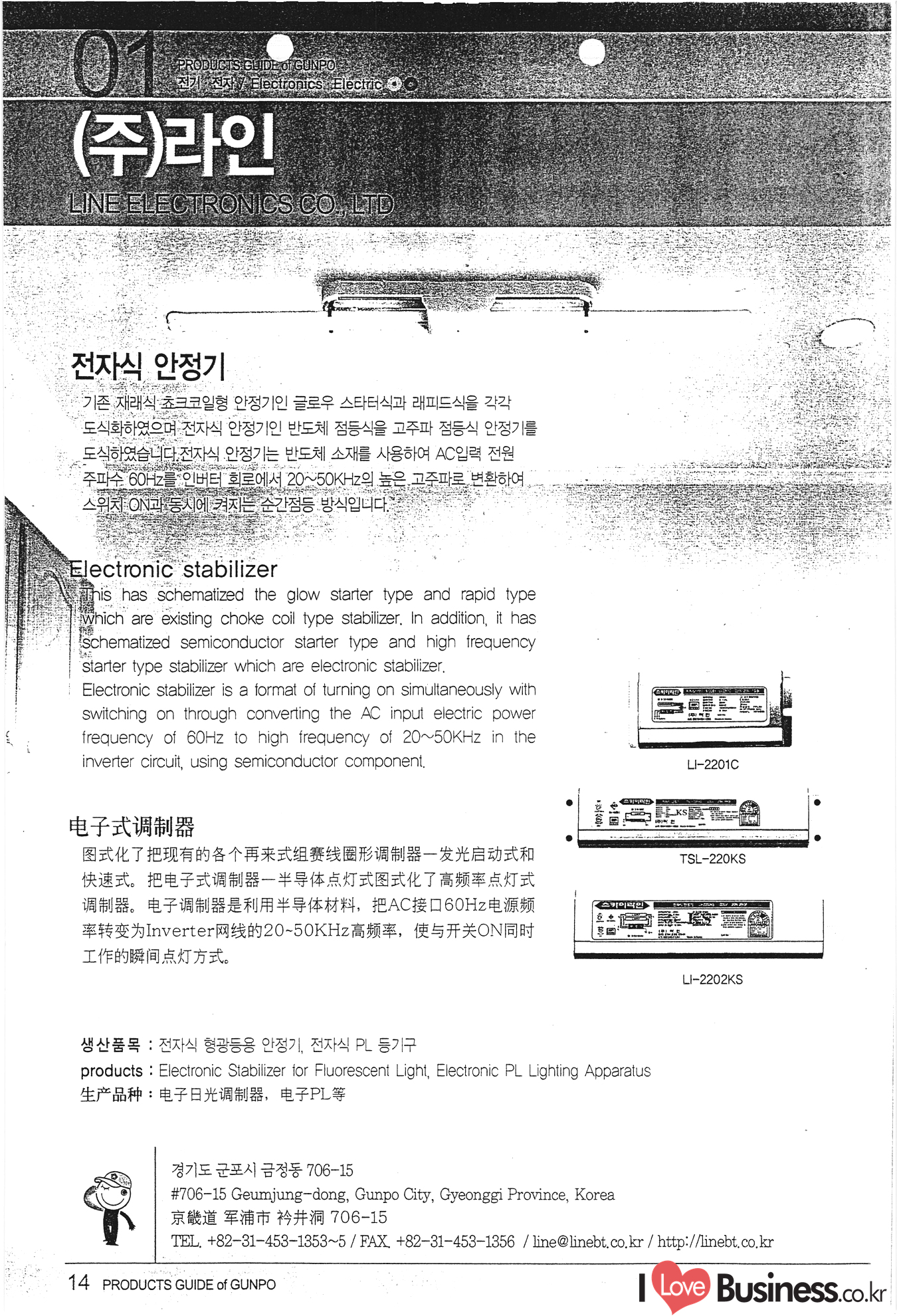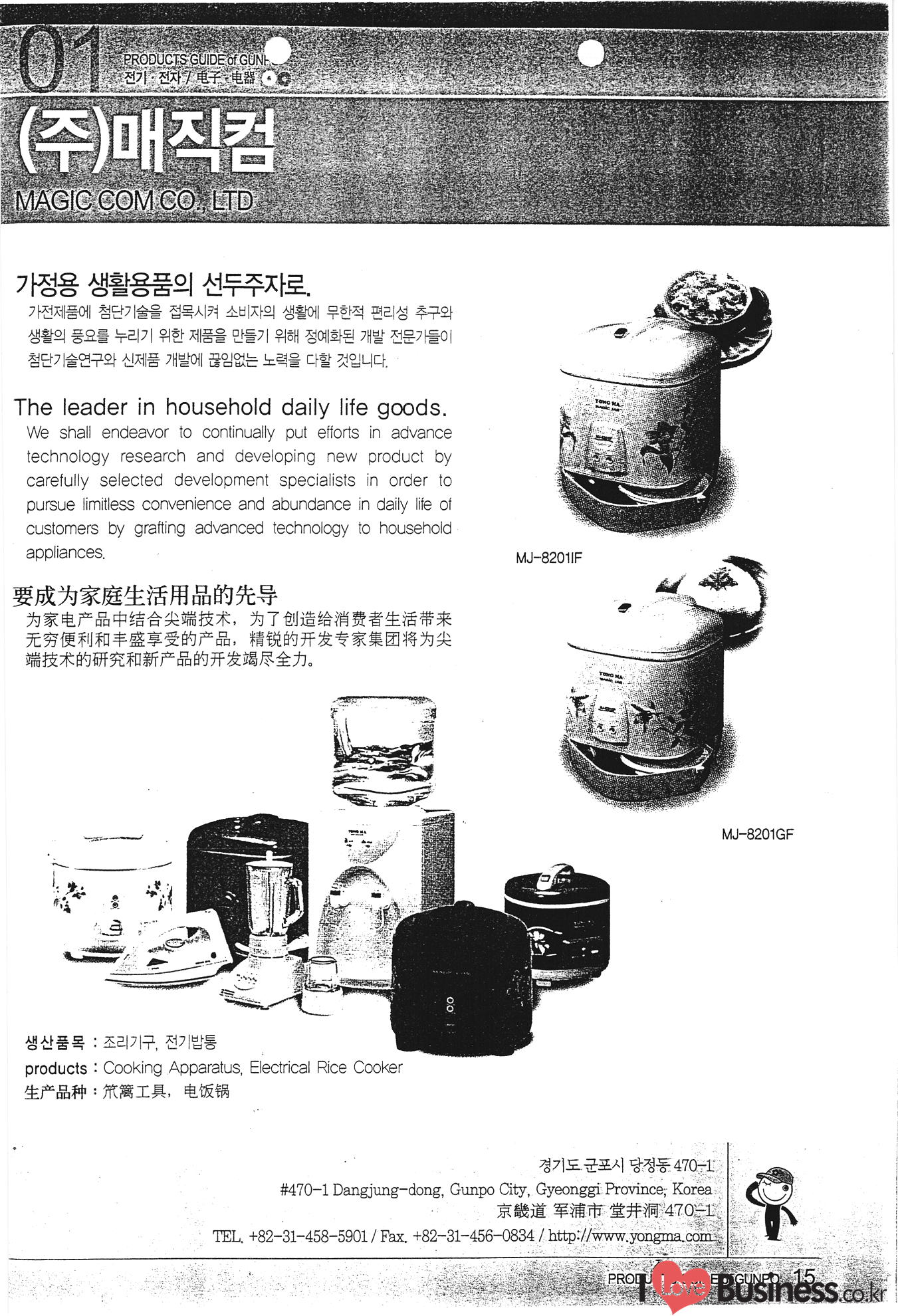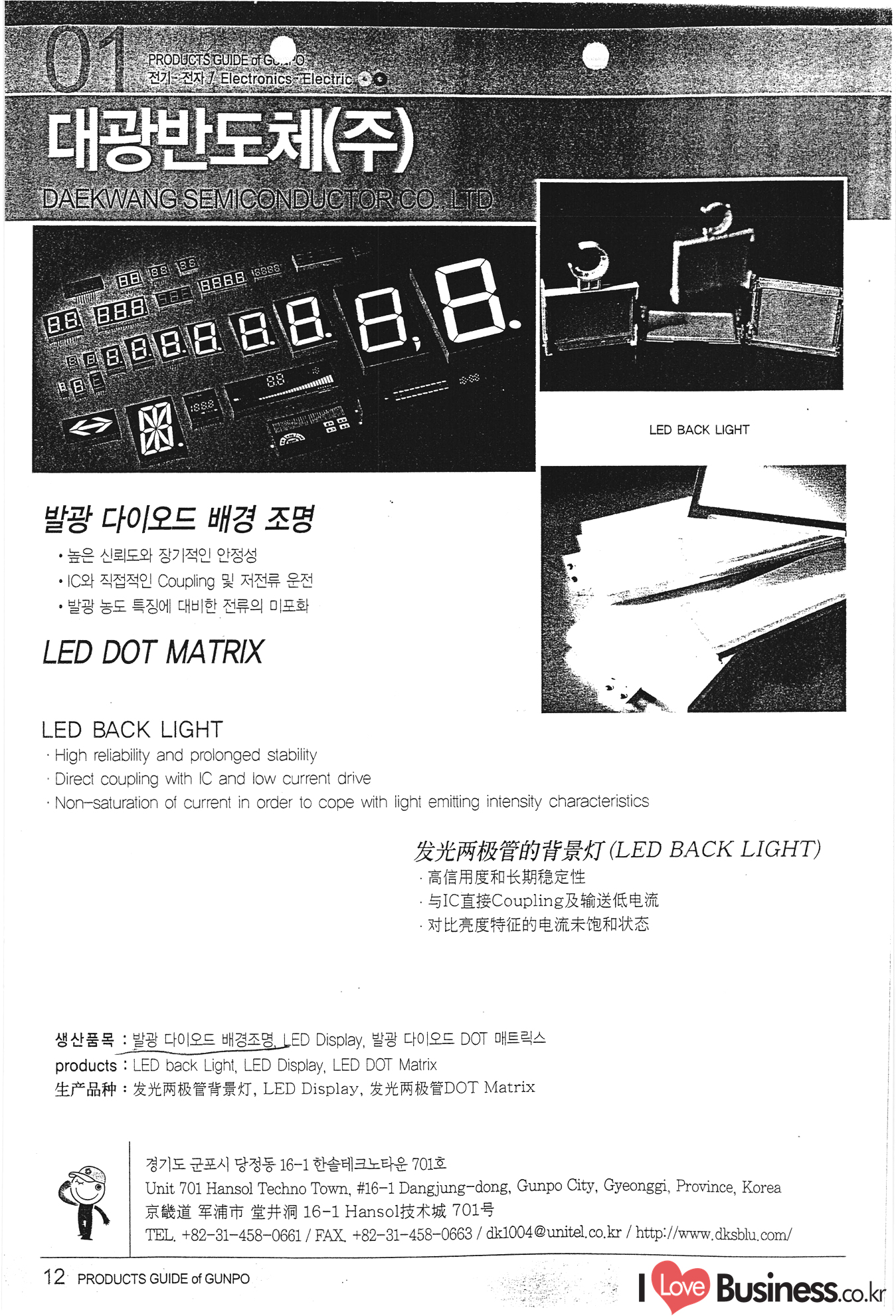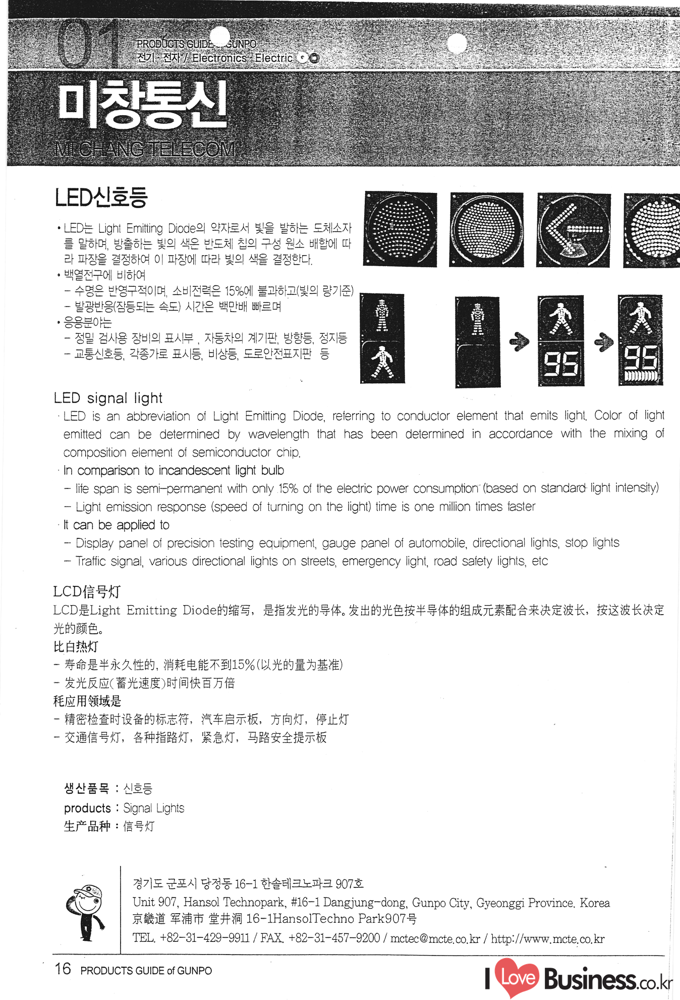 | 군포시 중소기업 제품 전기·전자 Electronics Electric/ 7. 012 CH DAEKWANG SEMICONDUCTOR CO. LTD 013 동원정밀 DONGWON 014 ()20 LINE ELECTRONICS CO., LTD 015 (4) MAGIC COM CO., LTD 016 미창통신 MI CHANG TELECOM 017 (4)012-BIONTECH CO., LTD 018 (*)0 VEHICLE CONTROL TECH CO., LTD품안내, |