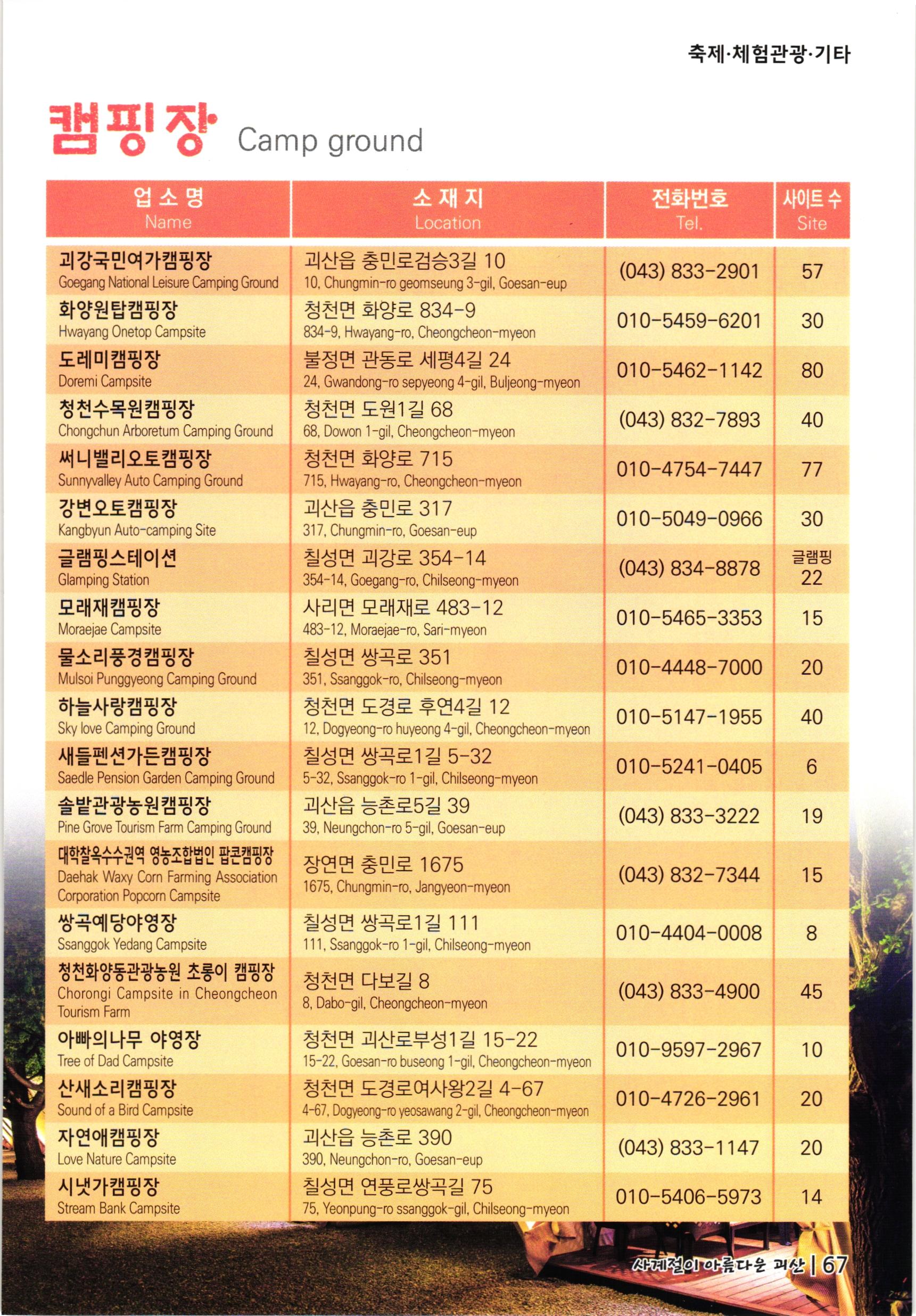 충청북도 괴산군 여행안내, 관광안내 : 2