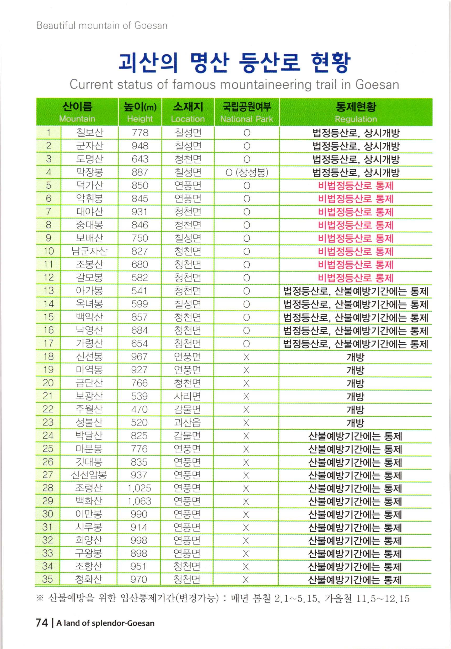 충청북도 괴산군 여행안내, 관광안내 : 3