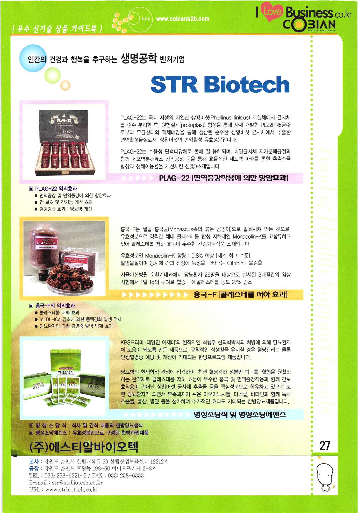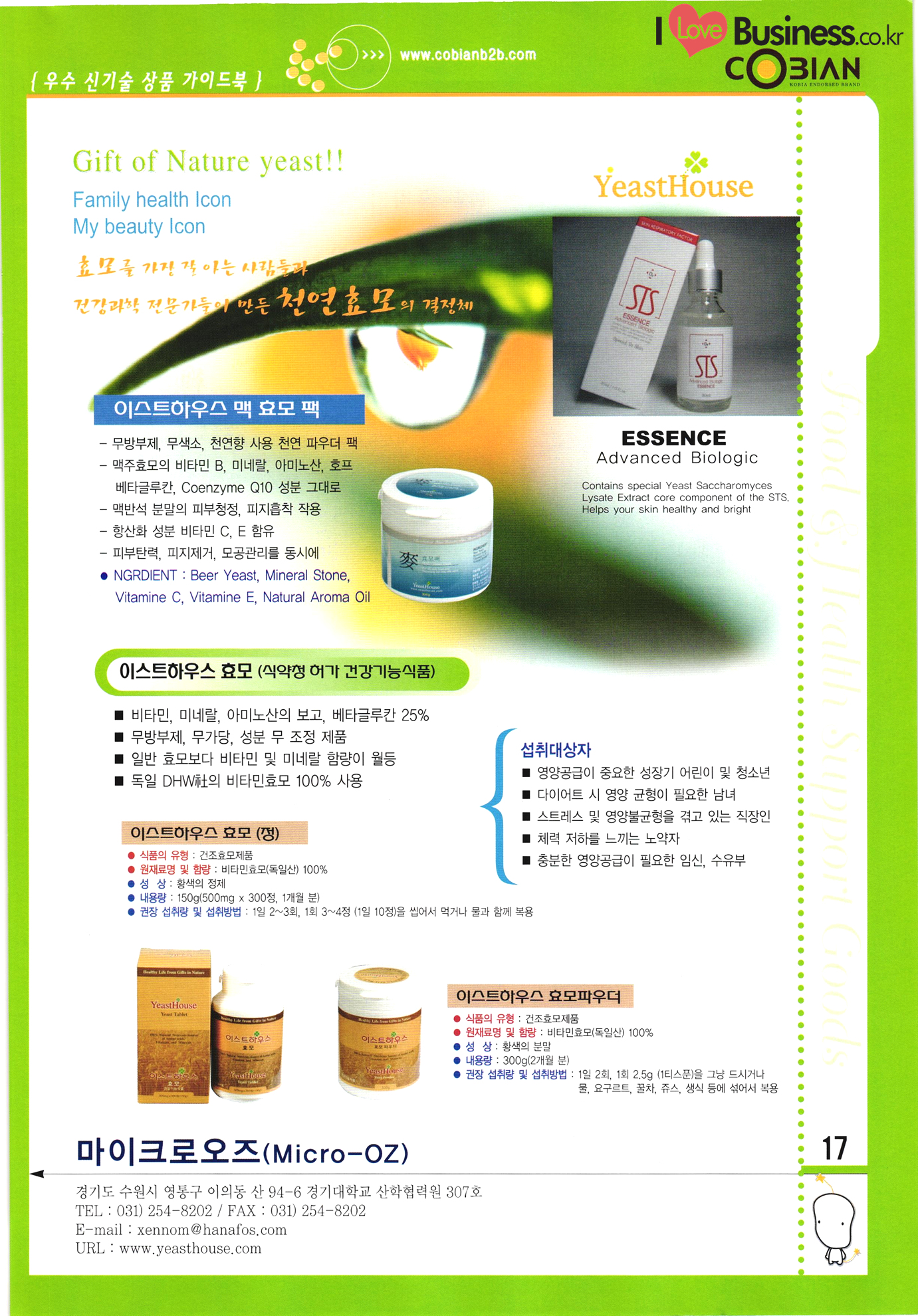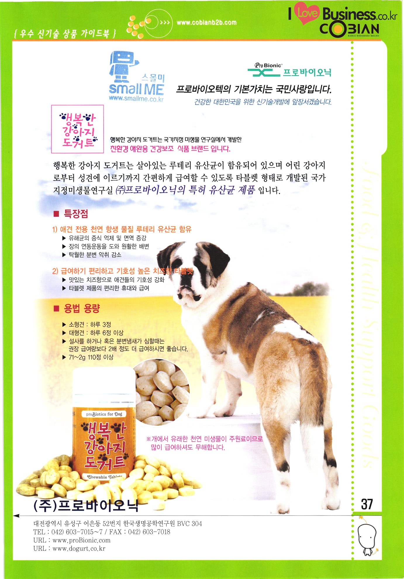 (주)유진종묘 - 유기농 전통육종법 재배기술, 웰빙청국장 자두사랑-자두와인, 자두잼, 자두비누 | (주)좋은씨앗 - | 쌈추 외 | ○ 진주식품 - 제주도 특산젓갈 | (주)태상인터내셔날 - ZEUS & City Farm (주)포젠 - | AVEAMR - 건강보조식품 | 푸드 사이언스 - 수복강령 | C (주)프로바이오닉 - 행복한 강아지 도거트 | ○ 프롬웰 - 프롬빈 청국장 외 | ○ (주)한경햄 - | 볼부르크 | ○ (주)한스바이오-홍국쌀 외 | ○ 황금농원(주)동과미인, 균사체지력 | O HDR(주) | 알칼로젠 알칼리환원수 관련제품 Love Business w.coblanb2b.com |