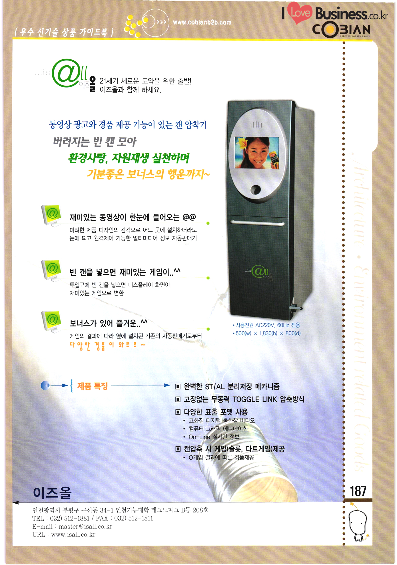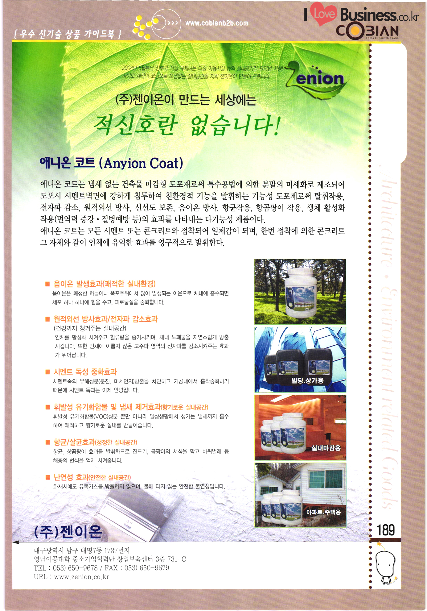 (주)유진종묘 - 유기농 전통육종법 재배기술, 웰빙청국장 자두사랑-자두와인, 자두잼, 자두비누 | (주)좋은씨앗 - | 쌈추 외 | ○ 진주식품 - 제주도 특산젓갈 | (주)태상인터내셔날 - ZEUS & City Farm (주)포젠 - | AVEAMR - 건강보조식품 | 푸드 사이언스 - 수복강령 | C (주)프로바이오닉 - 행복한 강아지 도거트 | ○ 프롬웰 - 프롬빈 청국장 외 | ○ (주)한경햄 - | 볼부르크 | ○ (주)한스바이오-홍국쌀 외 | ○ 황금농원(주)동과미인, 균사체지력 | O HDR(주) | 알칼로젠 알칼리환원수 관련제품 Love Business w.coblanb2b.com |