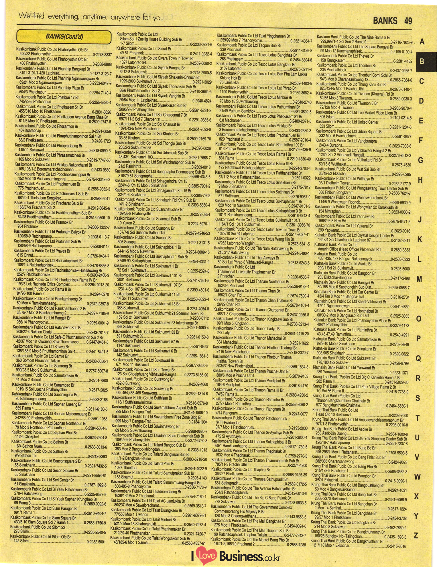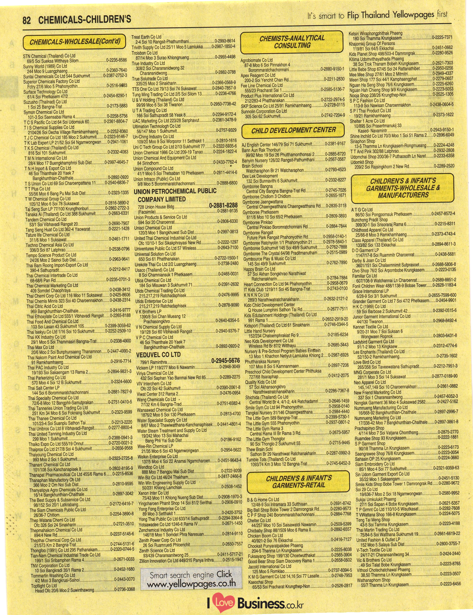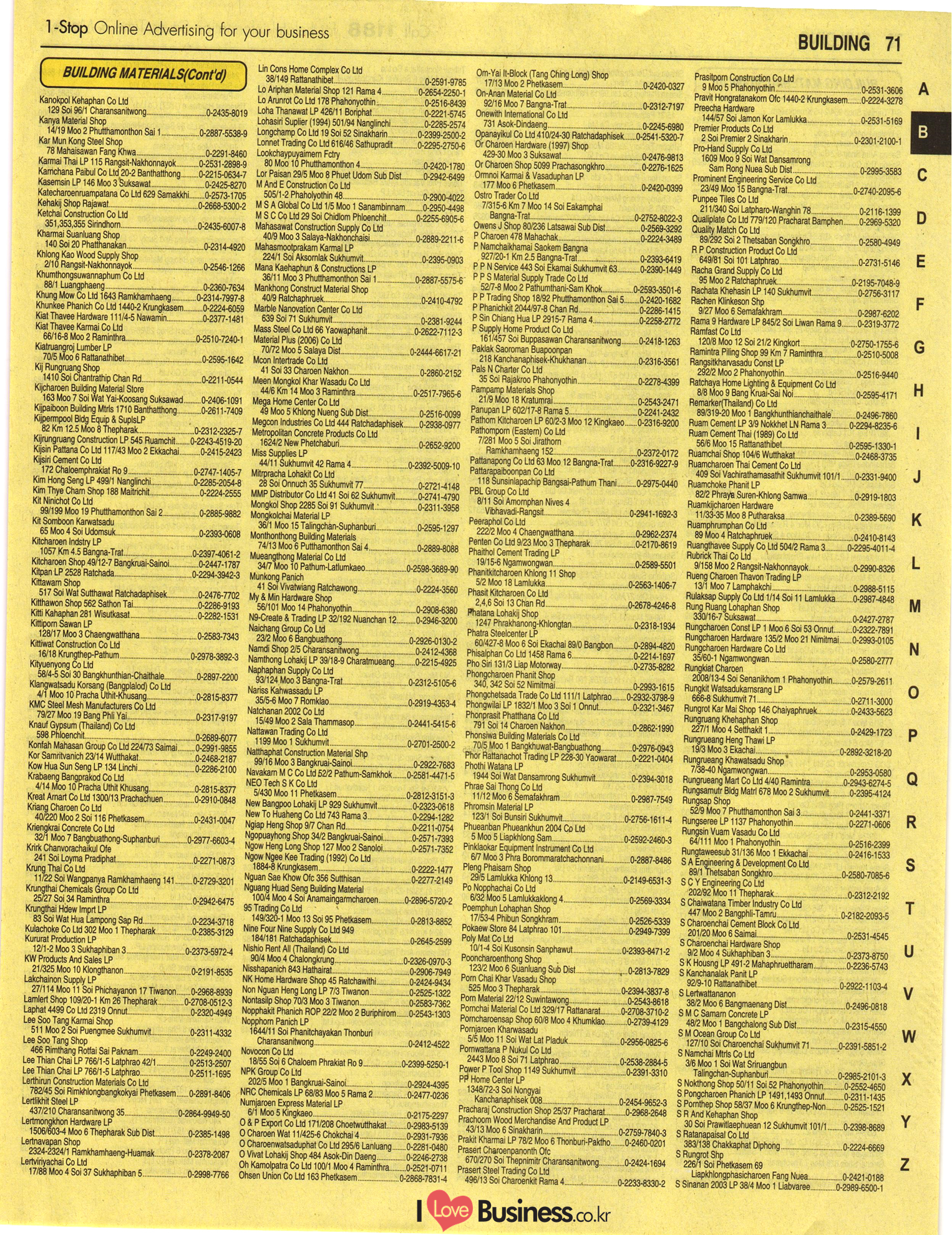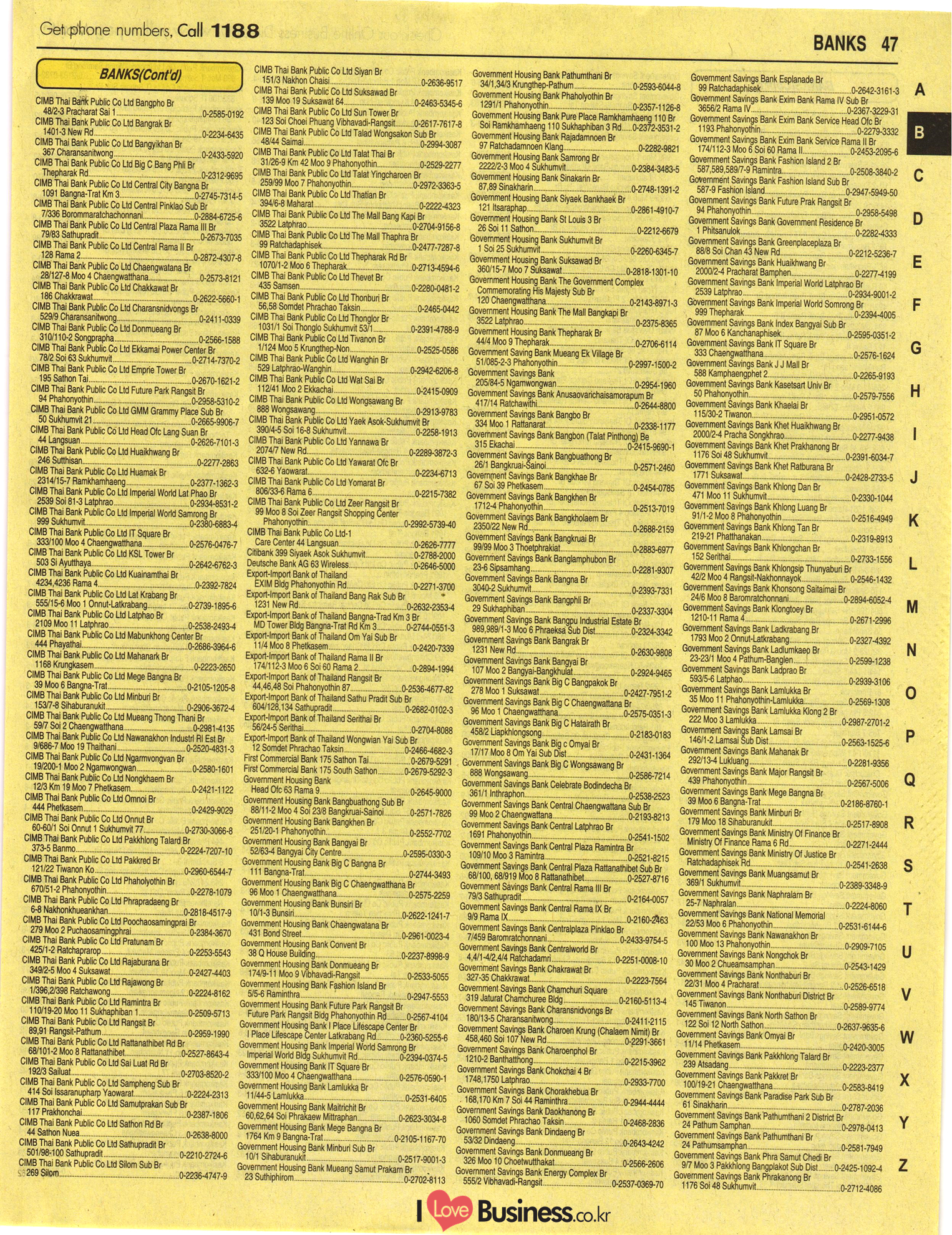 Emergency Number P. Al Message from the President P. A2 Contents P. A3 Police Stations P. A4 Fire Stations P. A5 Hospitals P. A6 Public Utilities P. A8 Telephone Assistance Services P. A9 Trade Related Agencies P. A10 Embassies & Consuls P. All Goverment & State Enterprise P. A12 Transportations P. A13 Express Way Map P. A14 Map of BTS, BRT, MRT, and Airport Link P. A15 Map of Thailand P. A16 Driving Distance Chart P. A17 Map of Bangkok P. A18 Online Products P. A20 Business Opportunity P. A23 Request form of adding information P. A24 Subject Index P. A26-A40 Using the Fast-Find Index P. A41 Fast-Find Index P. A42-A54 Classified Business Listing P. 1-327 หน้า สนเทศ |