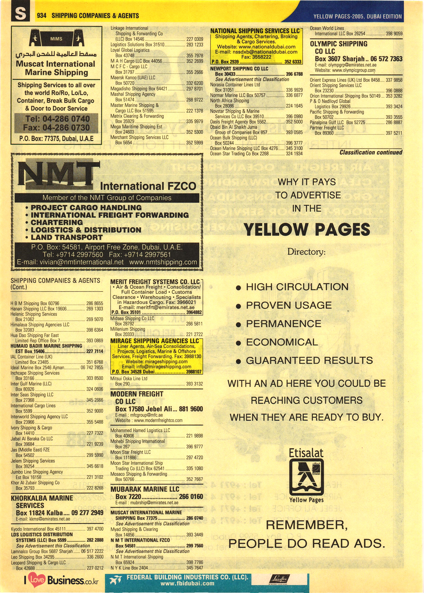 Etisalat, Etisalat, Yellow Pages, YELLOW PAGES 2005 DUBAI