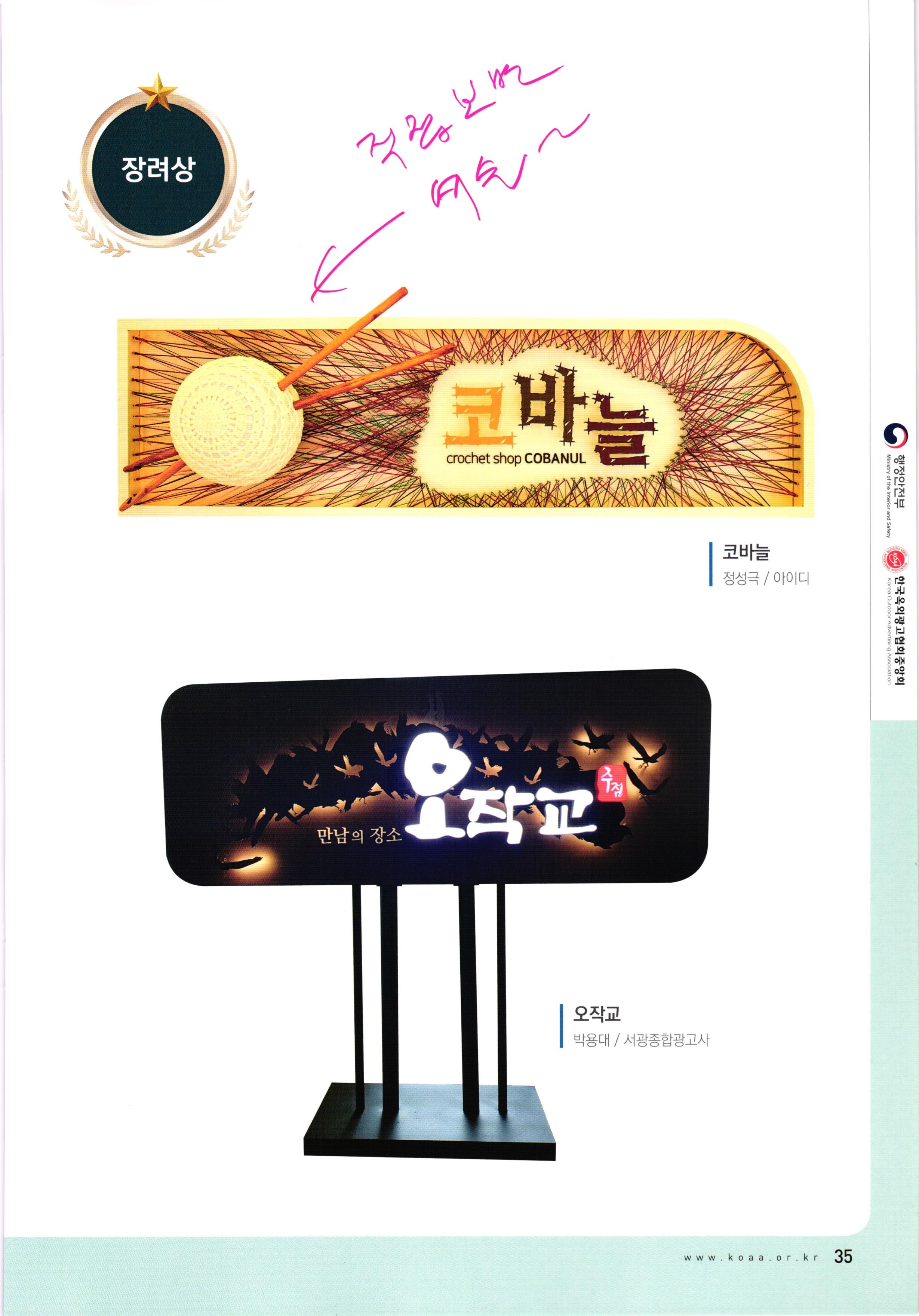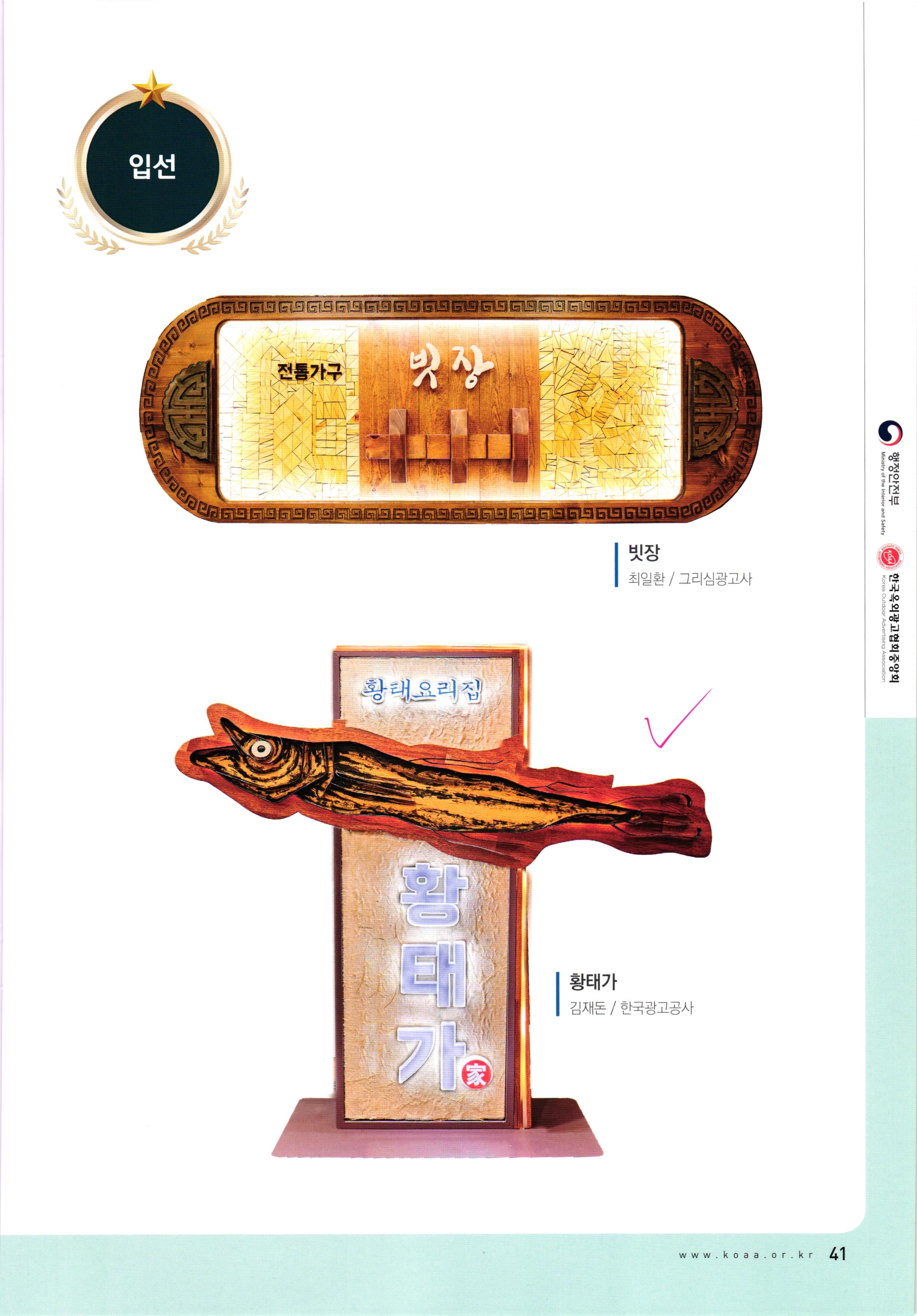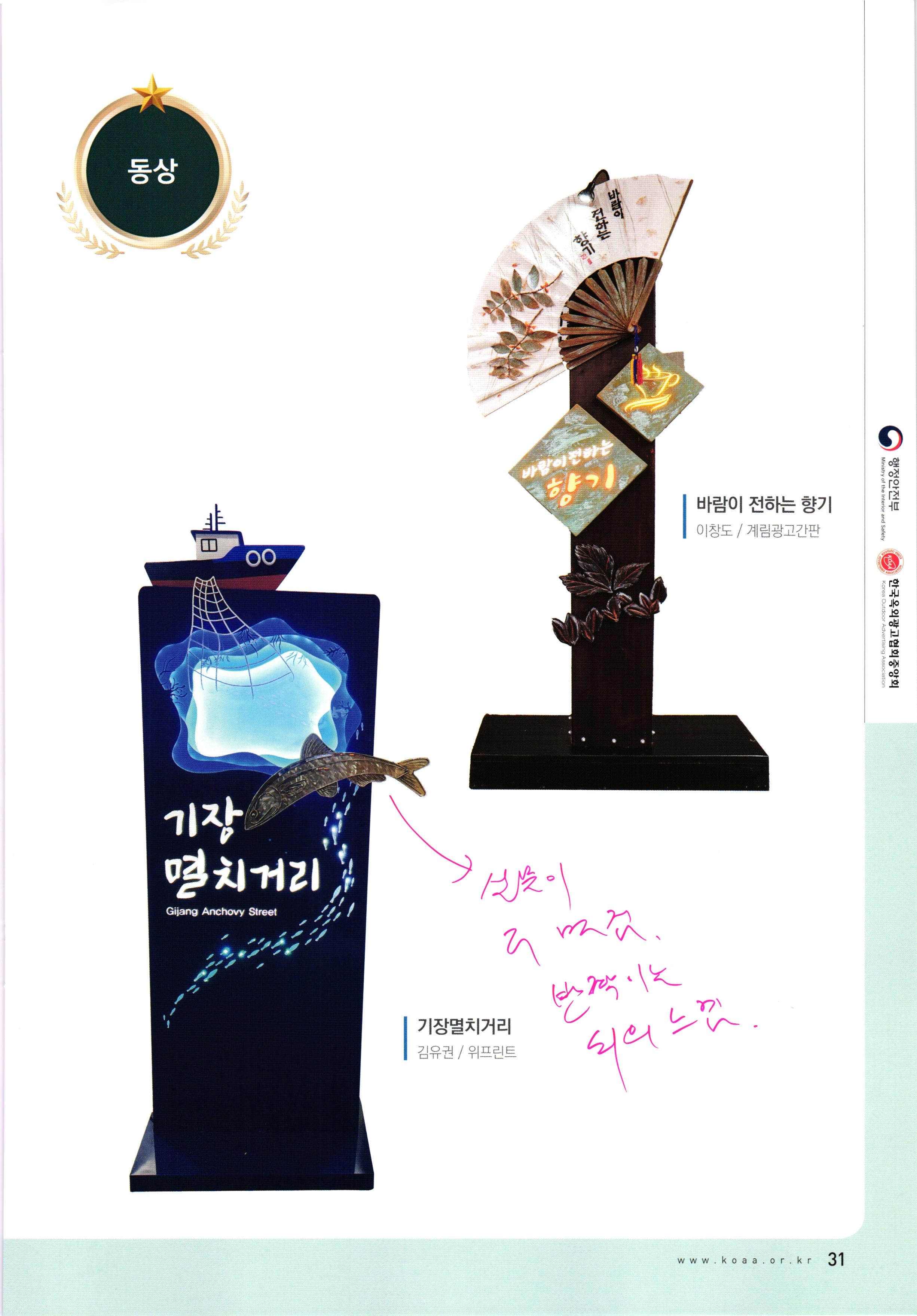 허병갑 대표 엄마밥 유승기업 사원 동해바다고등어한상 (유)자민애드산업 대표 바람이 전하는 향기 계림광고간판 동상 김유권 대표 기장멸치거리 워프린트 김경란 학생 수제 향수 공방 '담다' 한국폴리텍대학 진주캠퍼스 최강빈 학생 찾다를 찾다 두원공과대학교 최진현 대표 (주)금영기획 플라워스튜디오 들꽃이야기 이석우 대표 한반도 디아이콕스 김재봉 대표 어가 라인광고 김영일 대표 갓쓴사나이 하나애드 정성극 대표 코바늘 아이디 박용대 서광종합광고사 대표 오작교 김은주 학생 더 담다 한국폴리텍대학 진주캠퍼스 얼 김서진 학생 한국폴리텍대학 진주캠퍼스 이미지 학생 독립책방 바람소리 한국폴리텍대학 진주캠퍼스 김인기 대표 두리광고스카이 실과바늘 김택수 대표 지성광고사 날라리 농부 이수영 우경 대표 가락국수 명동광고사 대표 봄날(북카페 봄날) 김병환 연우기업 대표 형제 볼트 & 너트 대표 류(버들류)! 김서진 학생 얼 한국폴리텍대학 진주캠퍼스 이미지 학생 독립책방 바람소리 한국폴리텍대학 진주캠퍼스 김인기 대표 실과바늘 두리광고스카이 김택수 대표 날라리 농부 지성광고사 이수영 대표 가락국수 우경 심상복 대표 명동광고사 봄날(북카페 봄날) 김병환 대표 연우기업 형제 볼트 & 너트. 장광우 대표 류(버들류) | 선과색 김주환 대표 약속 라인광고 최일환 대표 그리심광고사 빗장 김재돈 대표 황태가 한국광고공사 '오주희 학생 온정담아 두원공과대학교 박수민 학생 호두행성 영남대학교 김예진 학생 플라워샵 일랑일랑' 한국폴리텍대학 광주캠퍼스 정현미 학생 떡가마 창원대학교 조형민 두원공과대학교 학생 신의 한수 서동영 학생 두원공과대학교 푸르름 사이의 바다 총 50점 |
