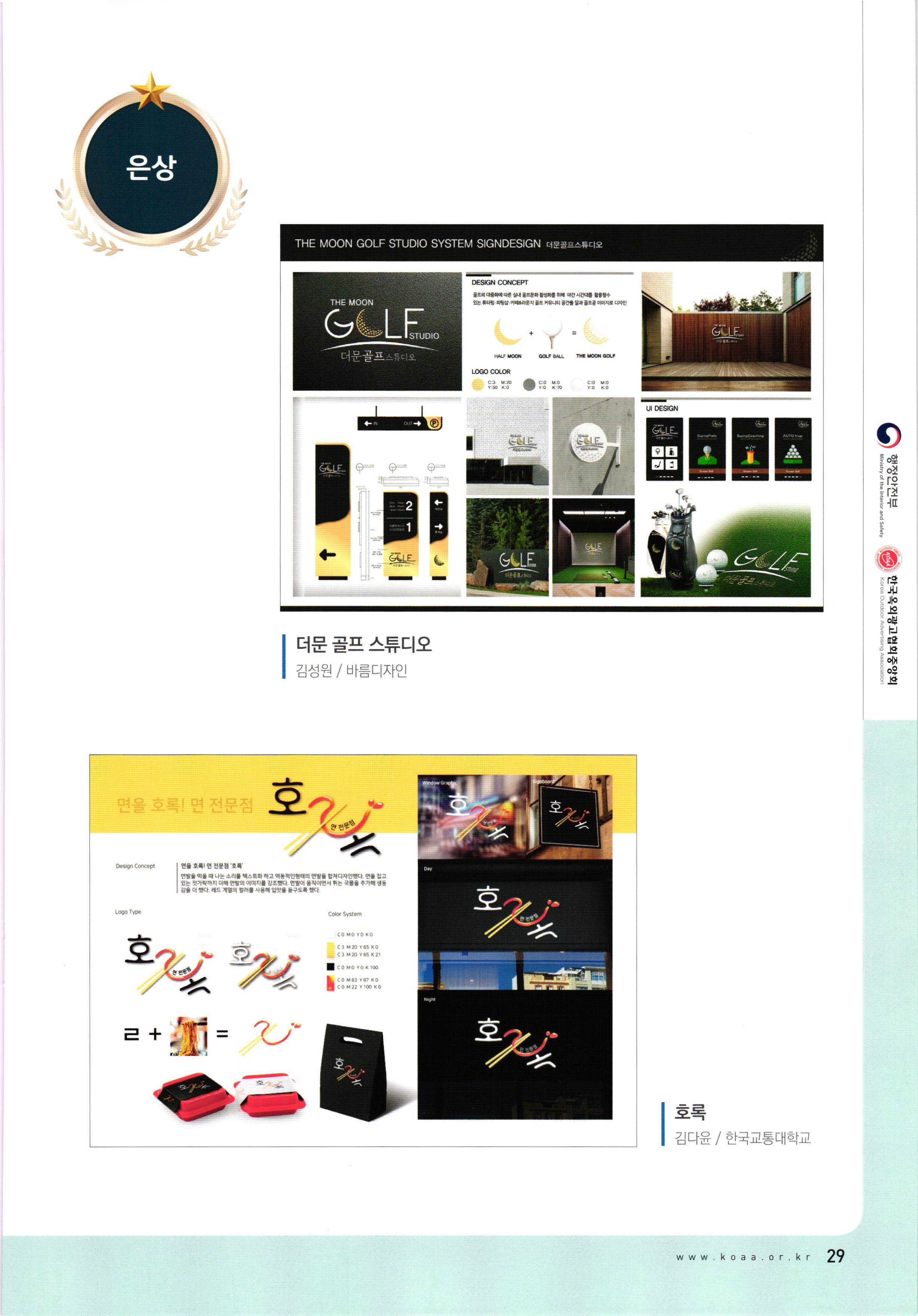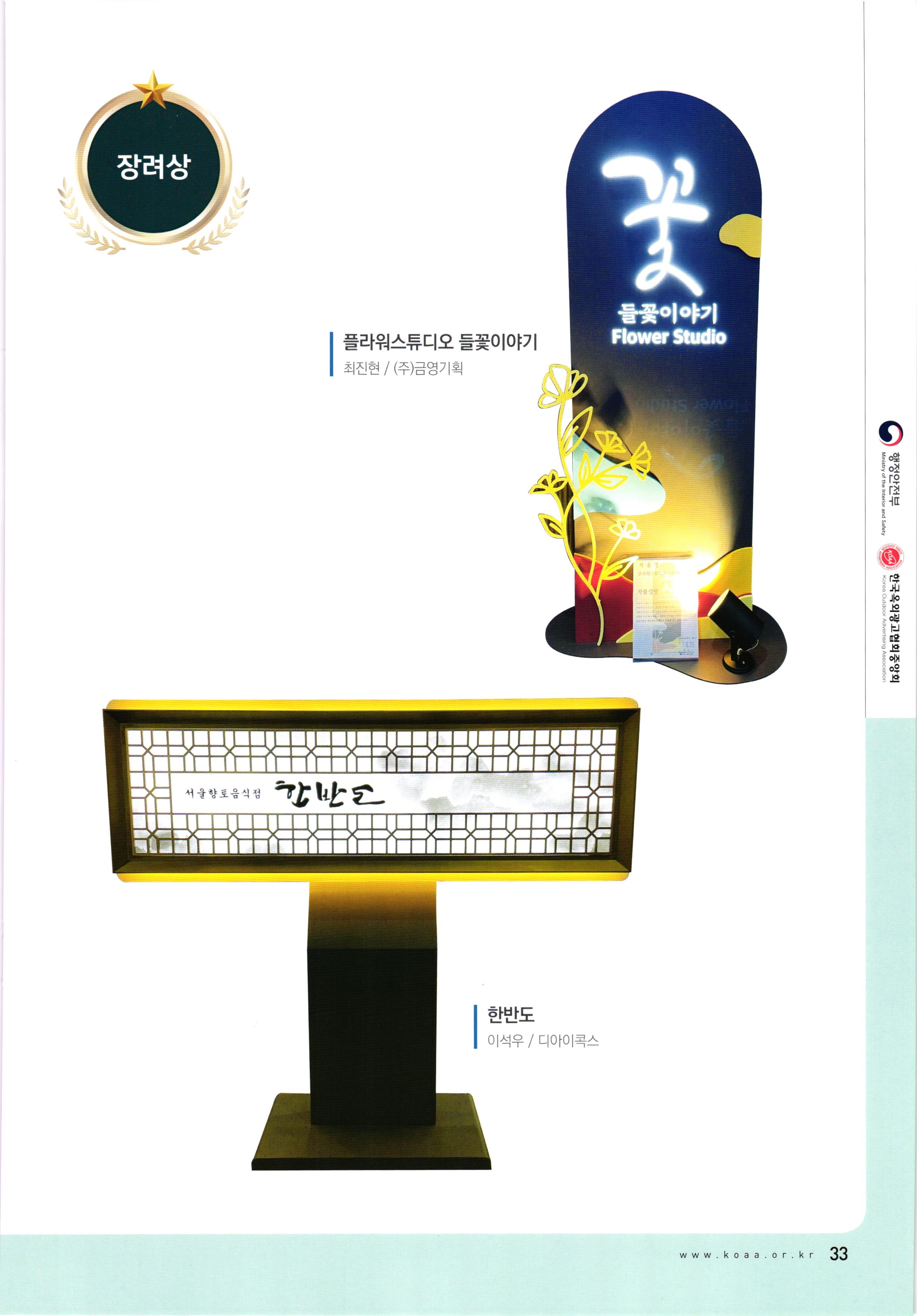 | 포상종류 수상자 성명 직급·계급 작품명 소속 아트라인 대통령상 대표 세월 국무총리상 박경필 직원 반딧불이 서재 비앤비광고사 한민국 대상 단 이종연 대표 우리글꼴연구소 빛 아이디어광고사 유원동 대표 소소루 날으는곰 박채림 대리 느루 인테크코리아 행안부장관상 김연희 대표 금모올요 한국컷팅 손현지 학생 한국의 맛을 담은 한국정원 두원공과대학교 정시윤 학생 한국 전통음식 떡갈비 전문점 동명대학교 김혁 대표 장수 한의원 가온광고기획 정동순 대표 미경사 김주석 대표 터전애드 금상 배정애 직원 꿈틀로 송정광고 박성하 대리 한글도시 울산중구 선화기업 홍인기 학생 나른한지 두원공과대학교 박명식 대표 출조 낚시왕 명진광고사 권인준 대표 대목장 개미광고 김동민 대표 조선드라이크리닝 다올디자인 은상 최기송 대표 해보는대로 송정광고 김성원 디자이너 더운 골프 스튜디오 바름디자인 김다윤 학생 한국교통대학교 |