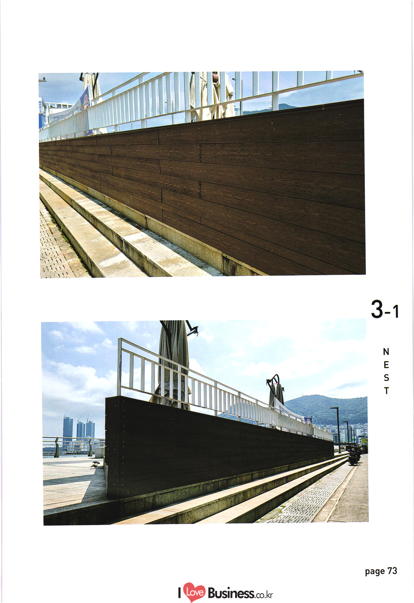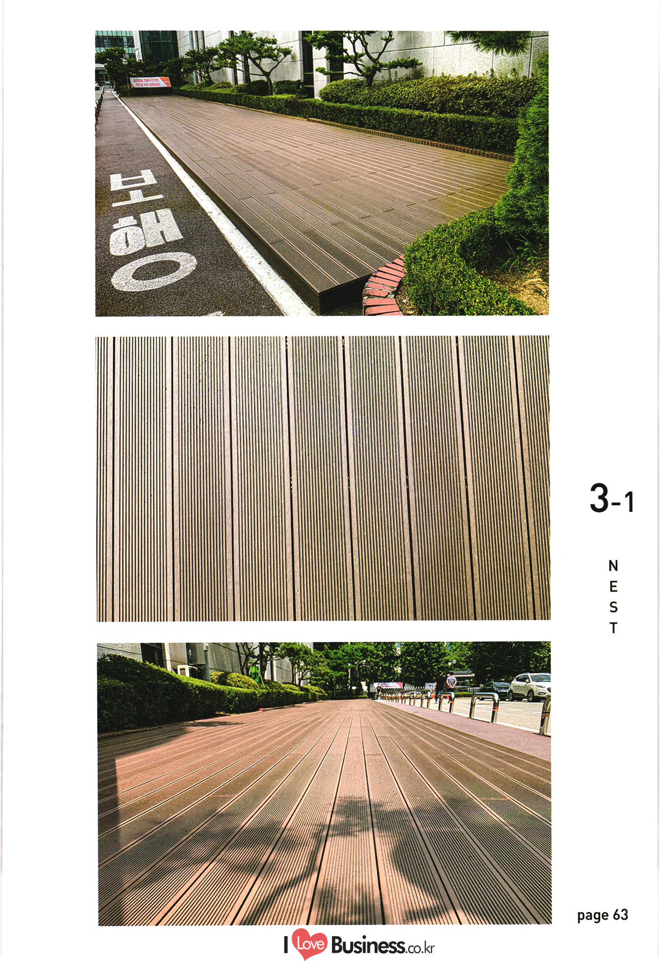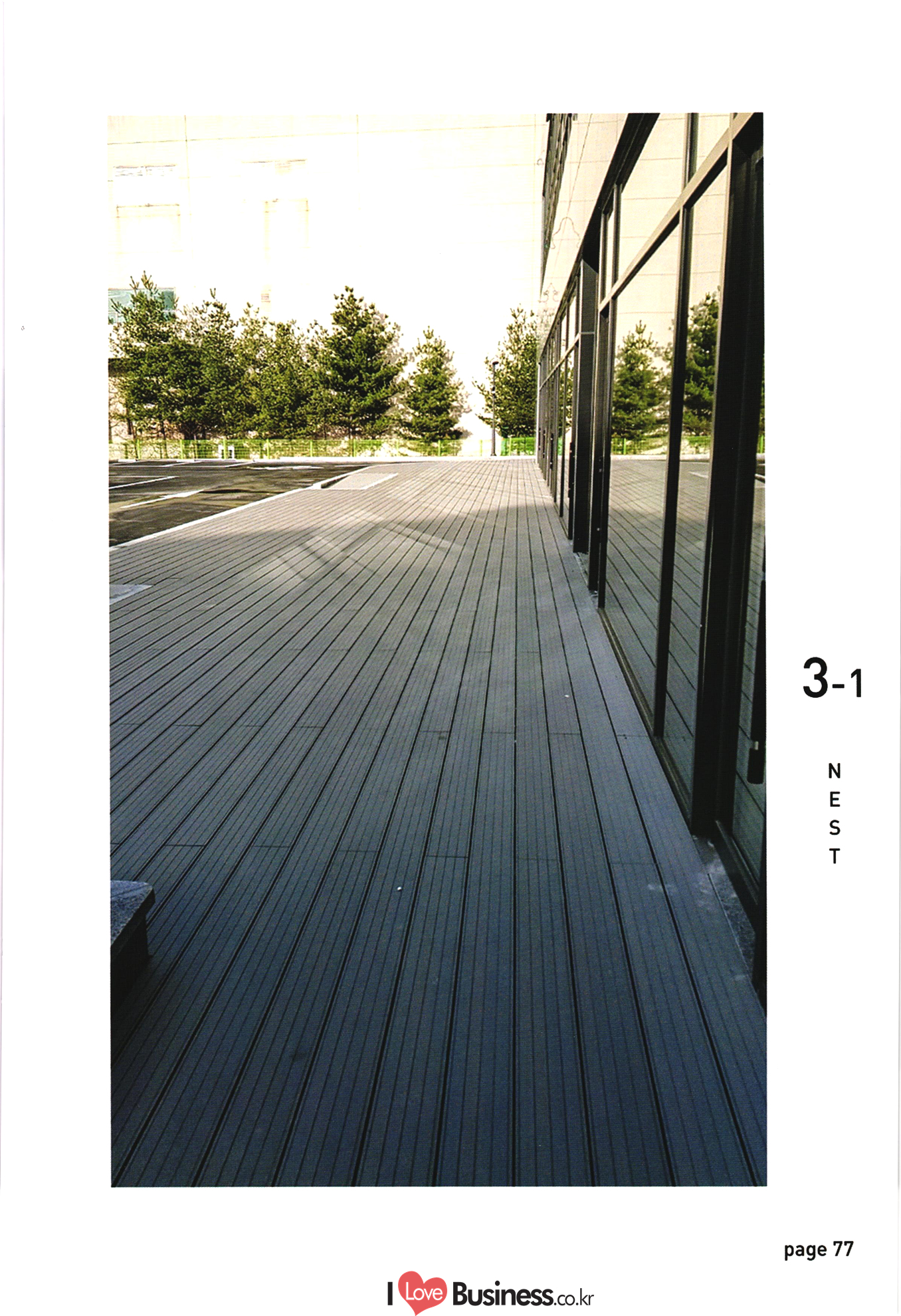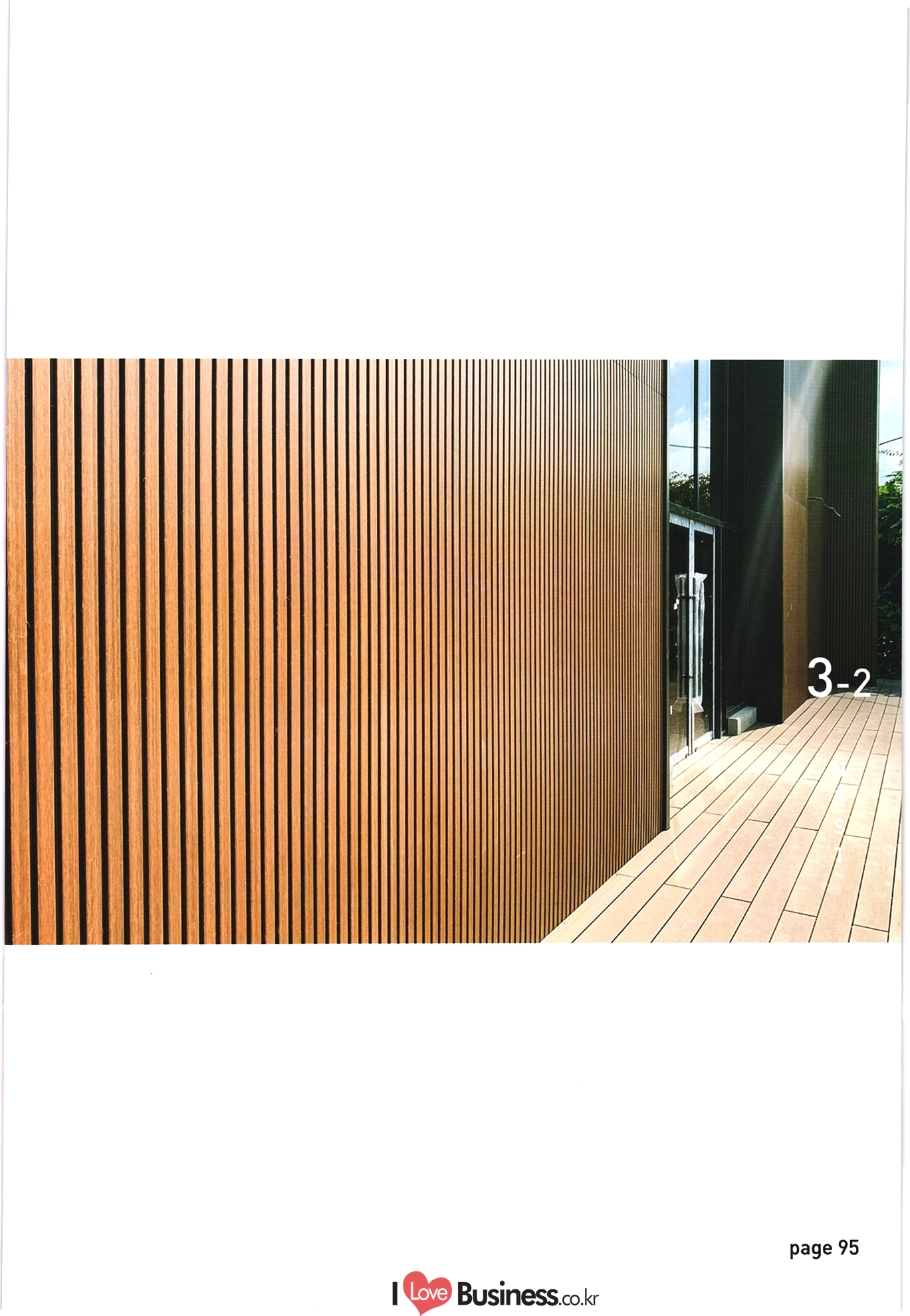 가압규화처리 개질목재 오르가노우드 P42 규화처리 개질목재 제품들 P44 오르가노우드 규화제 P46 KD 매직픽스 데크 시스템 P46 KD 골드우드 압축탄화목 데크 P50 밀보드 외부용 데크 52 KD 아트월 P56 KD상업용 마루재 죽향 사군자) P58 KD 카본우드 압축목재 플로어링 P59 충격흡수 마루공법 - 인소린 마루시스템 P59 조경시설물 해피움막 - 우드세움 P60 조경시설물 - 블라인드 펜스 P62 타지아나 원목 방화현관문 P64 홀쯔 난연제 홀쯔 프로프 P68 독일 로바 페인트 P69 SOO:X 규화제 P70 SiOOX 규화제 수종별 테스트 P74 |