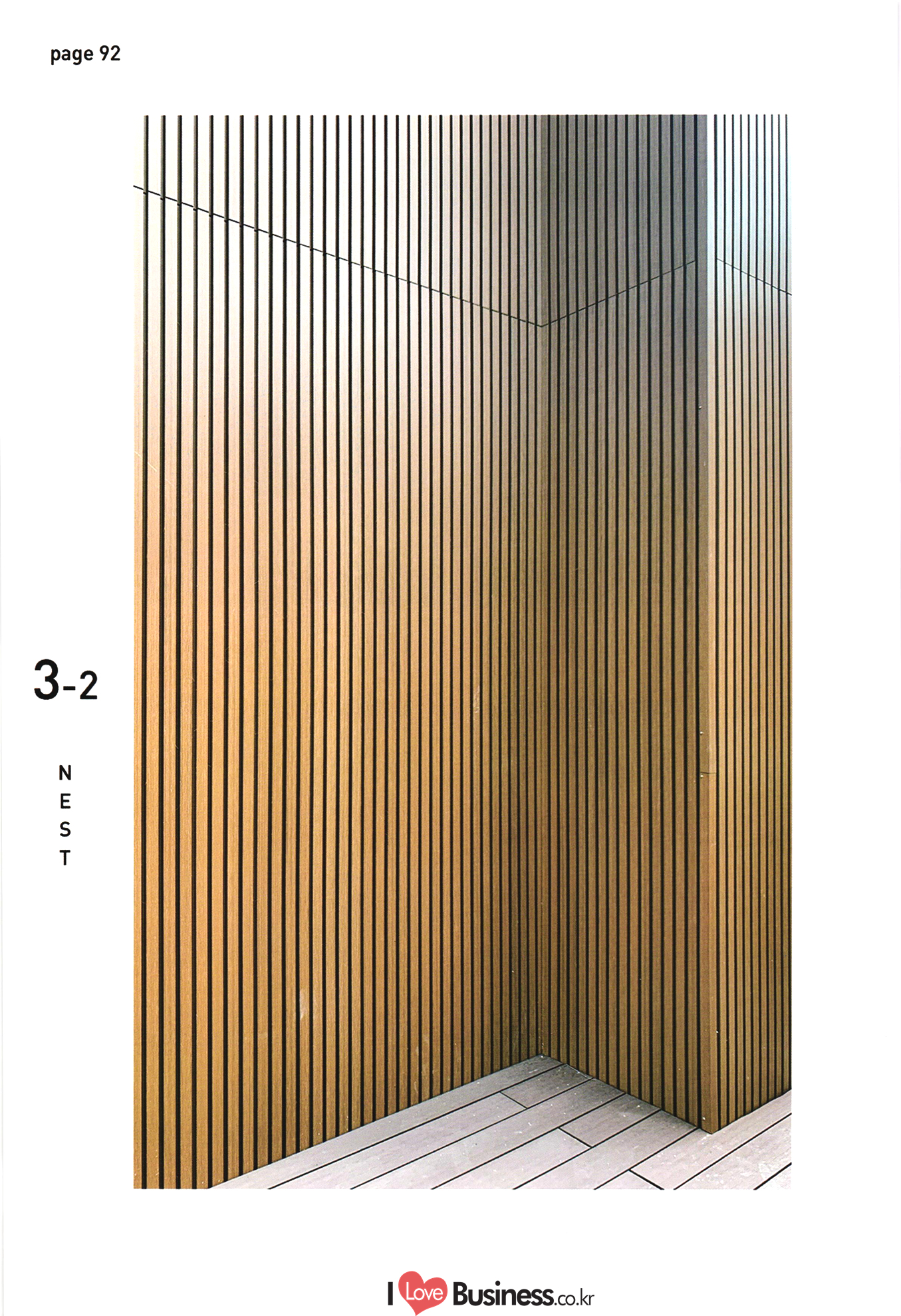 | KD 사운드메이트 소개 PO4 어쿠스틱 찬넬리브(방음벽) 시스템 P06 어쿠스틱 클릭루버 시스템 P08 어쿠스틱 보드패널 P12 어쿠스틱 디퓨저 & 디퓨징루버 P18 그랜드 컴비네이션 찬넬리브 시스템 P20 어쿠스틱 코너 베이스트랩 P21 탄화목이란? P22 케이디리브 탄화목 찬넬사이딩 P24 KD 프라임우드 소개 P28 KD 프라임우드 사이딩 P30 KD 프라임우드 루버 P32 KD 실크우드 루버 P36 KD 에버히노끼 루버 P38 KD 에버히노끼 조습보드 P39 규화처리 개질목재란? P40 |