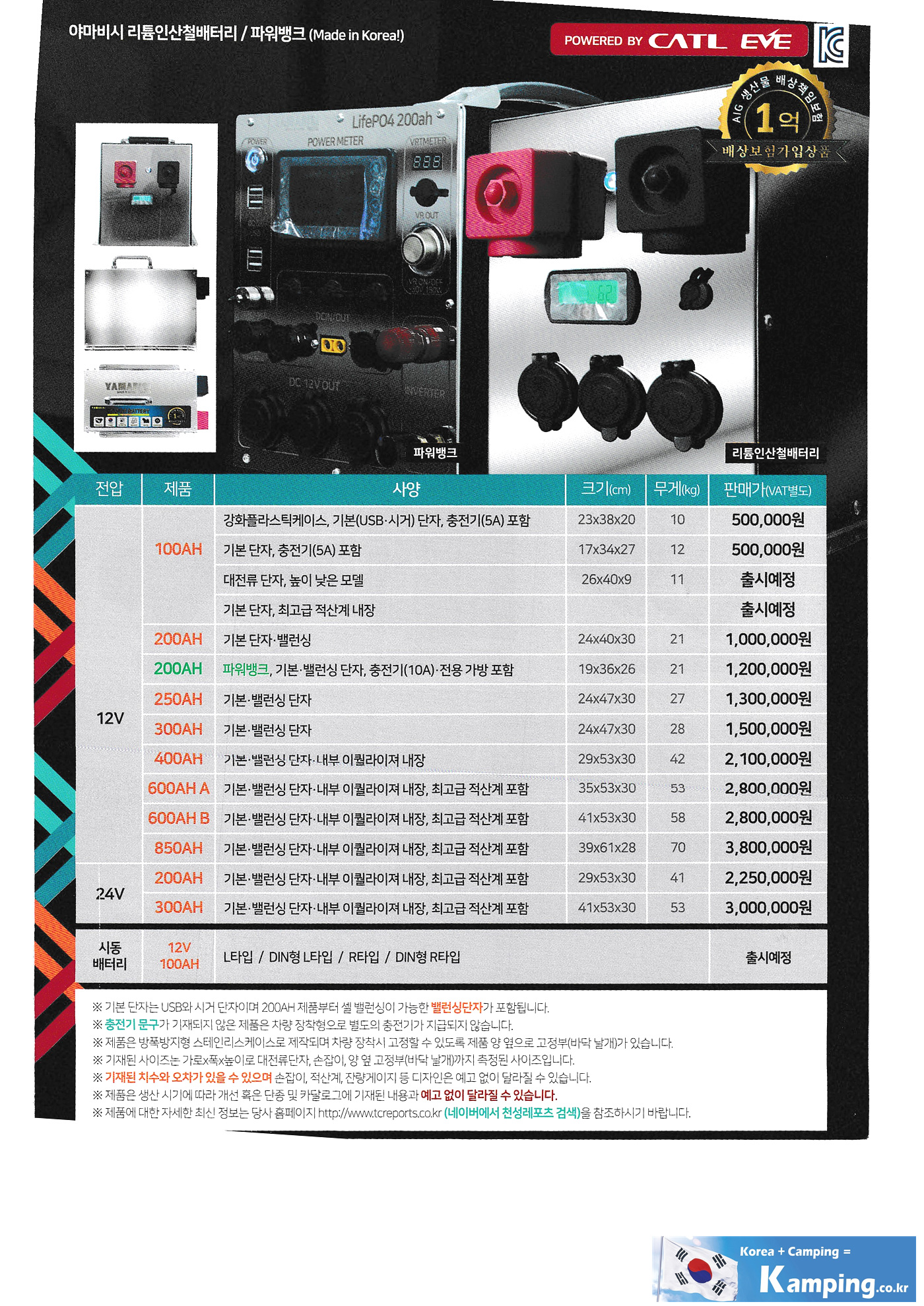 야마비시 배터리 가격표,