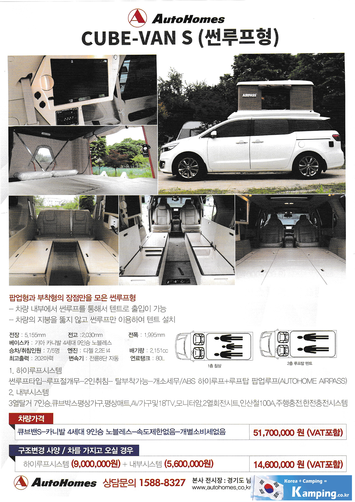 (주)비전오토의 오토홈, 트랜스밴11, 가격표,