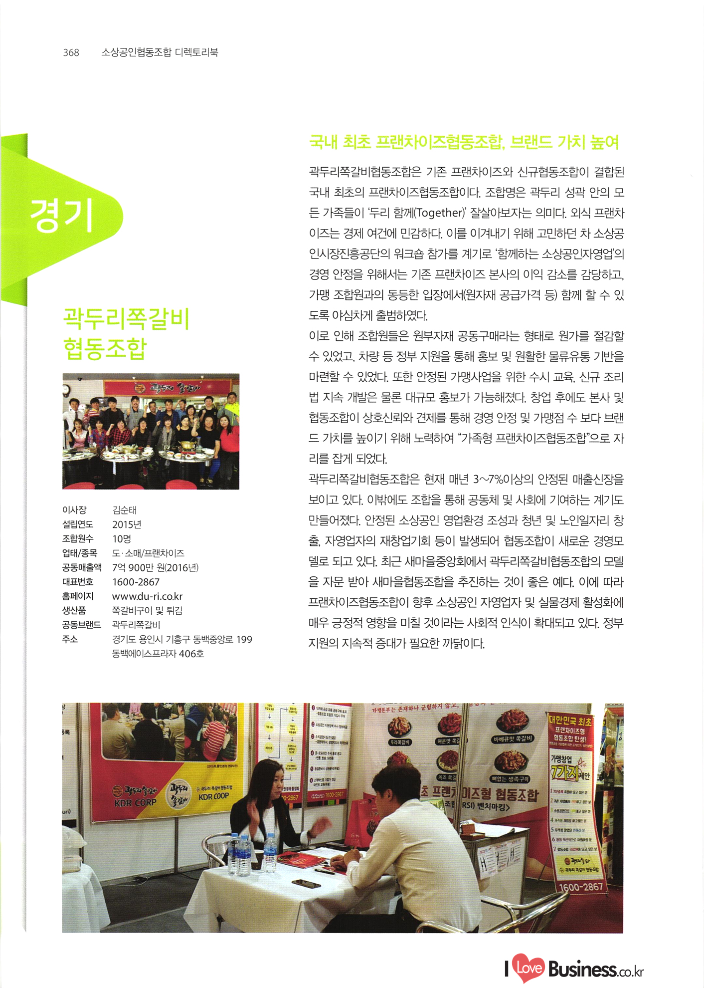 건어물생산유통산업협동조합 과천상인협동조합 곽두리쪽갈비협동조합 기드온협동조합 꿈틀협동조합 대한민국세탁1번가협동조합 더고운피부협동조합 더존사진협동조합 도심형팜파티협동조합 드림하우징협동조합 디스플레이옥외간판협동조합 로컬푸드지킴이협동조합 바우앤유협동조합 수목원가는길협동조합 숲이있는도시농부협동조합 시흥시서적협동조합 아트니온 문화예술협동조합 안산광고물협동조합 양평유기농아로니아협동조합 에너지제로협동조합