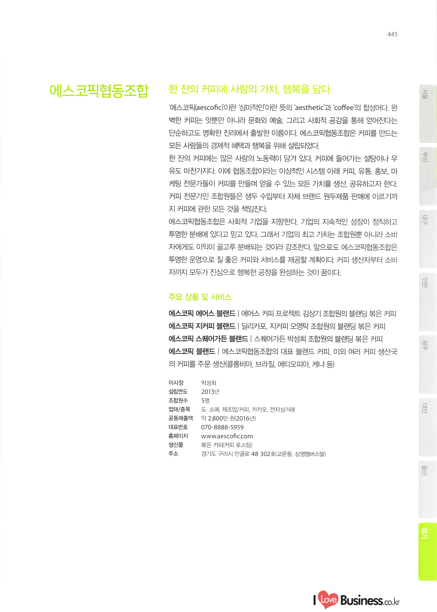 | 소상공인협동조합 디렉토리북 6 : SMALL ENTERPRISE COOPERATIVE Directory Book (0) | 2022.01.07 |