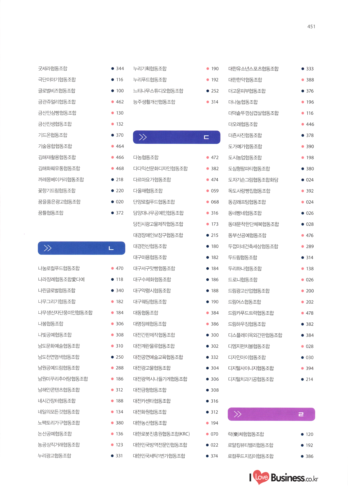 대전간판제작협동조합 대전계란물류협동조합 대전광고물협동조합 대전광역시나들가게협동조합 대전금형협동조합 대전카센타협동조합 대전화원협동조합 두드림협동조합 명랑시대외식청년창업협동조합 청담안경협동조합 충남대전인쇄포장협동조합 커스텀페인팅협동조합 케이티씨태권도아카데미협동조합 테크노자동차정비협동조합 협동조합좋은문화 건설기계사업자협동조합 누리광고협동조합 대전공연예술교육협동조합 대한유소년스포츠협동조합 전국골프존사업자협동조합