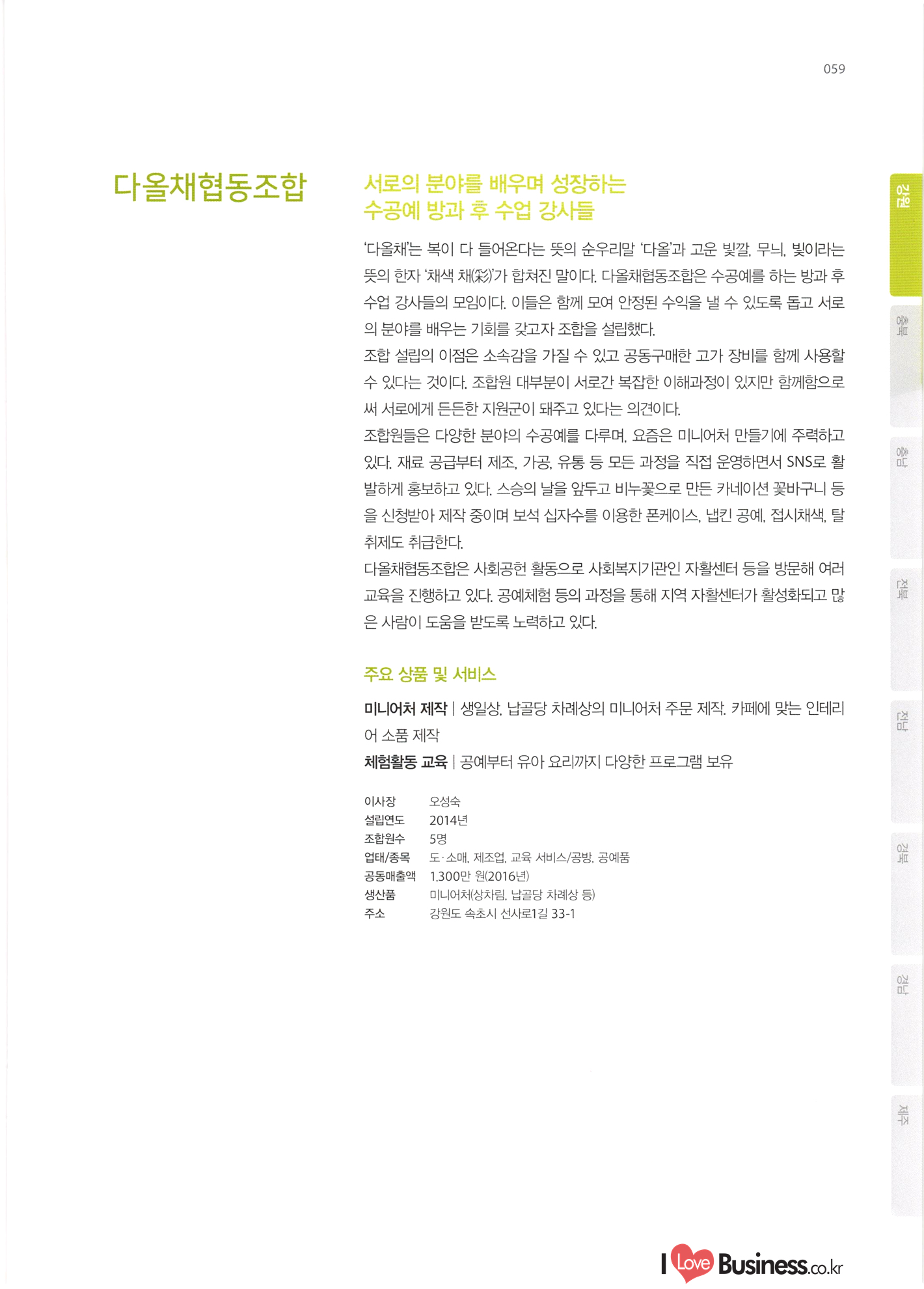 | 소상공인협동조합 디렉토리북 8 : SMALL ENTERPRISE COOPERATIVE Directory Book (0) | 2022.01.07 |