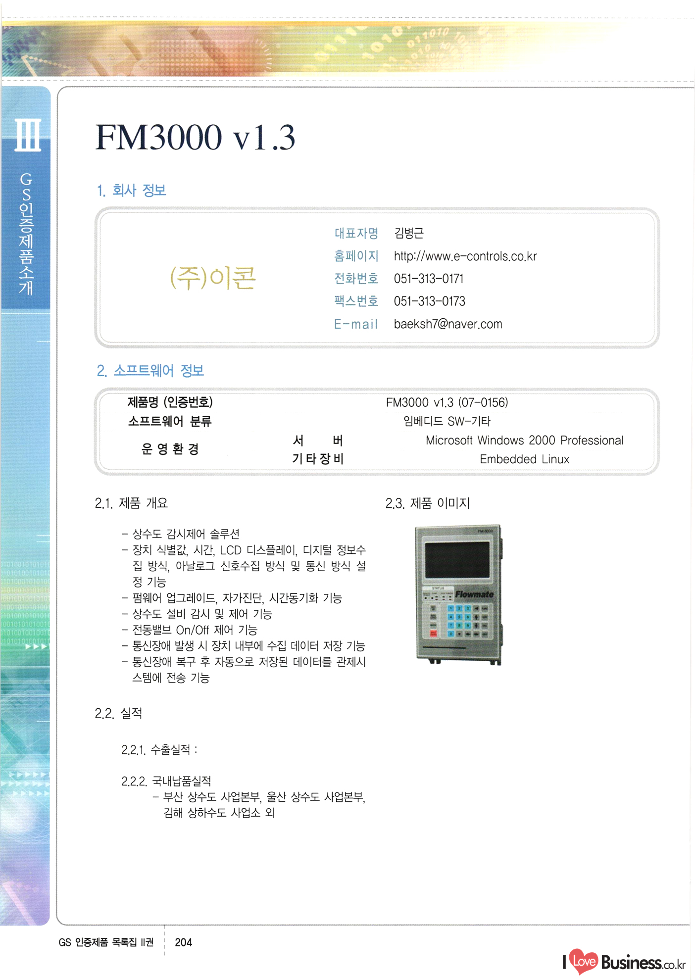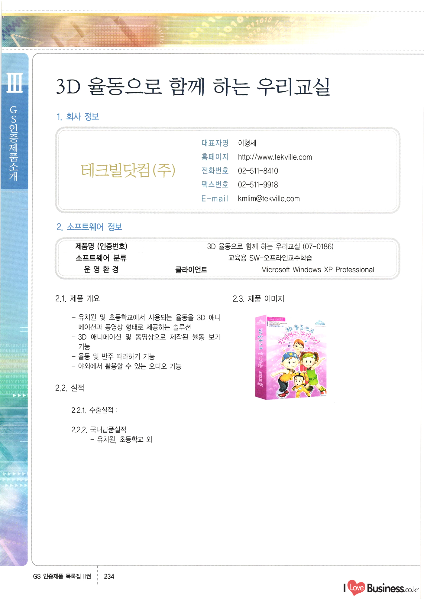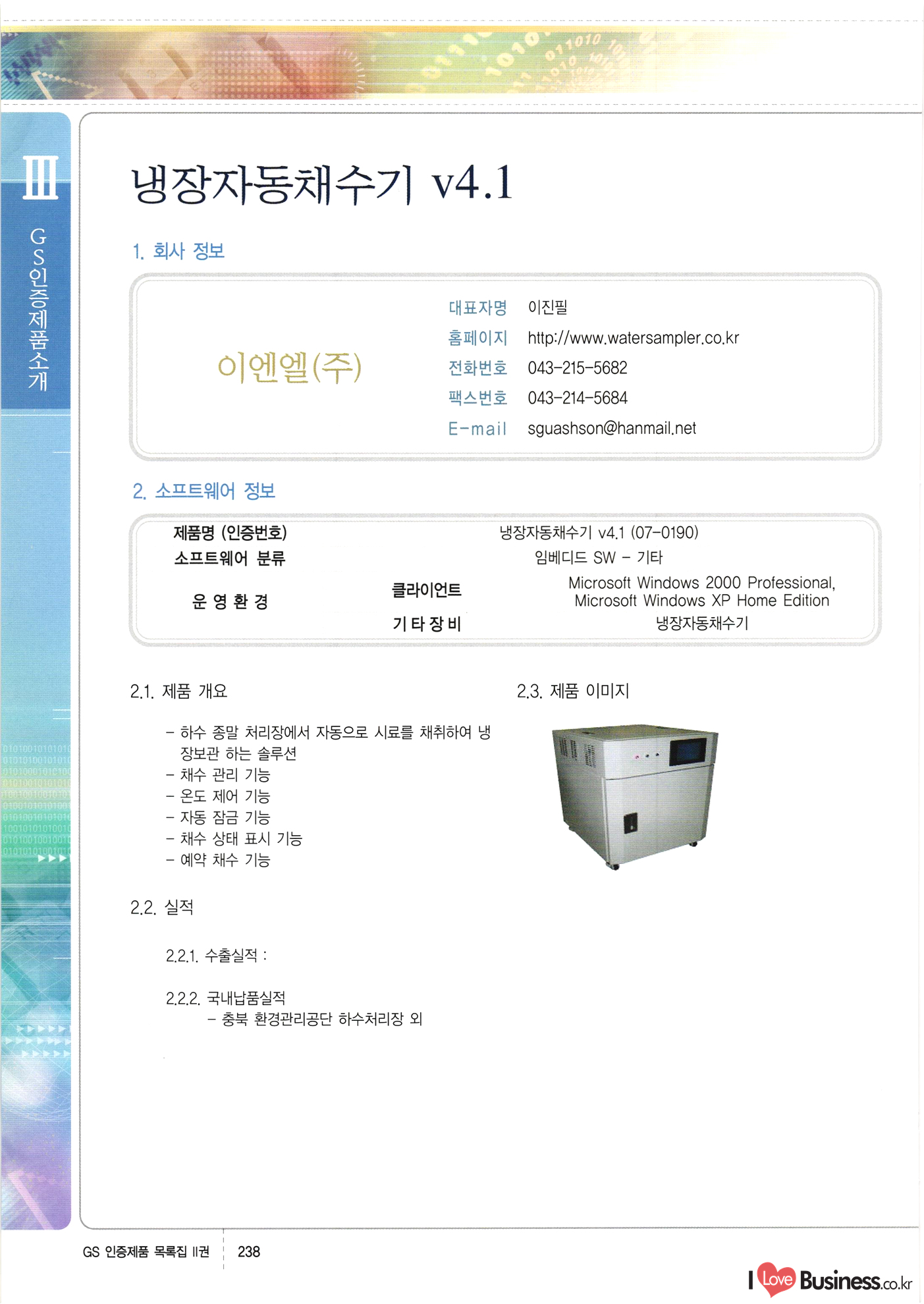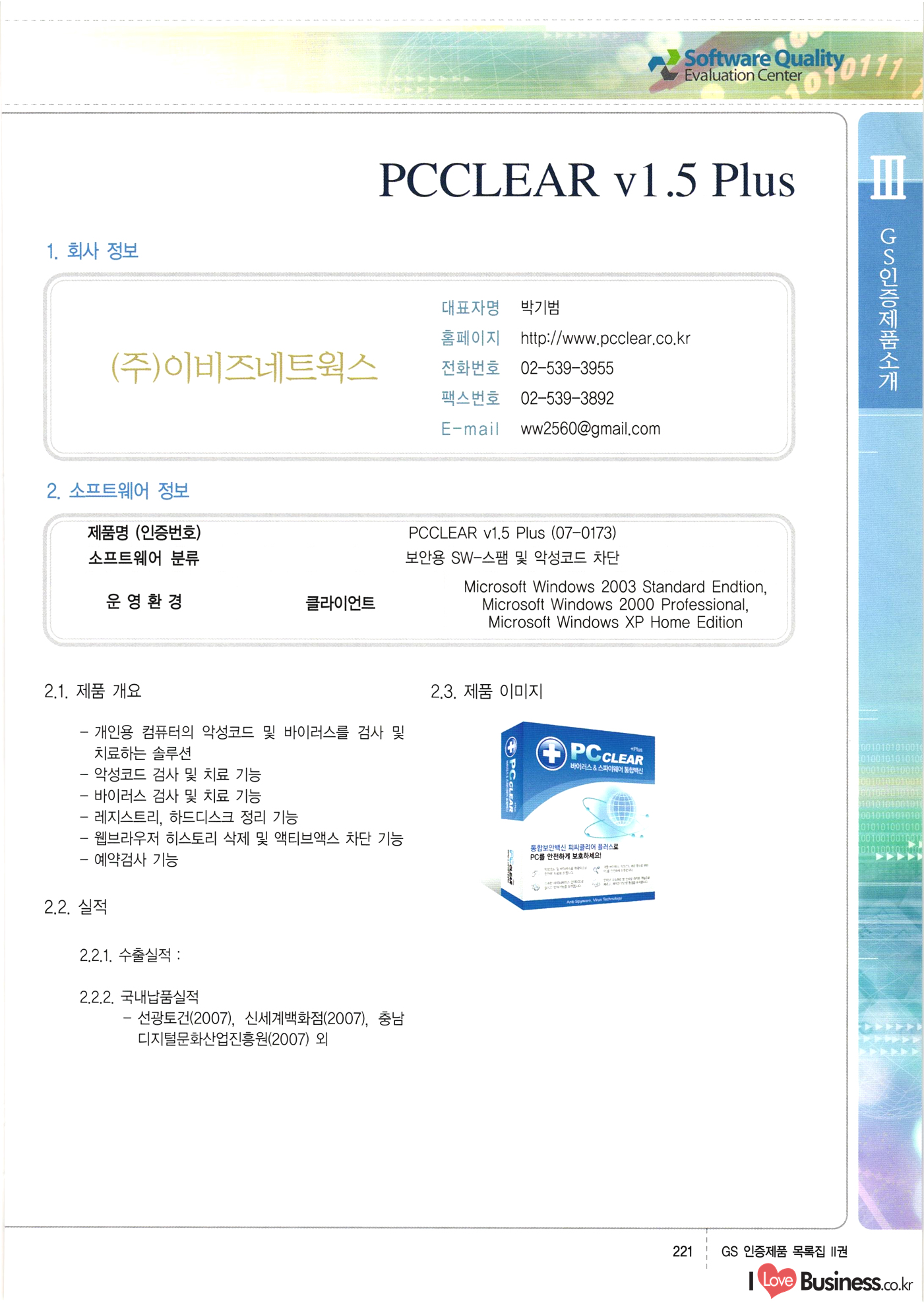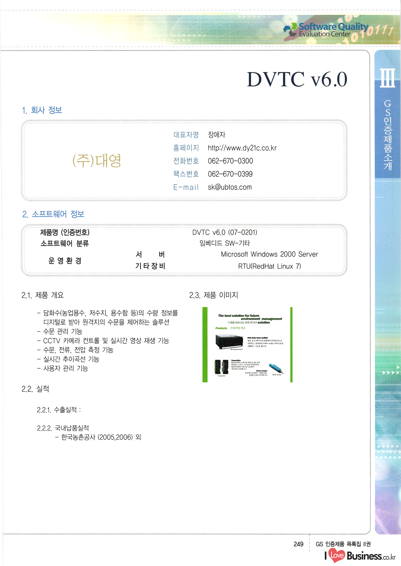 | III. GS 인증제품 목록 | 권-페이지번호 | 권-페이지번호 VT : VeriTest 국제 인증 GS인증제품목록 회사명 삼성에스디에스(주) 제품. EasyBase v4.1 페이지 50 1 제이엔에스 3DM Survey System v1.0 2 | 51 1 (주)싸이웍스 (주)테크다임 (주)다보넷 (주)로지스인포 CyberWALL 2000 v2.16 Jword v1.5 Touchsign v 2.1 키퍼엣홈 v1.0 78 52 (주)미래에듀테크 아이버스 v1.0 53 54 55 56 57 번호 | 인증번호 | 인증일자 01-0001 | 2001.07.25 101-0002 2001.10.22 (02-0027) | 01-0003 | 2001.11.27 | 01-0004 | 2001.11.27 | 01-0005 2001.11.27 5 | 01-0006 | 2001.12.27 02-0001 (02-0029) 2002.01.29 16 | | 02-0002 1 | 2002.02.16 | 02-0003 | 2002.02.16 02-0004 2002.02.27 9 | 02-0005 | 2002.02.27 110 | | 02-0006 | 2002.03.27 11 | || 02-0007 | 2002.03.27 | 02-0008 | 2002.04.30 | 02-0009 | 2002.04.30 | 02-0010 | 2002.04.30 15. | 02-0011 | 2002.04.30 16 102-0012 | 2002.04.30 | 17 | 02-0013 | 2002.05.30 | 18 | 02-0014 | 2002.05.30 | 02-0015 2002.06.28 | 20 | 02-0016 | 2002.06.28 02-0017 1 2002.06.28 | 02-0018 1 | 2002.06.28 23 | 02-0019 | 2002.06.28 24 02-0020 | 2002.07.31 25 | 02-0021 | 2002.07.31 224 58 14 59 118 (주)마크애니 (주)핸디소프트 (주)슈퍼테크놀러지 (주)스펙트라 이래정보시스템(주) (주)컴리빙아이티 | (주)시큐브 (주)케이게이트 (주)소프트4소프트 스페이스인터네셔널(주) (주)컴리빙아이티 (주)그린벨시스템즈 닉스테크(주) 심플소프트 (주)한국데이타비즈네스 (주)테크다임 (주)수세리눅스코리아 (주)한컴리눅스 소프트온넷(주) 와우리눅스(주) 60 61 Document Safer v1.0 | BizFlow Groupware v3.21 | Eg columbus || v1.0 | | eNomix v1.0 Blue Eyes v3.0 i-Class Five v1.05 Secuve TOS WG v1.0 위즈웹3 v3.0 RESORT v1.01 CD Tower v2.0 i-Class One2one v1.05 MANTIS-Professional v1.0 | | SAFEpc v1.5 Simple Gallery v1.00 통합카드발급프로그램 v1.0 Techdigm JCalc v2.0 Suse Linux 7.1K Professional Hancom Linux OS 2.2 Professional | Z!Stream v2.0 와우리눅스 7.1 파란 Secuve TOS WG Agent (Secuve Tos WG Manager) | SMERP v1.1 상하수도범용/ZEUS v1.0 U-Solver v1.0 dDIMS v3.0 DAL v2.5 101010101 1000 101003010101 190 1001010101 21 78. 122 | UL 63 64 65 26 | VT-02-001 | 2002.08.29 (주)시큐브 224 27 1 66 67 | 28 29 130 | 02-0022 | 2002.08.30 | 02-0023 | 2002.10.31 | 02-0024 | 2002.10.31 | 02-0025 | 2002.11.27 | 02-0026 | 2002.11.27 02-0027 (01-0002) 2002.11.27 | 02-0028 (03-0021) 2002.12.09 | 대한상공회의소 한국통신데이타(주) (주)지노시스템 유니온정보시스템(주) (주) 스 68 69 | 70 311 제이엔에스 소프트(구 제이엔에스) 3DM Survey System v1.0 (주)한국지능형정보시스템 한국관(상하수도 범용/TGW) v1.00 92 GS 인증제품 목록집 1권 | 26 I Love Business.co.kr Software Quality, 111 Evaluation Center | 권-페이지번호 II권페이지번호 VT : VeriTest 국제 인증 페이지 회사명 (주)포스데이타 제품 | iSign v2.0 | GS인증제품목록 171 | 34 | 02-0029 (주)제이슨테크(구 미래에듀테크) 아이버스 v1.0 91 72 73. 74 (주)인텔리젼스웨어 (주)하나디에스디 (주)연성정보기술 (주)포스정보 (주)켈코인 (주)포스데이타 스페이스인터내셔널 연희정보통신(주) (주)뉴테크웨이브 c-napse(GSS) v1.0 Life EduBuilder v1.0 | Email+ v3.0 1 책꽃이KDC v3.1 Challenger Webzine Webschool v3.0 1 Biz Binder v1.0 CD-Tower v3.1 상하수도 범용/UFCom v1.0 | | VirusChaser v5.0 | 175 76 118. (주)웨어벨리 Orange for ORACLE v2.2 | 번호 | 인증번호 | 인증일자 | 33 |VT-02-0022002.12.12 | | 2002.12.24 (02-0001) 35 | VT-02-003 | 2002.12.30 | 36 | 03-0001 | 2003.02.28 37. 03-0002 | 2003.02.28 | 38 | 03-0003 | 2003.02.28 | 39 | 03-0004 | 2003.02.28 40 | VT-03-001 | 2003.03.10 41 | VT-03-002) 2003.03.10 1 42 | 03-0005 | 2003.04.07 43 | 03-0006 | 2003.04.07 03-0007 2003.04.30 (03-0026) | 03-0008 | 2003.04.30 45 | 03-0009 | 2003.04.30 | 03-0010 | 2003.04.30 | 47 | 03-0011 | 2003.04.30 | 48 VT-03-003 2003.05.26 49 | 03-0012 | 2003.06.05 | 50 | 03-0013 | 2003.06.05 | 51 | 03-0014 | 2003.06.05 | 52 | 03-0015 | 2003.07.10 | 53 | 03-0016 | 2003.07.10 | 54 | 03-0017 | 2003.07.10 | | 55 | 03-0018 | 2003.07.10 | 56 | 03-0019 | 2003.08.06 57 | | 03-0020 | 2003.08.06 44 1 18 46 80 81 82 83 | (주)테크다임 (주)엔지스테크널러지 삼성에스디에스(주) 삼성에스디에스(주) (주)미디어랜드 인터컴소프트웨어(주) 에스케이씨앤씨(주) 아이티로직스(주) (주)에이씨티소프트 (주)위즈북 (주)에스오엔코리아 (주)아리수미디어 한진정보통신(주) (주)인텔리전스웨어 (주)웨어밸리 (구 (주)오알솔루션즈코리아) Techdigm Office v2.0 | G-Solution Waterworks/Sewerage v1.0 | | 79 UniCITY Standard v1.0 UniCITY Enterprise v1.0 TCO!stream 2002 v4.0 | ServerGuard v3.0 | SK-UPEX v1.0 84 NexWeb v1.2 e-Library Deluxe v4.1.5 86 DL Pro v1.0 SiR v1.01 파워CD뱅크 v4.0 89 InfoMatrix v1.00 190 Bizpus v1.0 91 85 87 88 10010010101.03 1101010100101 1100100100107 58 |VT-03-004 2003.08.12 Orange for ORACLE v2.2 | 111 59 (주)티지더블유 (구 한국지능형정보시스템) 한국관(상하수도 범용/TGW) v1.0 92 93 GIS Free v1.0 DeskPlus v2.0 1 | 94 ArcCITY v1.0 110 03-0021 (02-0028) | 2003.09.04 | 60 | 03-0022 | 2003.09.30 03-0023 | 2003.09.30 03-0024 (04-0011) | 2003.09.30 | 03-0025 | 2003.09.30 03-0026 (03-0007) | 2003.10.07 63 | 03-0027 | 2003.11.12 64 | 03-0028 | 2003.11.12 622 세광정보시스템(주) 제오스페이스(주) (주)선도소프트 (구 (주)캐드랜드) 중앙항업(주) (주)웨어밸리 (구 (주)오알솔루션즈코리아) (주)우암닷컴 (주)오투라인 geoCUBE상하수도 v1.0 95 Orange for ORACLE V2.2 111 96 RAVCOMS Eyecon v4.0 오투스쿨 v2.01 97 GS 인증제품 목록집 1권 I Love Business.co.kr | 권-페이지번호 | 권 - 페이지번호 VT : VeriTest 국제 인증 번호 페이지 회사명 소프트캠프