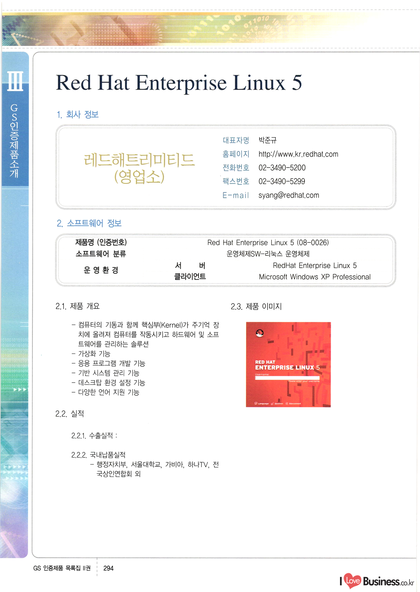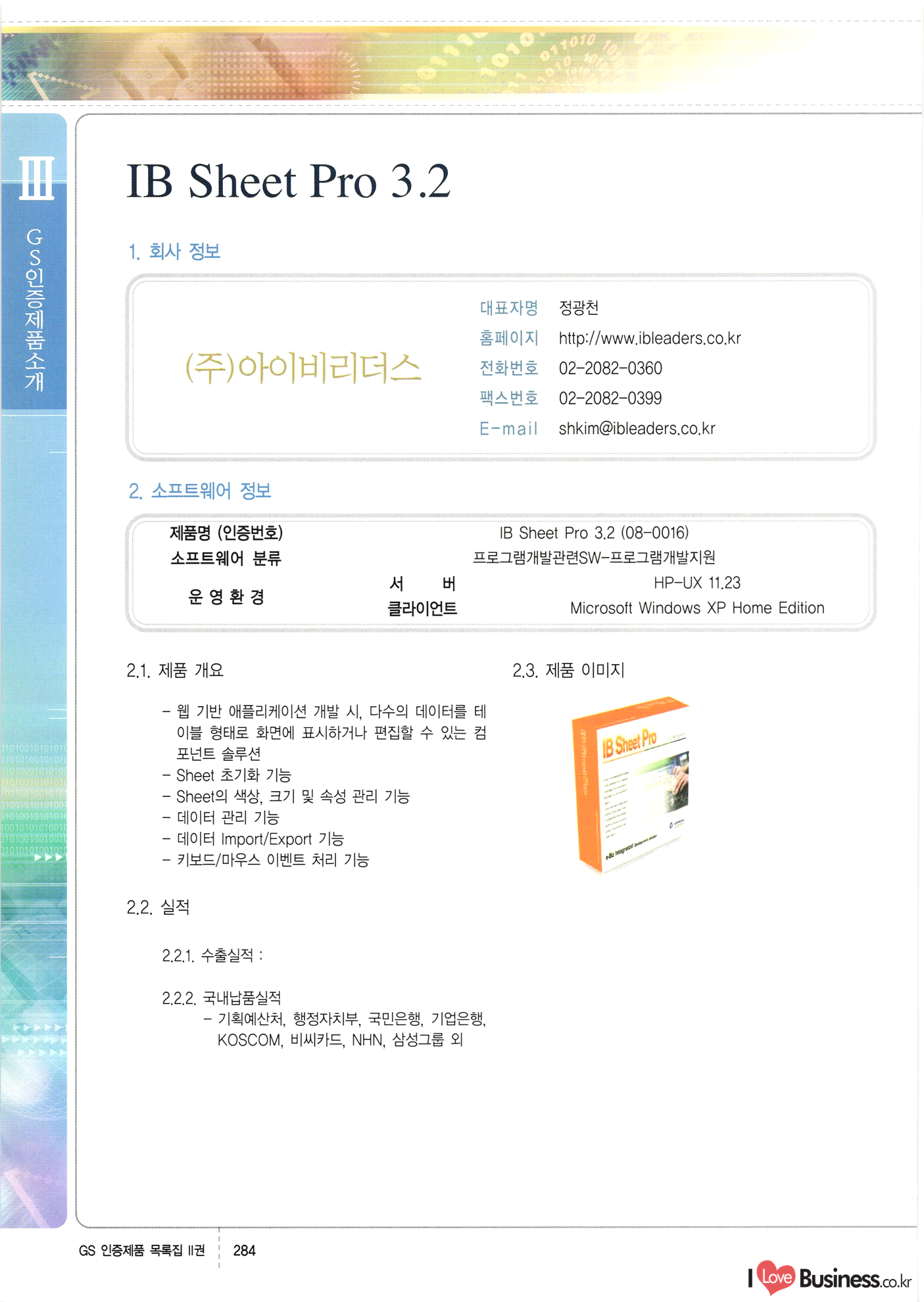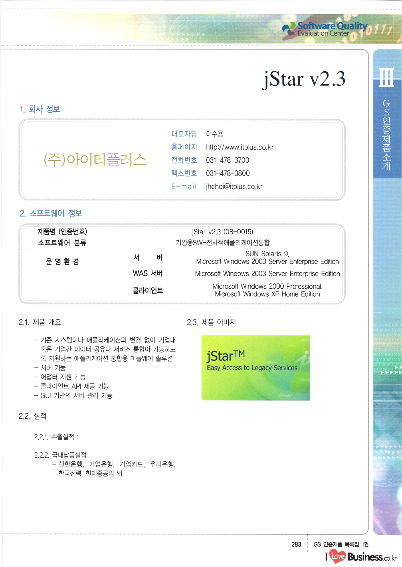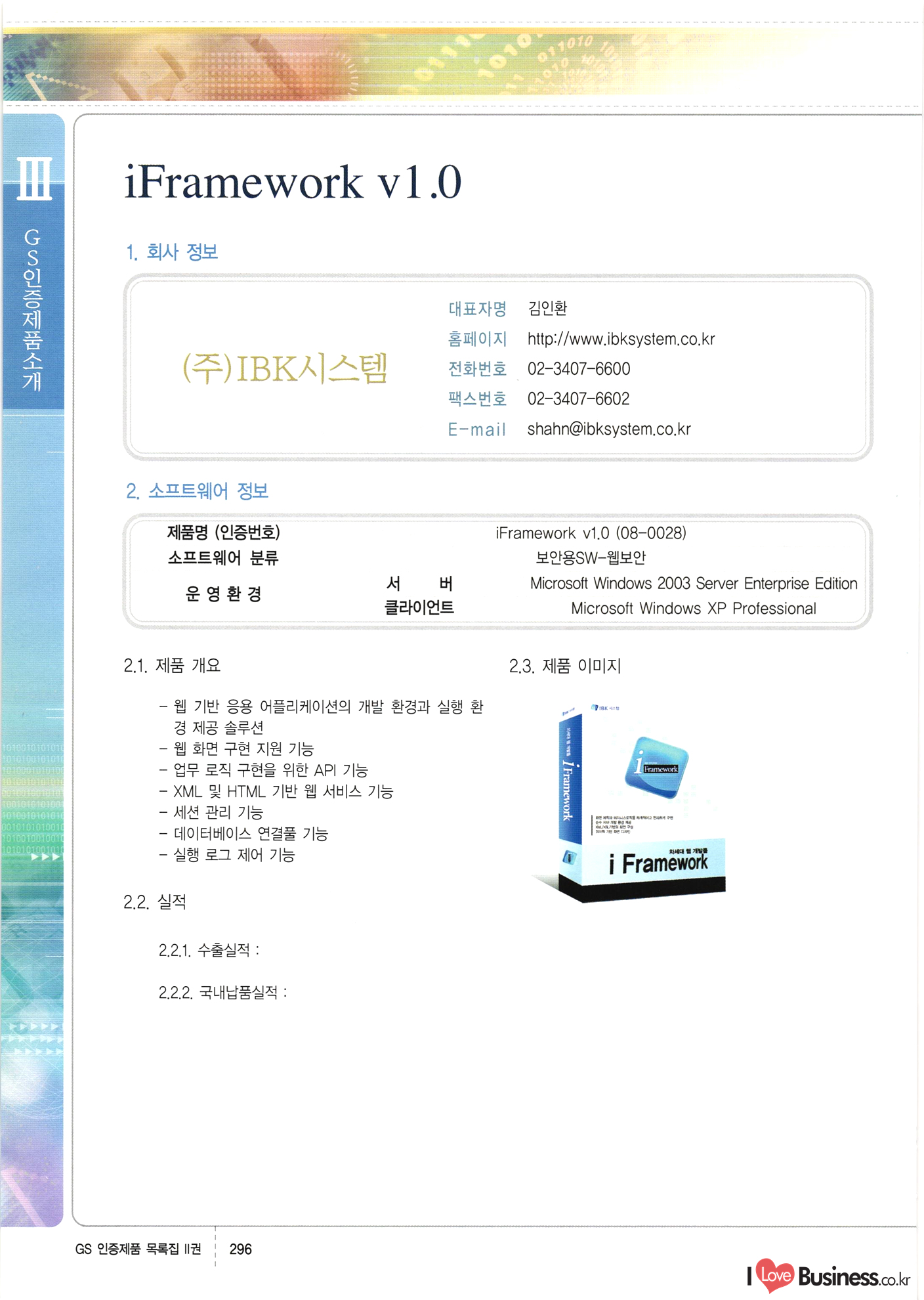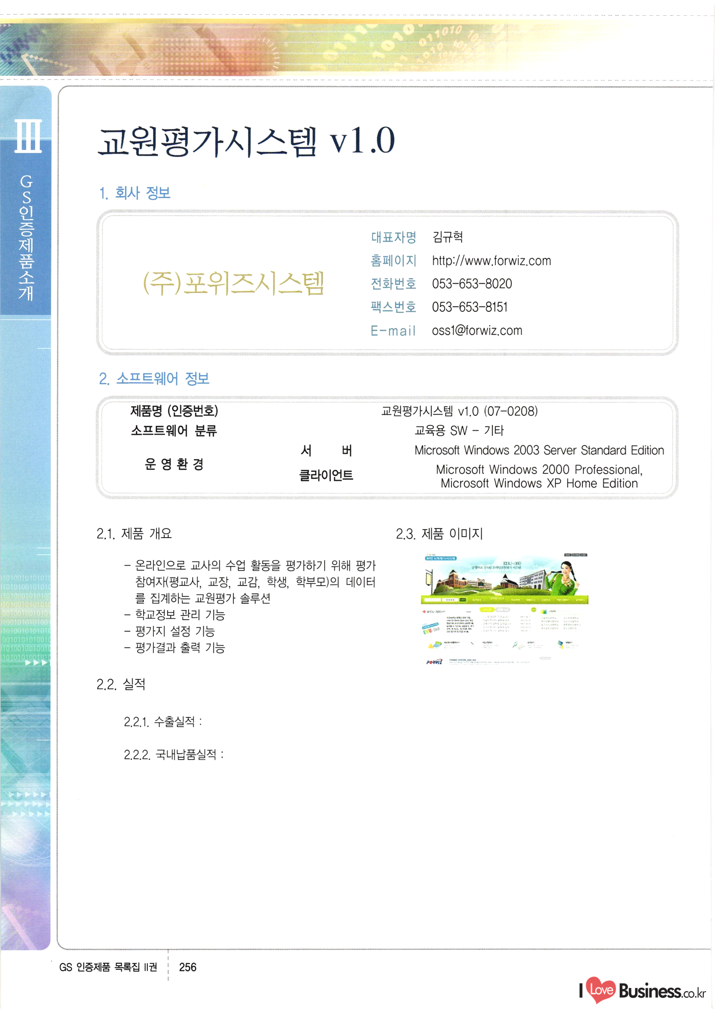 | III. GS 인증제품 목록 | 권-페이지번호 | 권-페이지번호 VT : VeriTest 국제 인증 GS인증제품목록 회사명 삼성에스디에스(주) 제품. EasyBase v4.1 페이지 50 1 제이엔에스 3DM Survey System v1.0 2 | 51 1 (주)싸이웍스 (주)테크다임 (주)다보넷 (주)로지스인포 CyberWALL 2000 v2.16 Jword v1.5 Touchsign v 2.1 키퍼엣홈 v1.0 78 52 (주)미래에듀테크 아이버스 v1.0 53 54 55 56 57 번호 | 인증번호 | 인증일자 01-0001 | 2001.07.25 101-0002 2001.10.22 (02-0027) | 01-0003 | 2001.11.27 | 01-0004 | 2001.11.27 | 01-0005 2001.11.27 5 | 01-0006 | 2001.12.27 02-0001 (02-0029) 2002.01.29 16 | | 02-0002 1 | 2002.02.16 | 02-0003 | 2002.02.16 02-0004 2002.02.27 9 | 02-0005 | 2002.02.27 110 | | 02-0006 | 2002.03.27 11 | || 02-0007 | 2002.03.27 | 02-0008 | 2002.04.30 | 02-0009 | 2002.04.30 | 02-0010 | 2002.04.30 15. | 02-0011 | 2002.04.30 16 102-0012 | 2002.04.30 | 17 | 02-0013 | 2002.05.30 | 18 | 02-0014 | 2002.05.30 | 02-0015 2002.06.28 | 20 | 02-0016 | 2002.06.28 02-0017 1 2002.06.28 | 02-0018 1 | 2002.06.28 23 | 02-0019 | 2002.06.28 24 02-0020 | 2002.07.31 25 | 02-0021 | 2002.07.31 224 58 14 59 118 (주)마크애니 (주)핸디소프트 (주)슈퍼테크놀러지 (주)스펙트라 이래정보시스템(주) (주)컴리빙아이티 | (주)시큐브 (주)케이게이트 (주)소프트4소프트 스페이스인터네셔널(주) (주)컴리빙아이티 (주)그린벨시스템즈 닉스테크(주) 심플소프트 (주)한국데이타비즈네스 (주)테크다임 (주)수세리눅스코리아 (주)한컴리눅스 소프트온넷(주) 와우리눅스(주) 60 61 Document Safer v1.0 | BizFlow Groupware v3.21 | Eg columbus || v1.0 | | eNomix v1.0 Blue Eyes v3.0 i-Class Five v1.05 Secuve TOS WG v1.0 위즈웹3 v3.0 RESORT v1.01 CD Tower v2.0 i-Class One2one v1.05 MANTIS-Professional v1.0 | | SAFEpc v1.5 Simple Gallery v1.00 통합카드발급프로그램 v1.0 Techdigm JCalc v2.0 Suse Linux 7.1K Professional Hancom Linux OS 2.2 Professional | Z!Stream v2.0 와우리눅스 7.1 파란 Secuve TOS WG Agent (Secuve Tos WG Manager) | SMERP v1.1 상하수도범용/ZEUS v1.0 U-Solver v1.0 dDIMS v3.0 DAL v2.5 101010101 1000 101003010101 190 1001010101 21 78. 122 | UL 63 64 65 26 | VT-02-001 | 2002.08.29 (주)시큐브 224 27 1 66 67 | 28 29 130 | 02-0022 | 2002.08.30 | 02-0023 | 2002.10.31 | 02-0024 | 2002.10.31 | 02-0025 | 2002.11.27 | 02-0026 | 2002.11.27 02-0027 (01-0002) 2002.11.27 | 02-0028 (03-0021) 2002.12.09 | 대한상공회의소 한국통신데이타(주) (주)지노시스템 유니온정보시스템(주) (주) 스 68 69 | 70 311 제이엔에스 소프트(구 제이엔에스) 3DM Survey System v1.0 (주)한국지능형정보시스템 한국관(상하수도 범용/TGW) v1.00 92 GS 인증제품 목록집 1권 | 26 I Love Business.co.kr Software Quality, 111 Evaluation Center | 권-페이지번호 II권페이지번호 VT : VeriTest 국제 인증 페이지 회사명 (주)포스데이타 제품 | iSign v2.0 | GS인증제품목록 171 | 34 | 02-0029 (주)제이슨테크(구 미래에듀테크) 아이버스 v1.0 91 72 73. 74 (주)인텔리젼스웨어 (주)하나디에스디 (주)연성정보기술 (주)포스정보 (주)켈코인 (주)포스데이타 스페이스인터내셔널 연희정보통신(주) (주)뉴테크웨이브 c-napse(GSS) v1.0 Life EduBuilder v1.0 | Email+ v3.0 1 책꽃이KDC v3.1 Challenger Webzine Webschool v3.0 1 Biz Binder v1.0 CD-Tower v3.1 상하수도 범용/UFCom v1.0 | | VirusChaser v5.0 | 175 76 118. (주)웨어벨리 Orange for ORACLE v2.2 | 번호 | 인증번호 | 인증일자 | 33 |VT-02-0022002.12.12 | | 2002.12.24 (02-0001) 35 | VT-02-003 | 2002.12.30 | 36 | 03-0001 | 2003.02.28 37. 03-0002 | 2003.02.28 | 38 | 03-0003 | 2003.02.28 | 39 | 03-0004 | 2003.02.28 40 | VT-03-001 | 2003.03.10 41 | VT-03-002) 2003.03.10 1 42 | 03-0005 | 2003.04.07 43 | 03-0006 | 2003.04.07 03-0007 2003.04.30 (03-0026) | 03-0008 | 2003.04.30 45 | 03-0009 | 2003.04.30 | 03-0010 | 2003.04.30 | 47 | 03-0011 | 2003.04.30 | 48 VT-03-003 2003.05.26 49 | 03-0012 | 2003.06.05 | 50 | 03-0013 | 2003.06.05 | 51 | 03-0014 | 2003.06.05 | 52 | 03-0015 | 2003.07.10 | 53 | 03-0016 | 2003.07.10 | 54 | 03-0017 | 2003.07.10 | | 55 | 03-0018 | 2003.07.10 | 56 | 03-0019 | 2003.08.06 57 | | 03-0020 | 2003.08.06 44 1 18 46 80 81 82 83 | (주)테크다임 (주)엔지스테크널러지 삼성에스디에스(주) 삼성에스디에스(주) (주)미디어랜드 인터컴소프트웨어(주) 에스케이씨앤씨(주) 아이티로직스(주) (주)에이씨티소프트 (주)위즈북 (주)에스오엔코리아 (주)아리수미디어 한진정보통신(주) (주)인텔리전스웨어 (주)웨어밸리 (구 (주)오알솔루션즈코리아) Techdigm Office v2.0 | G-Solution Waterworks/Sewerage v1.0 | | 79 UniCITY Standard v1.0 UniCITY Enterprise v1.0 TCO!stream 2002 v4.0 | ServerGuard v3.0 | SK-UPEX v1.0 84 NexWeb v1.2 e-Library Deluxe v4.1.5 86 DL Pro v1.0 SiR v1.01 파워CD뱅크 v4.0 89 InfoMatrix v1.00 190 Bizpus v1.0 91 85 87 88 10010010101.03 1101010100101 1100100100107 58 |VT-03-004 2003.08.12 Orange for ORACLE v2.2 | 111 59 (주)티지더블유 (구 한국지능형정보시스템) 한국관(상하수도 범용/TGW) v1.0 92 93 GIS Free v1.0 DeskPlus v2.0 1 | 94 ArcCITY v1.0 110 03-0021 (02-0028) | 2003.09.04 | 60 | 03-0022 | 2003.09.30 03-0023 | 2003.09.30 03-0024 (04-0011) | 2003.09.30 | 03-0025 | 2003.09.30 03-0026 (03-0007) | 2003.10.07 63 | 03-0027 | 2003.11.12 64 | 03-0028 | 2003.11.12 622 세광정보시스템(주) 제오스페이스(주) (주)선도소프트 (구 (주)캐드랜드) 중앙항업(주) (주)웨어밸리 (구 (주)오알솔루션즈코리아) (주)우암닷컴 (주)오투라인 geoCUBE상하수도 v1.0 95 Orange for ORACLE V2.2 111 96 RAVCOMS Eyecon v4.0 오투스쿨 v2.01 97 GS 인증제품 목록집 1권 I Love Business.co.kr | 권-페이지번호 | 권 - 페이지번호 VT : VeriTest 국제 인증 번호 페이지 회사명 소프트캠프