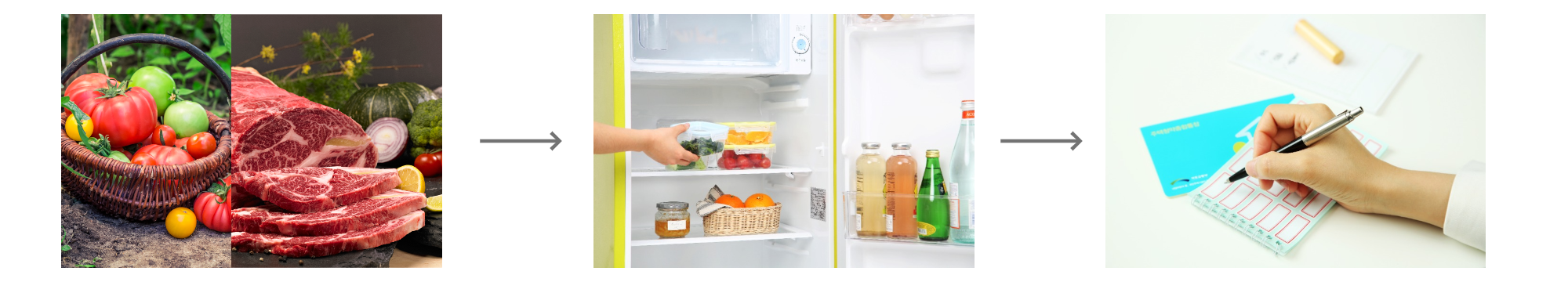 투명용기와 지퍼백에 음식물을 보관했다면 내용물이 무엇인지 확인하기 쉽도록 각각 라벨을 부착하는 것이 좋다. 또는 메모시트를 사용해 음식이 어디에 있는지 확인하는 것도 방법이다. 냉장고 속 재