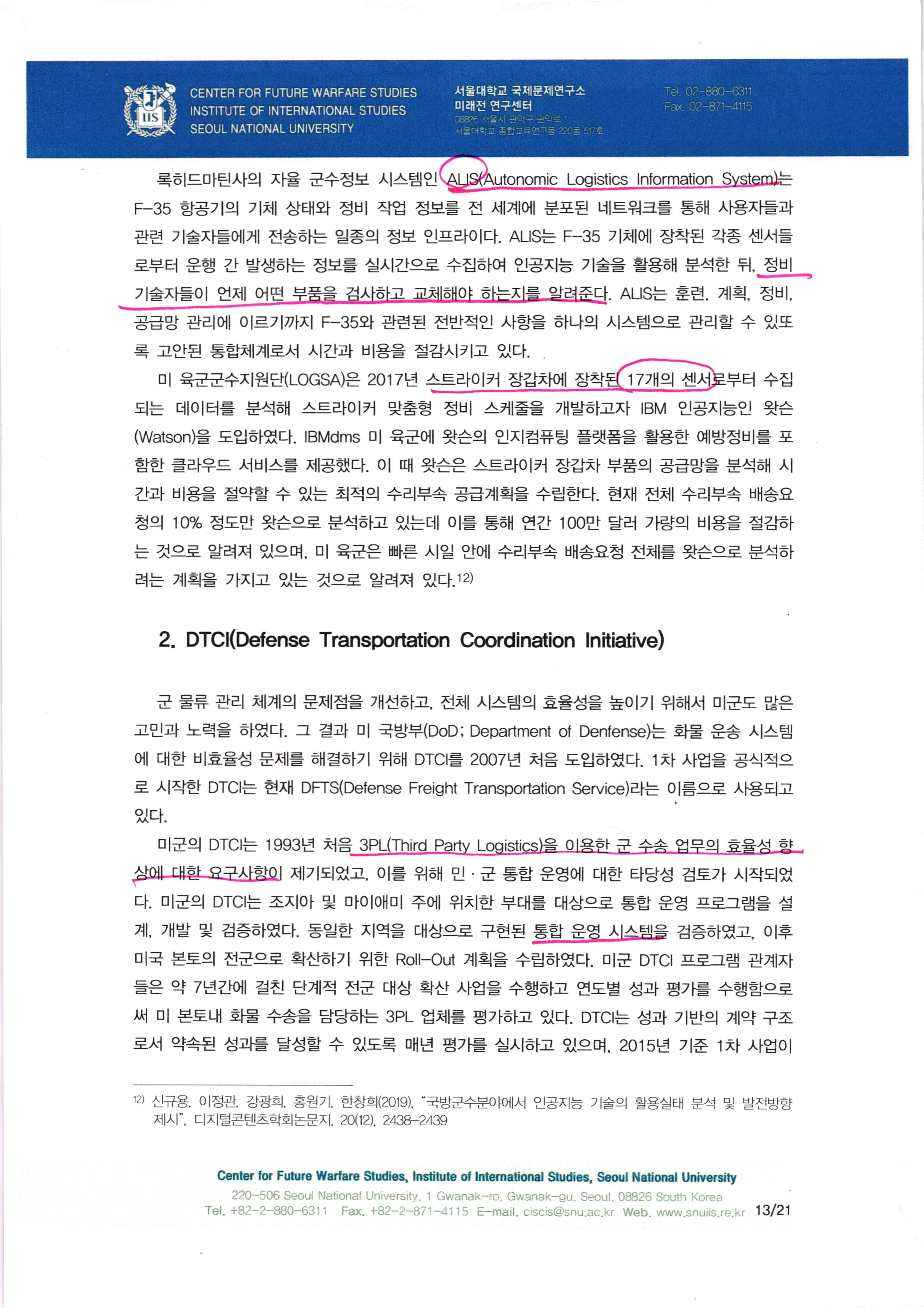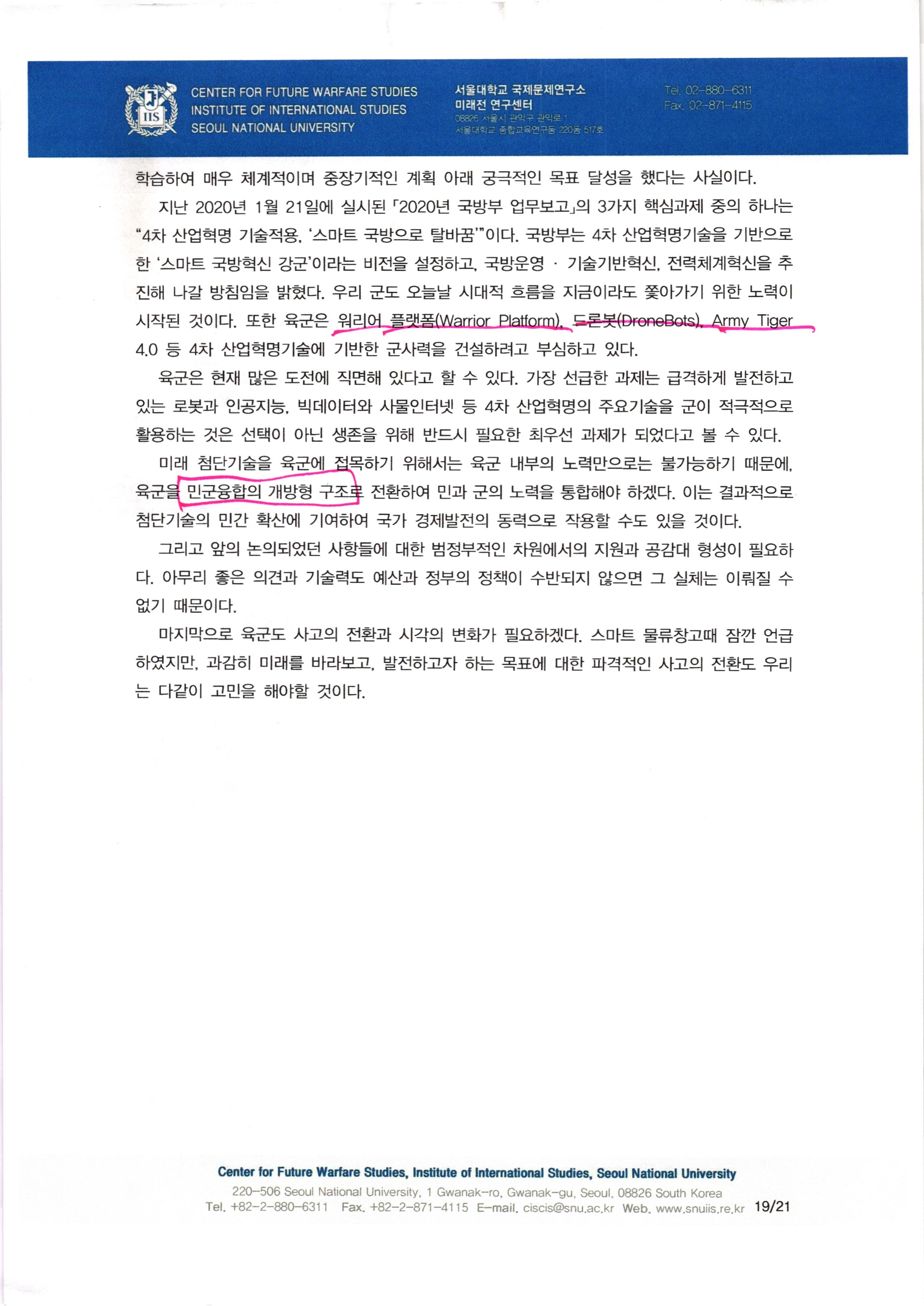 하드웨어는 물론 소프트웨어 그리고 교리도 적용되어야 할 것이다.