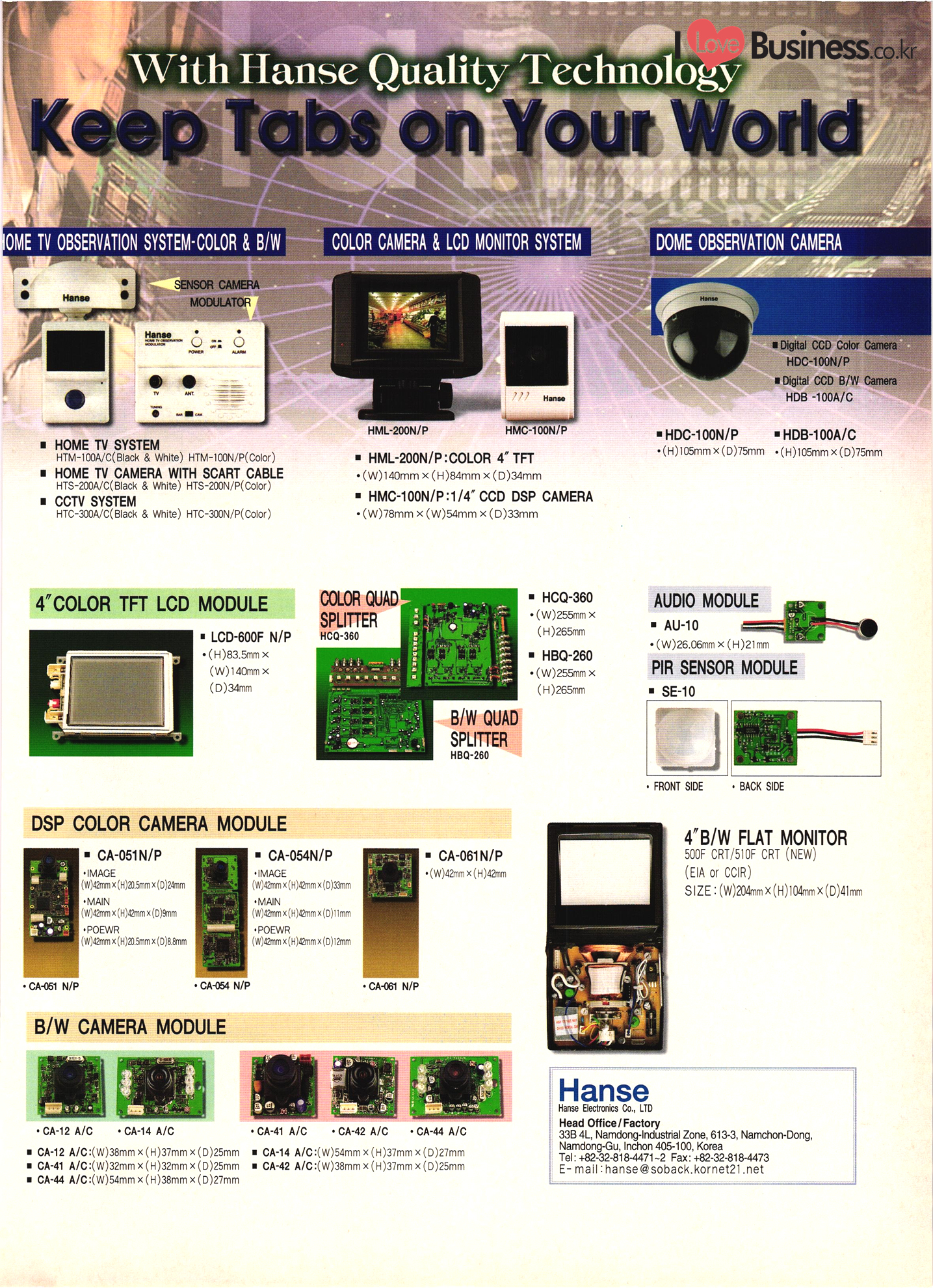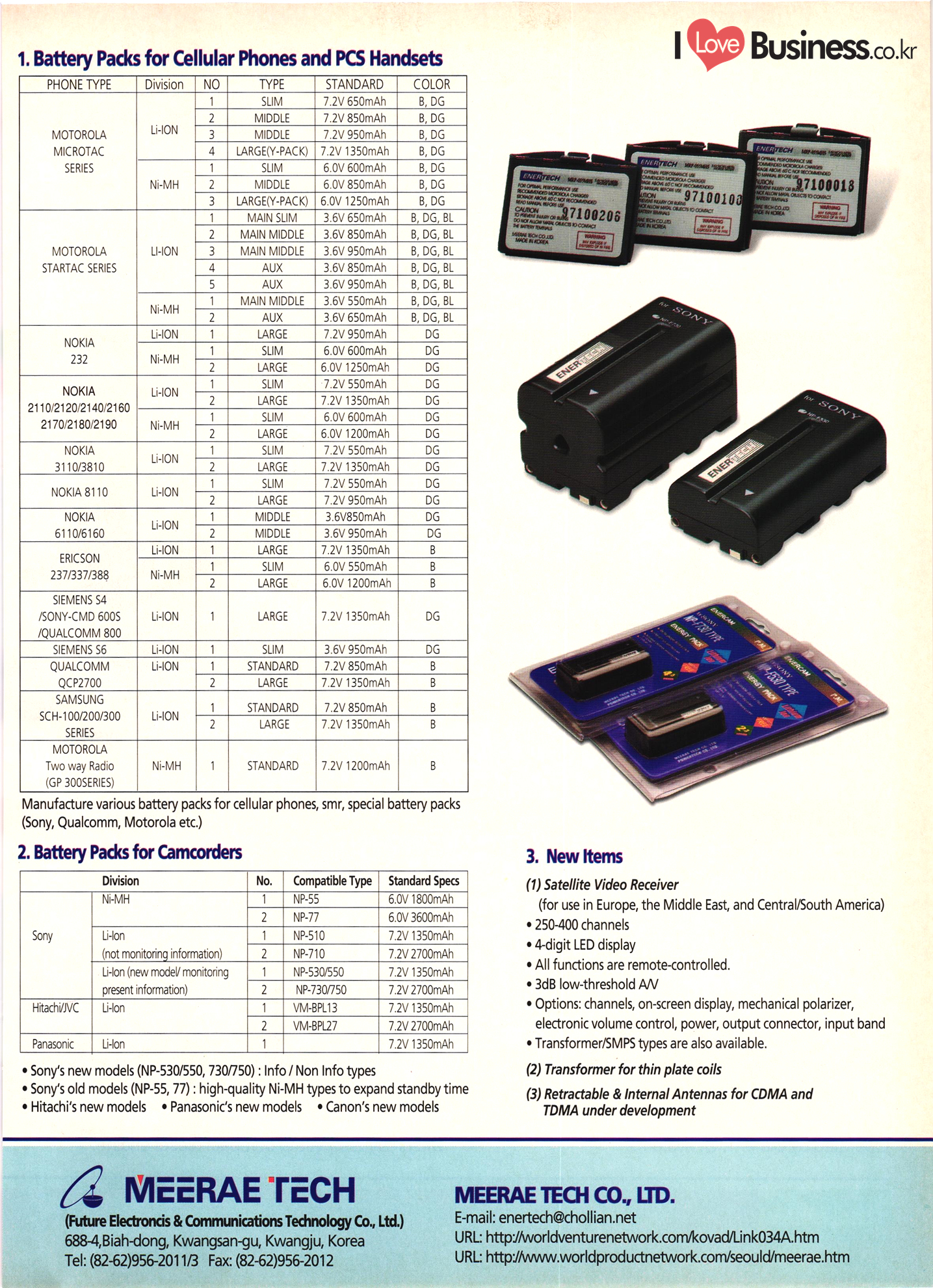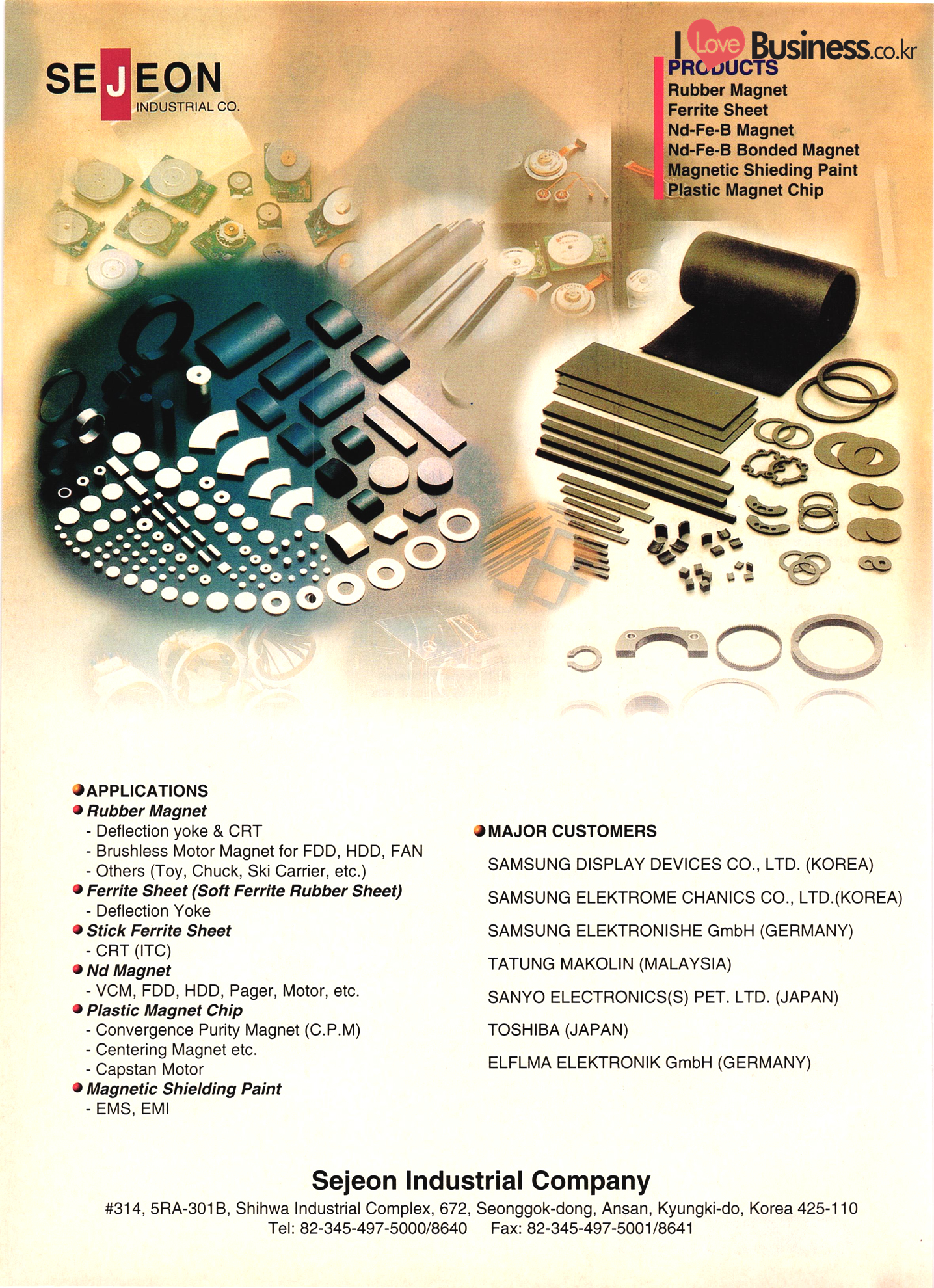 Precision Equipment & Instrumentation Measuring & testing equipment Optical equipment Medical equipment I Love Business.cok Electronic & Electric Products Computer peripherals & accessories Software Business equipment Audio & components Communications equipment & parts CCTV systems Electronic parts & components PCBs Electric home appliances Alternators Motors & cores UPS & converters Batteries & chargers Transformers & transducers Circuit breakers Relays Wire & cable Other I Love Business.co.kr | Automobile Parts & Other Transportation Equipment Engine parts Brakes Gears & transmissions Electric & electronic parts Coolers & heaters Control cable Castings Metal parts Al wheels Rubber parts Filters Car security alarms Other auto parts & accessories Ship machinery & outfitting Lift trucks Heavy equipment parts Bicycle frames |