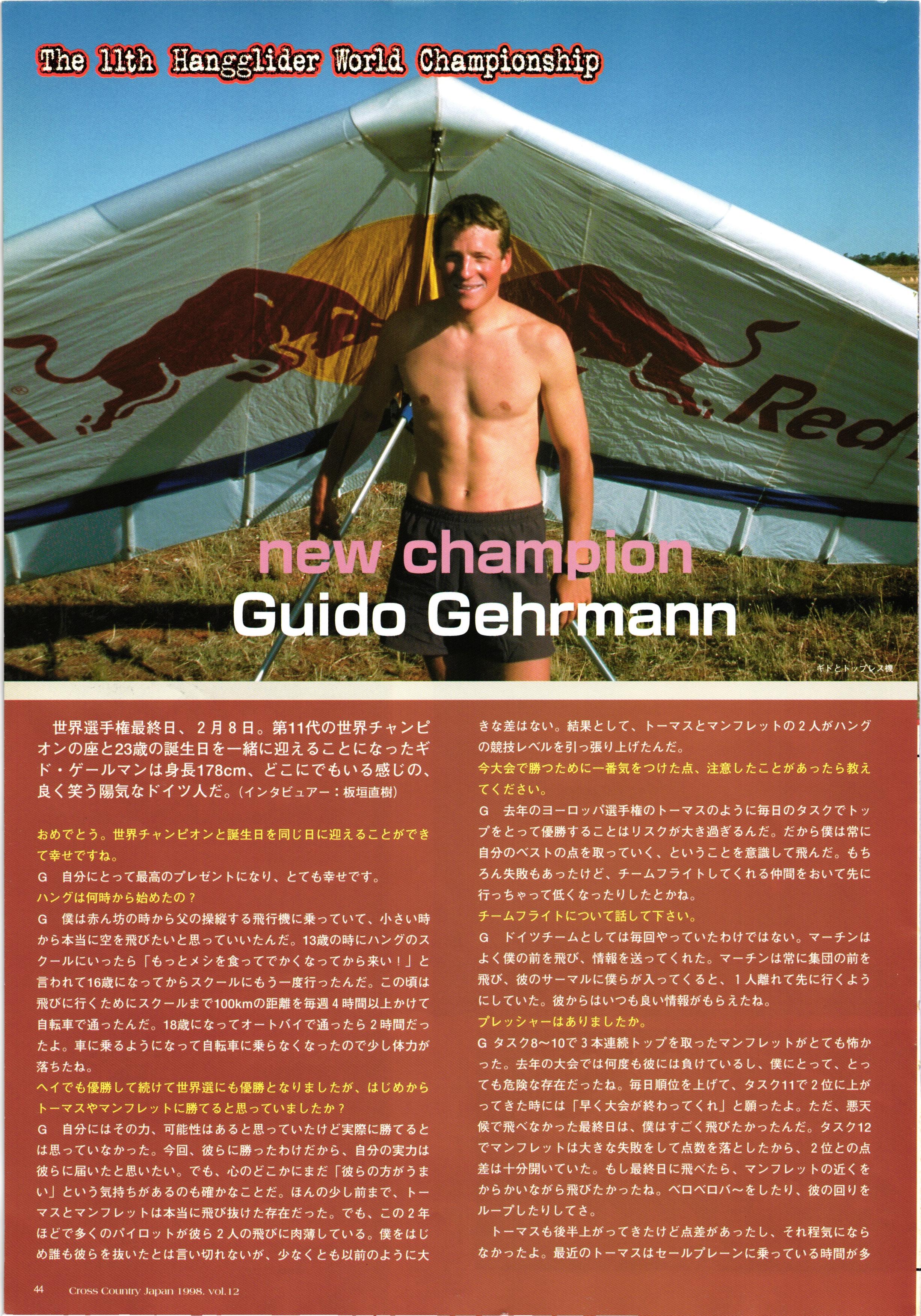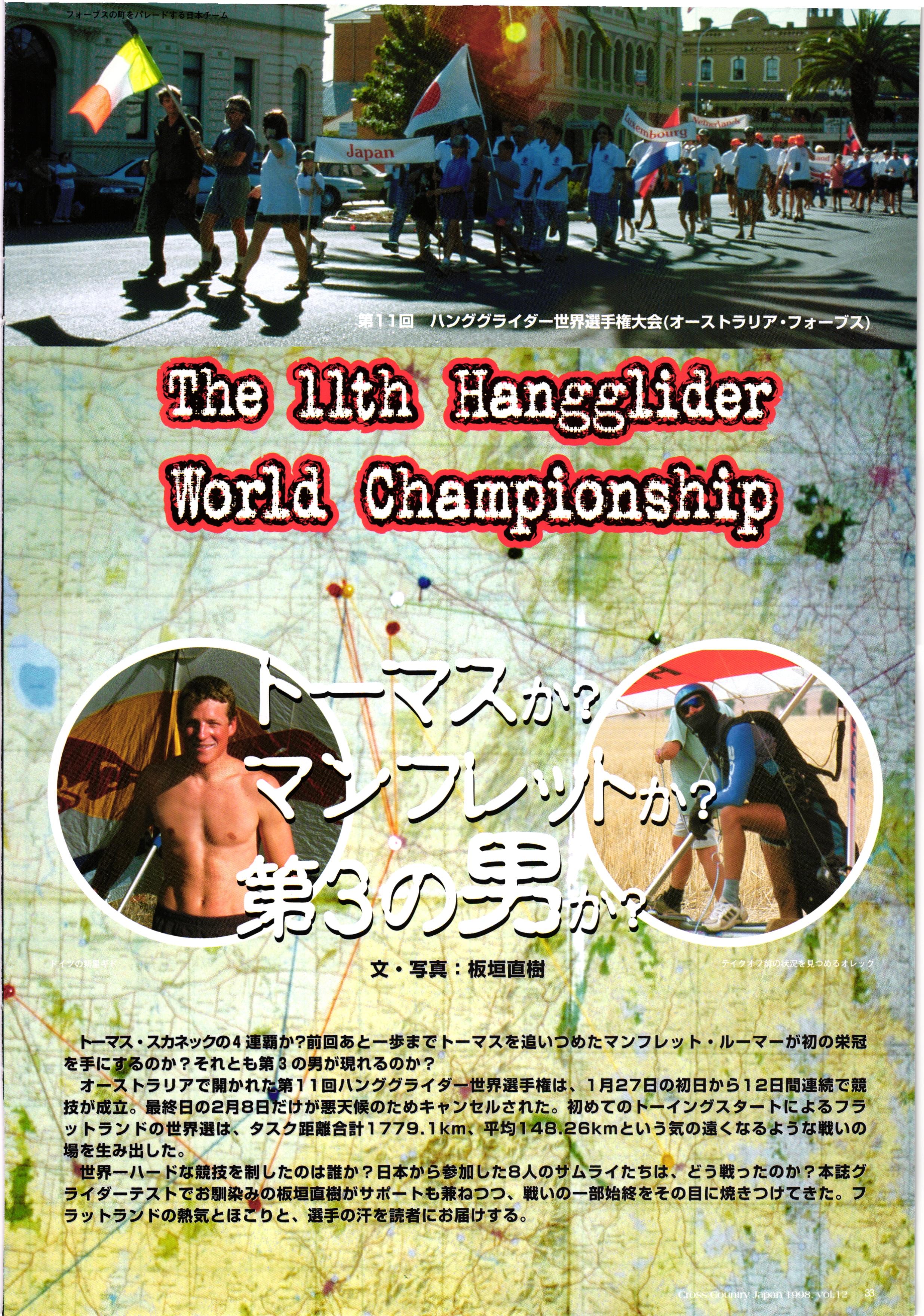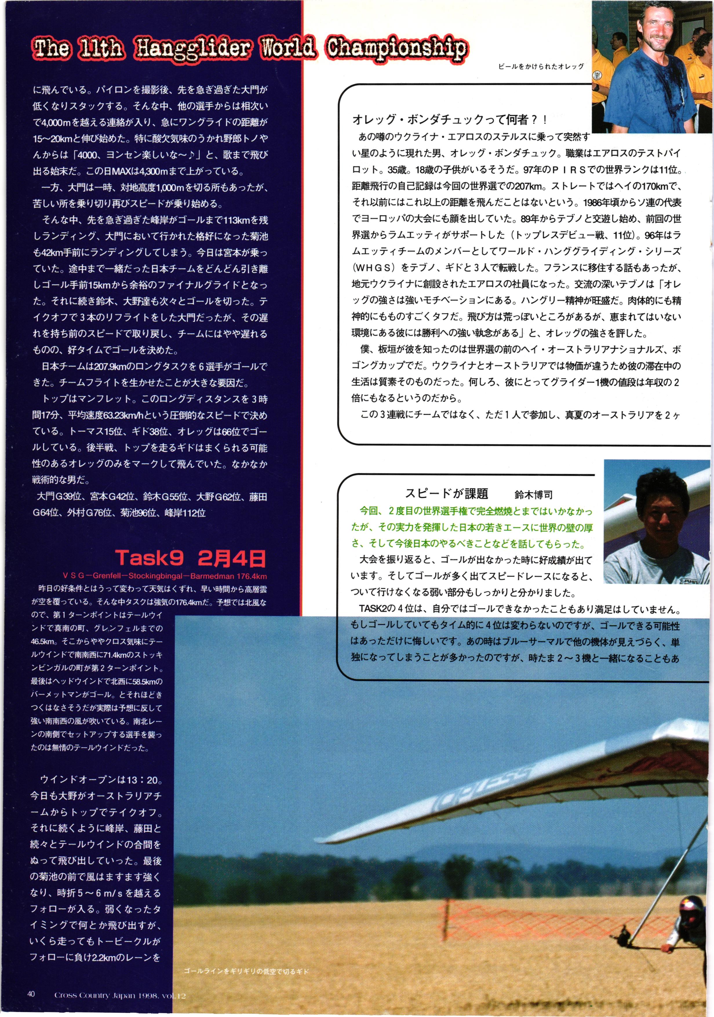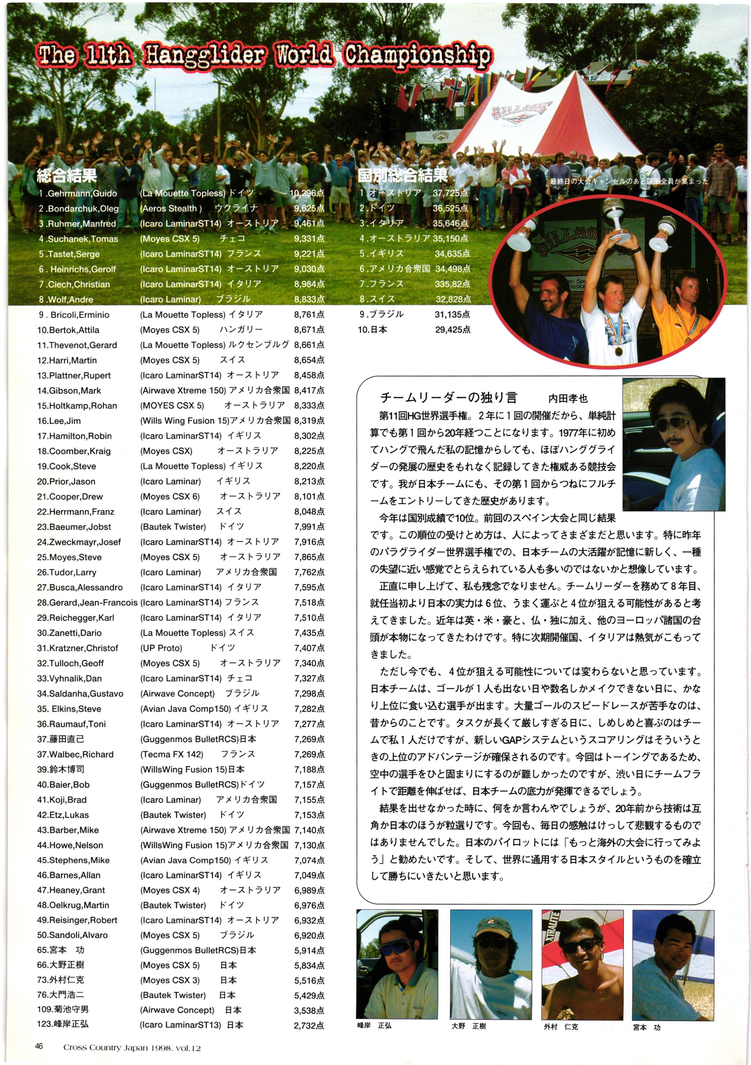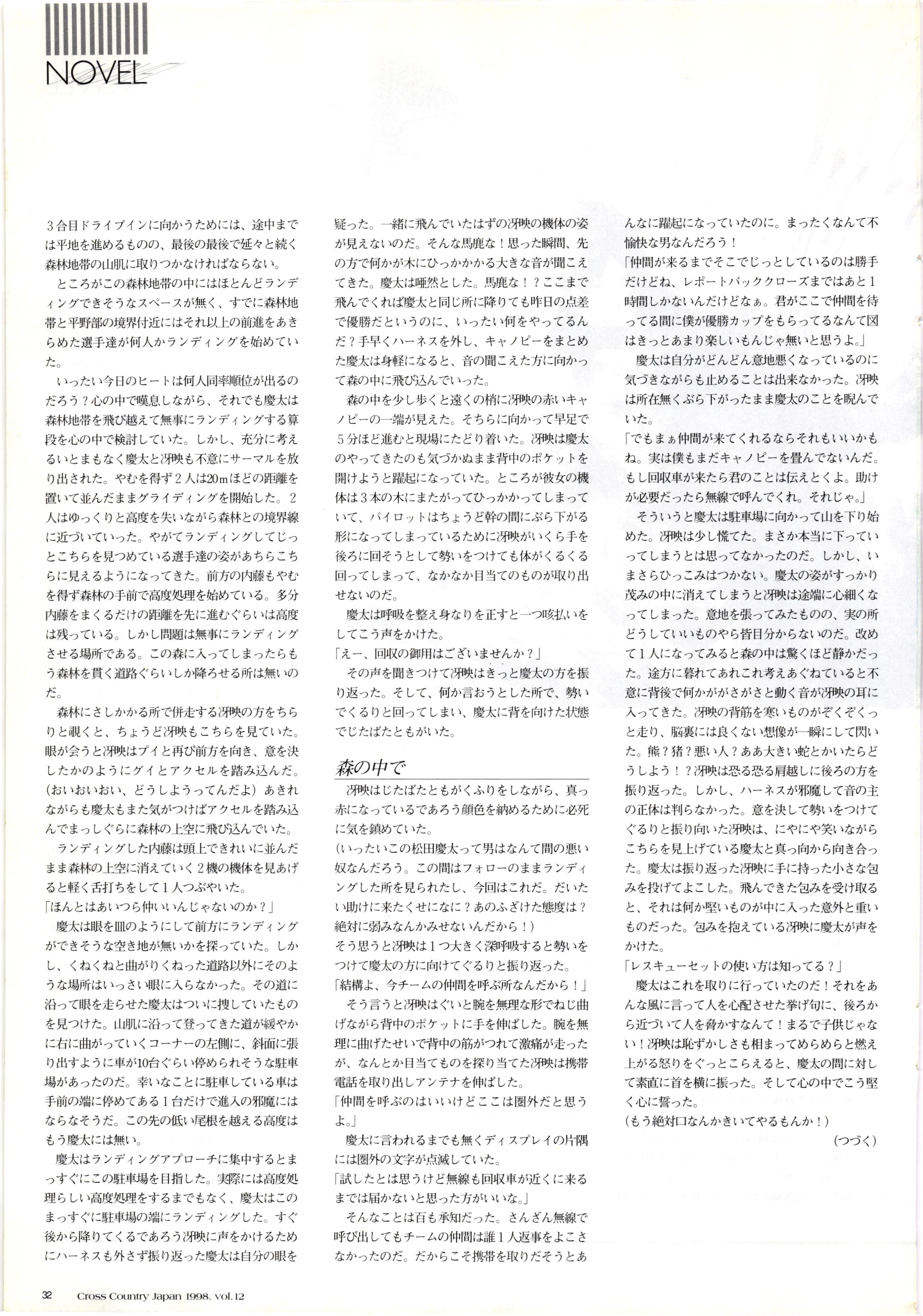 ランス シートはさまる CrOSS Country テる 8 る INDEX (Cover Ph ;Martin Scheel) おいおいおい さっきSafaroid w orld おっさん TIGE SEE にににに な ーーーーーー ちら Download36 wwwwwwwww ww 50 2 ZOOM 5 XC 遥かなるアンデスーチリ編 10 XC ヒマラヤを越えて 13 PG GLIDER TEST PRO DESIGN relax MANUFACTURE APCO立25周年を迎えて WING TIPS への道 ・PG ADVANCE TECHNIQUE アクティブ・フライト入門 20 AERO DYNAMICS 翼を科学する 22 ICARISTICS 24 METEOROLOGY メテオロジスト内藤のウエザー&フライト 26 METEOROLOGY トム・ブラットベリー&内藤邦裕の滑空気象 28 AREA NEWS NOVEL ファイナルグライド KEY POINT HG世界選手権特集 CALENDAR スケジュール一覧 MEDIA MIX 空飛ぶWEB SITE探検隊 51 ESSEY F'Sお説教 52 DEVELOPMENT 流行もの屋・べりぐっ堂 54 COMPETITION MORNINGSIDE GLIDE CONTEST 56.COMIC くろうすかにマリー 57 WORLD NEWS INFOMATION COMPETITION 大会結果 FORUM HG GLIDER TEST Wills WingFUSION 68 KEY POINT オーストラリア選手権&PVCブライト 72 XC 恵美ちゃんが飛ぶ 74 INTERVIEW 加藤豪 AREA 岩城スカイパーク 78 NEW PRODUCTS 80CCJバックナンバーのご紹介 00 ara おはなし ランタン ところまではまた。 勝 ます チタン あると すみま クロスカントリー日本版〒336-0025 埼玉県浦和市文蔵 3-36-9-101 TEL:048-866-0446; FAX:048-866-0447; NIFTY-Surve: BXL 07252 E-mail ccj@sainet.or.jp Editor in Chiet:西ヶ谷一志,General Editor;鈴木正史. Staff:小川貴子,佐藤哲也,田中雅子、松原正幸, 小池恵美子, Designer:藤井薫、古関敦子 Technical Editor:曾我部真人,板堀橋、川口竜太 Advisory Stat: 内藤邦裕、松田光平、休校、高塚龍二,日下部博 Mr.倉持&デジスビ緒集部,Translator:三枝晶子,縣俊介,タツロー、日下部裕子 - Spesial State:木下公• Spesial Thanks to:エリアブルー、加藤原, 津田清則, 山下勝田、本樹夫療 Correspondents: 山本黄、長島信一菊池守男、榊原啓二,松岡寧, H.KAZUHIKO, 岡田次雄、川口竜太、松尾英彦 トム・ブラッドベリ、ボブ・ドローリィーブルース・ゴールドスミス、ジョン・スザレック」 Photographer : マーチン・シール Editor in Chief (クロスカントリー英語版):シェリー・デブリ 月刊・奇数月25日発売●本誌の記事・写感等の無断複写・複製・転載を禁じます。Printed Japan. ©1996 Out Field inc. Cross Country Japan 3-36-9-101 Buzou Urawa-shi Saitama 336-0025 JAPAN Cross Country Japan is only a bimonthly, coming out on the 25th of month. Printed Japan © 1996 Out Field Inc. (Ph; David Varilek Montage;Bowen おは さ行 Cross Country Japan 1998. vol. 12 カントリー cha nasonicon