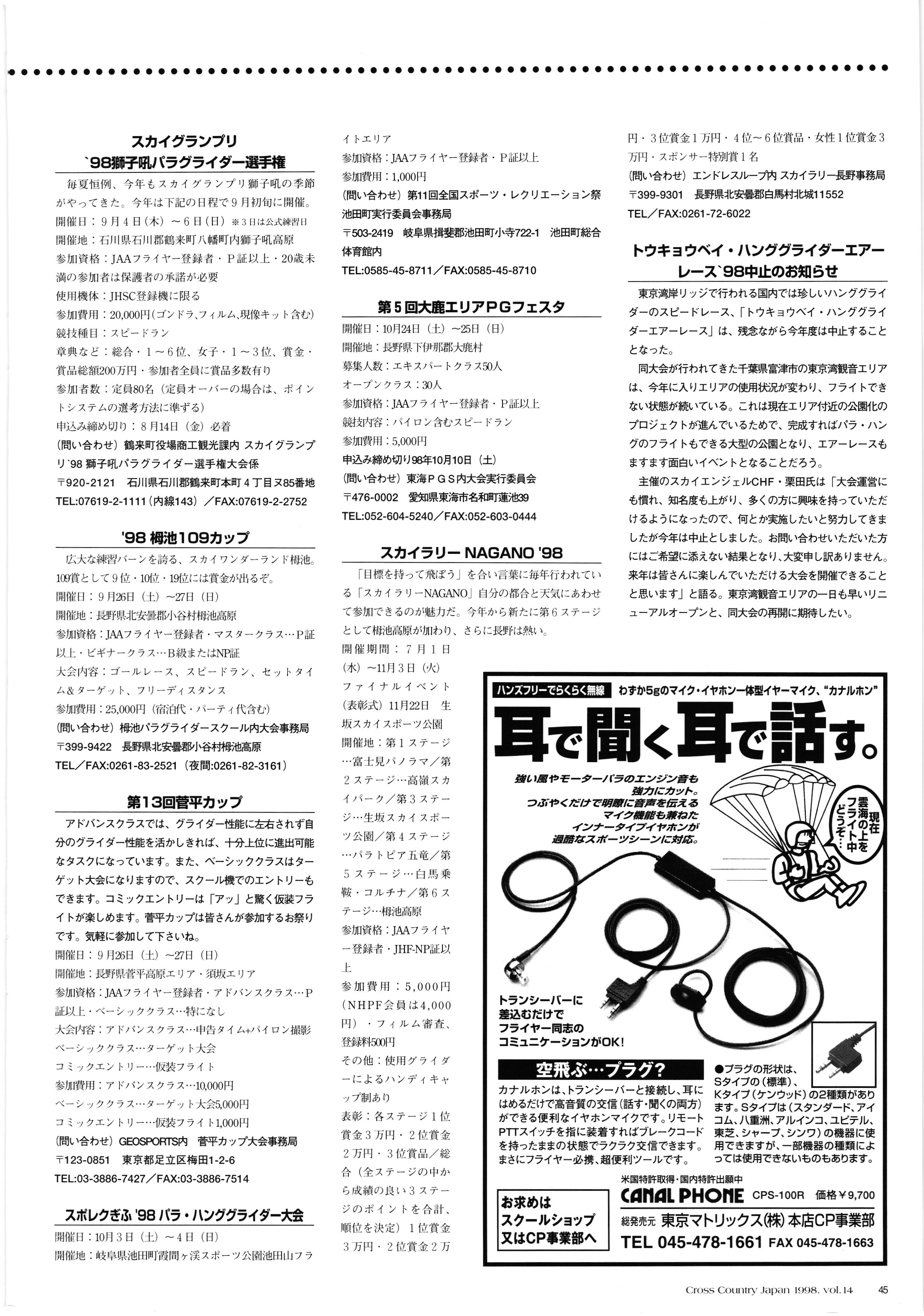 ZRE vol 14, vol.14 071 3 * 1 - C OYES w www Cross Country Japan vol.14 25 July 1998 037F1 - ADR 13 14 3 Xit +- ti. H / WAHL A FEJE