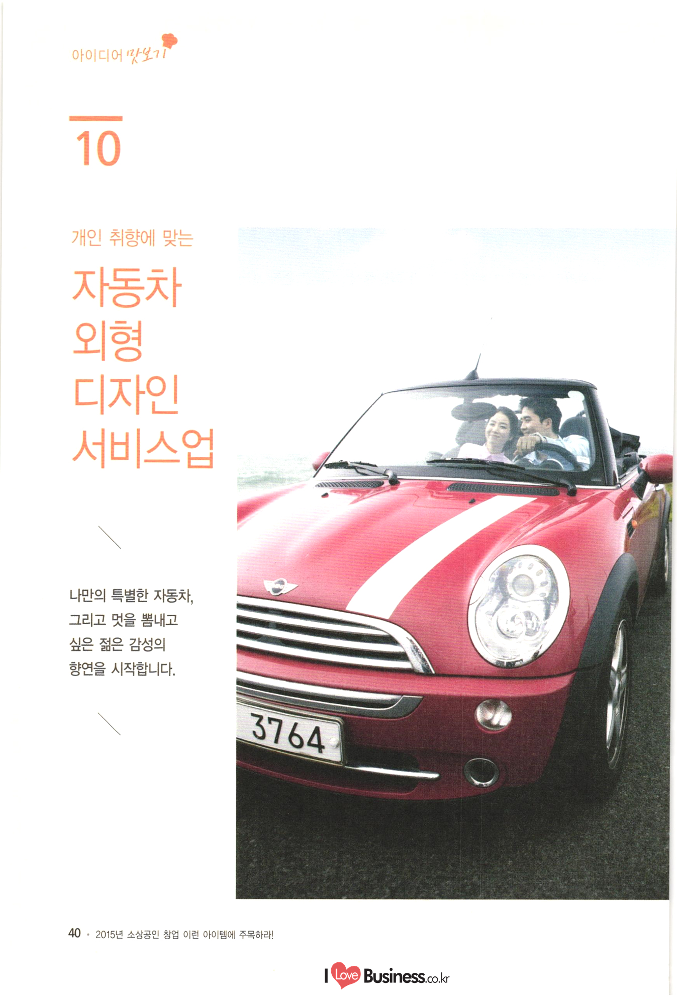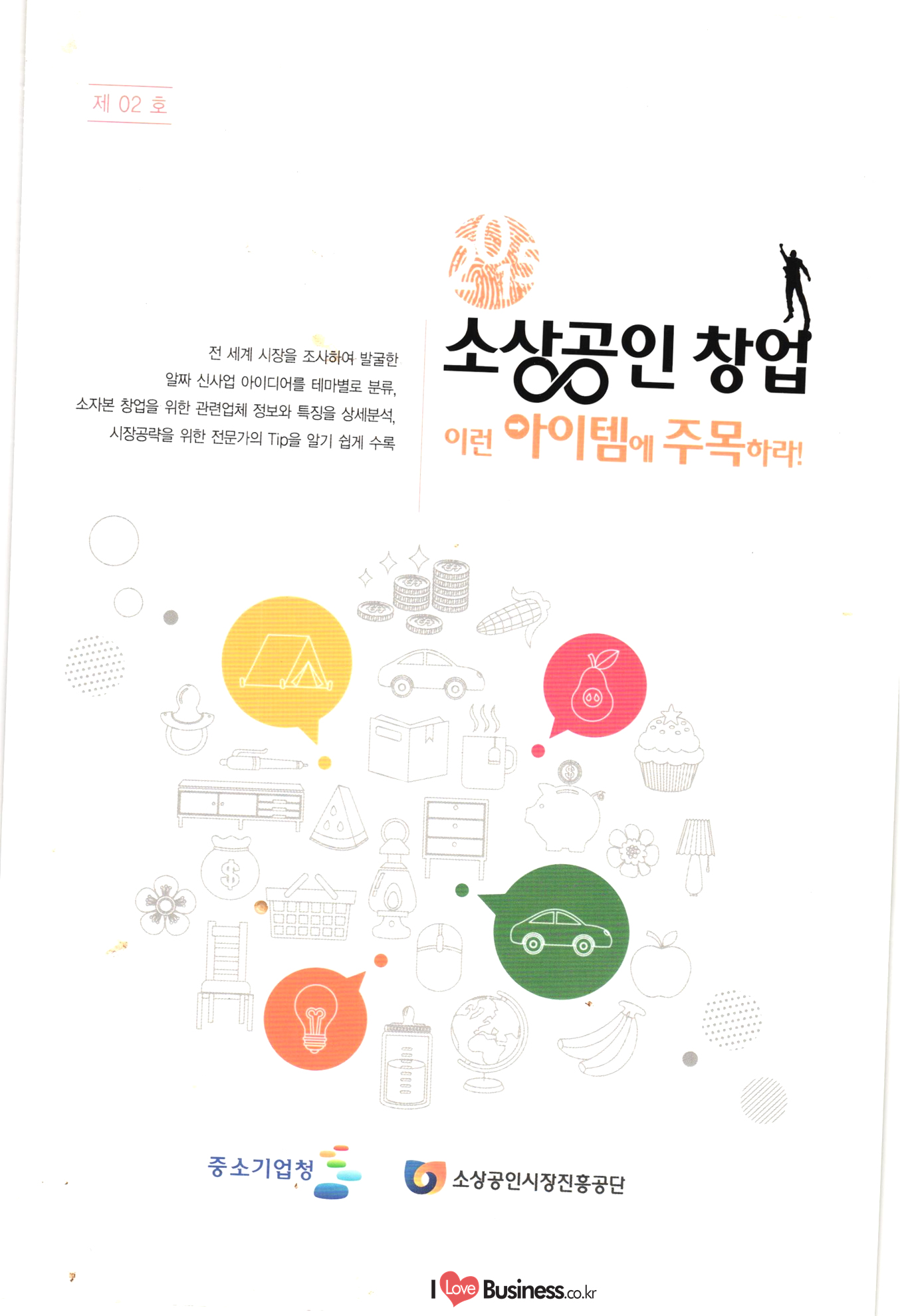 제 02 호 MAI 전 세계 시장을 조사하여 발굴한 알짜 신사업 아이디어를 테마별로 분류, 소자본 창업을 위한 관련업체 정보와 특징을 상세분석, 시장공략을 위한 전문가의 Tip을 알기 쉽게 수록 소상공인 창업 시장공략을 위한 전문가의 Tip을 알기 쉽게 수록 이런 아이템에 주목하라 CE Hom OTTI NGRITE | 10 중소기업청 2 0 소상공인시장진흥공단
